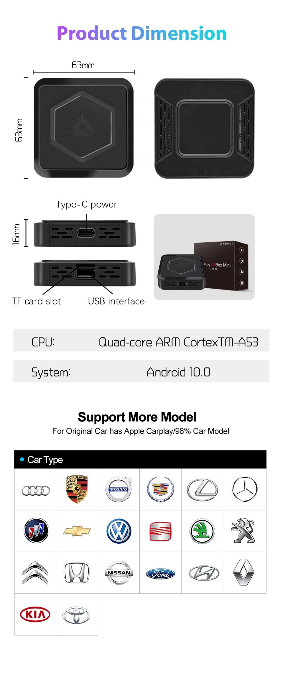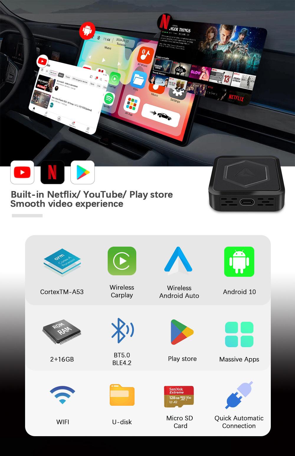 Caja Carplay Tres en Uno Alámbrico a Inalámbrico Android Car Interconexión Inteligente de Audio y Video Coche Caja Android para Coche