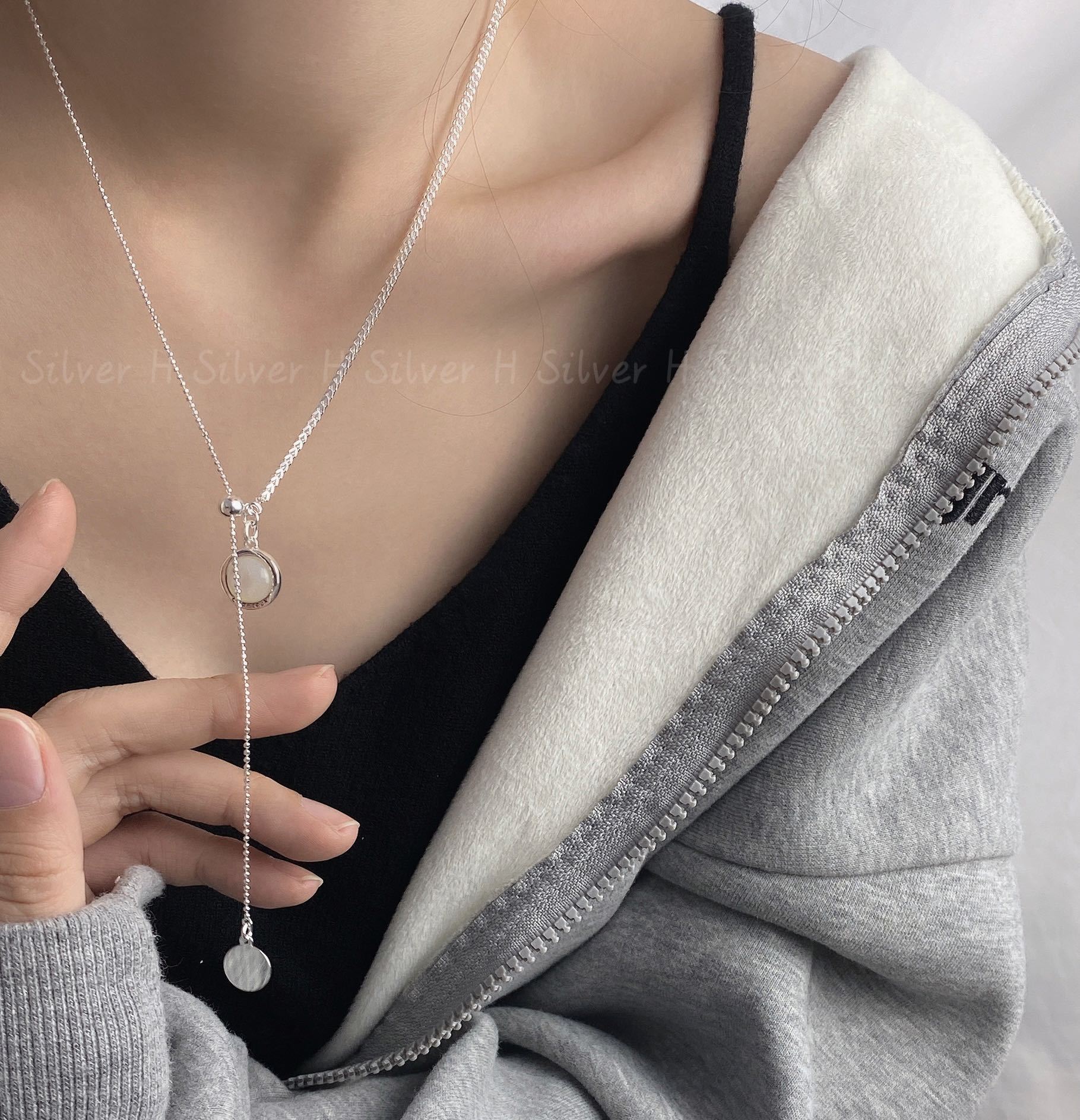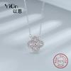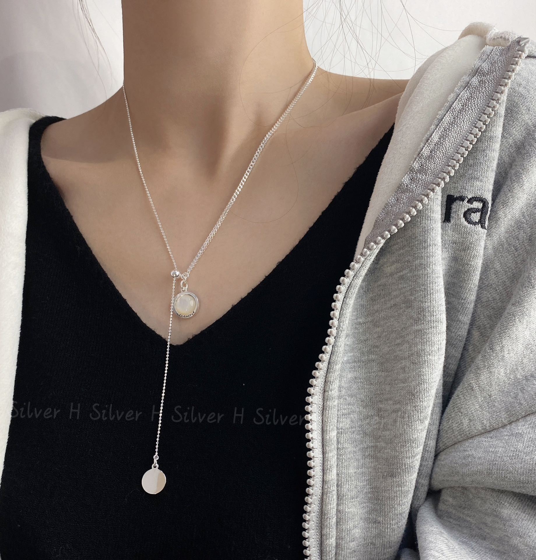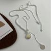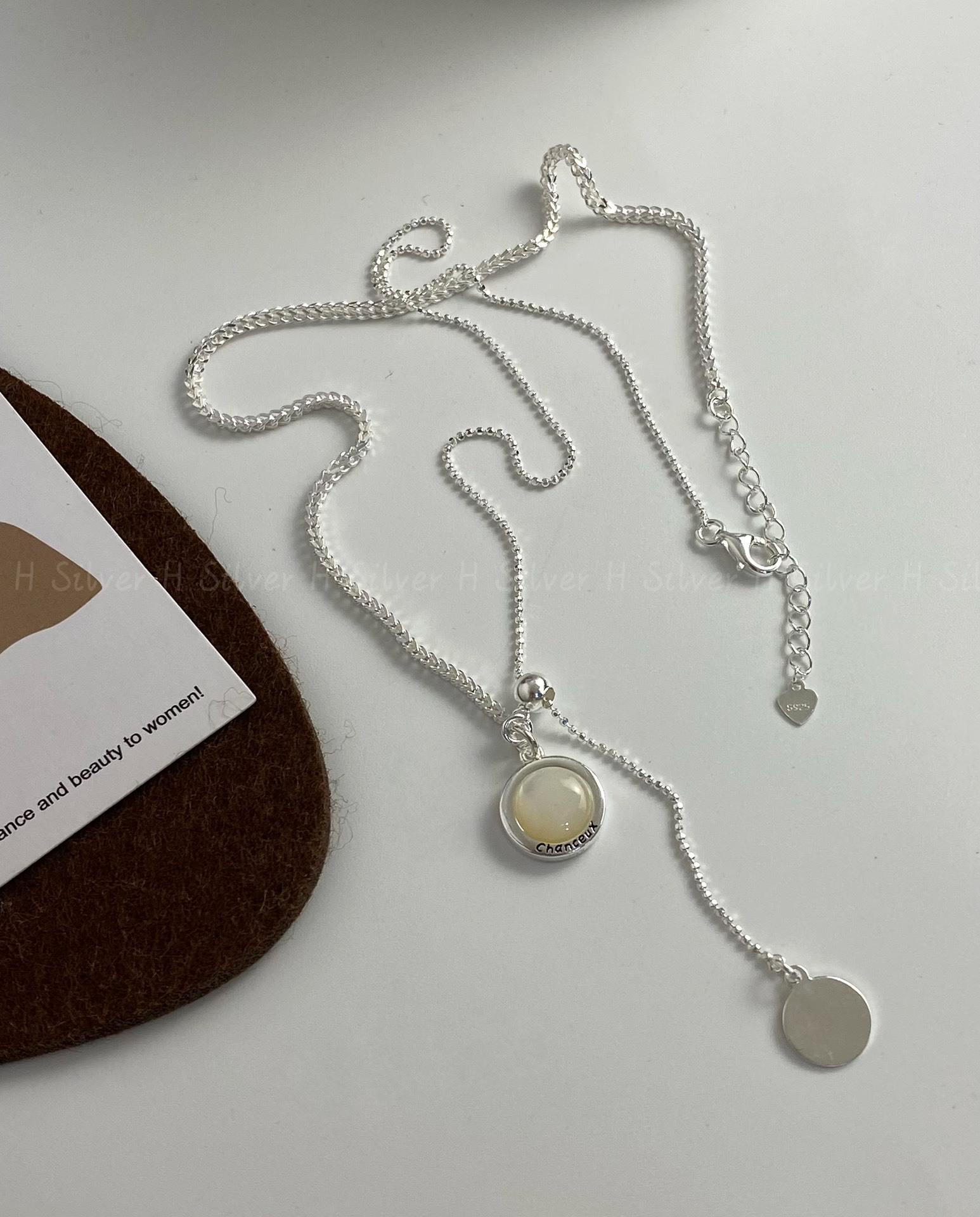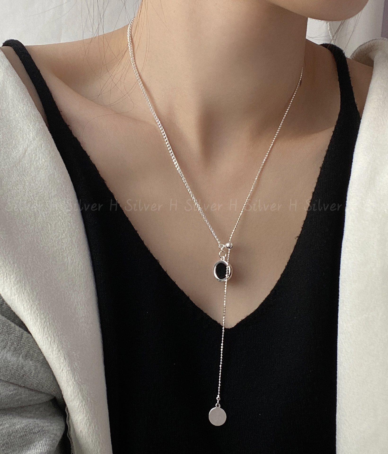 Collar de plata de ley S925 con cadena de clavícula de doble cara con esmalte negro y concha blanca, diseño de nicho con personalidad