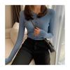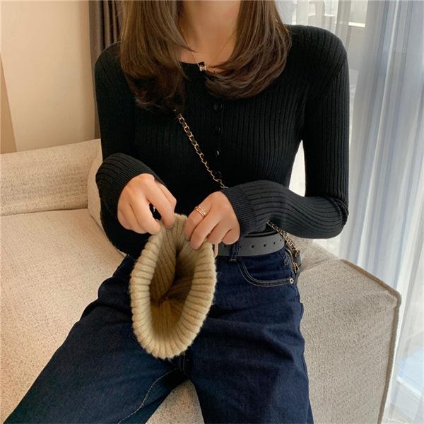 Compra Suéter de Punto de Otoño e Invierno Ins con Diseño de Sisa de Canalé, Sensación de Diseño, Monocromático, Cuello Redondo, Manga Larga, Interior Ajustado, Top Básico para Mujer, a la Moda al por mayor en Joom.pro