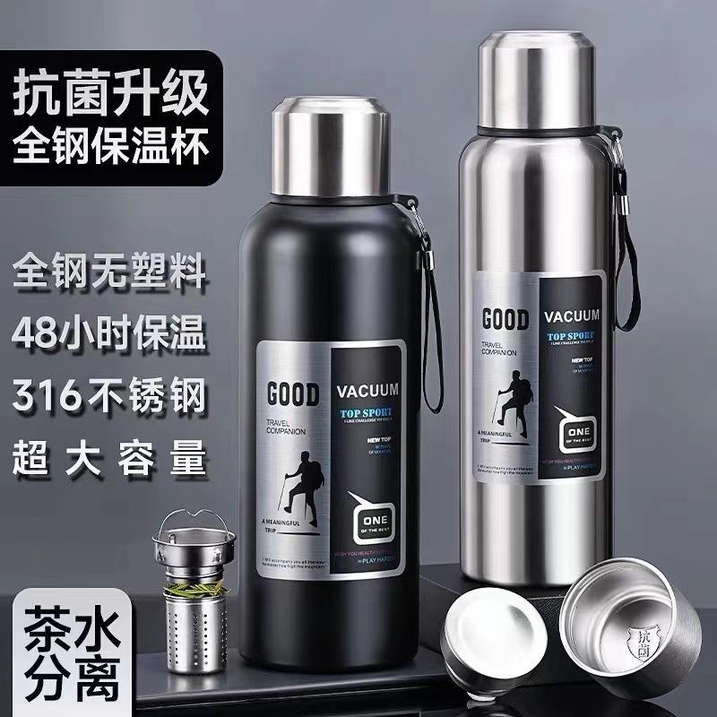 Nueva tetera térmica de acero inoxidable 316 para deportes al aire libre, viajes, de gran capacidad, con asa y separación de té