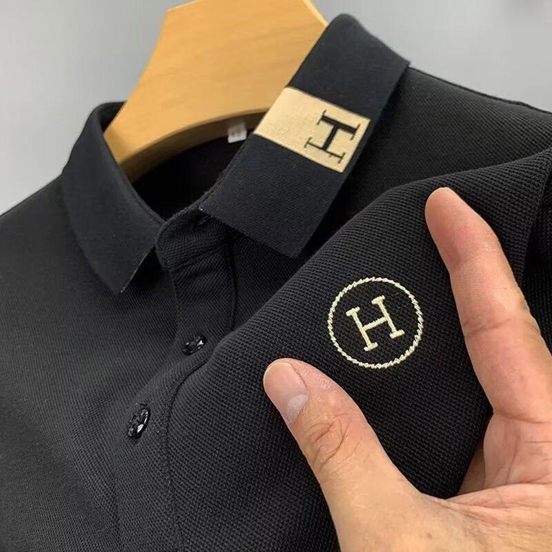 Camiseta de manga corta de verano 2024 para hombre, base para personas de mediana edad y jóvenes, con palancas bordadas con cuentas, talla grande, polo de seda de hielo.