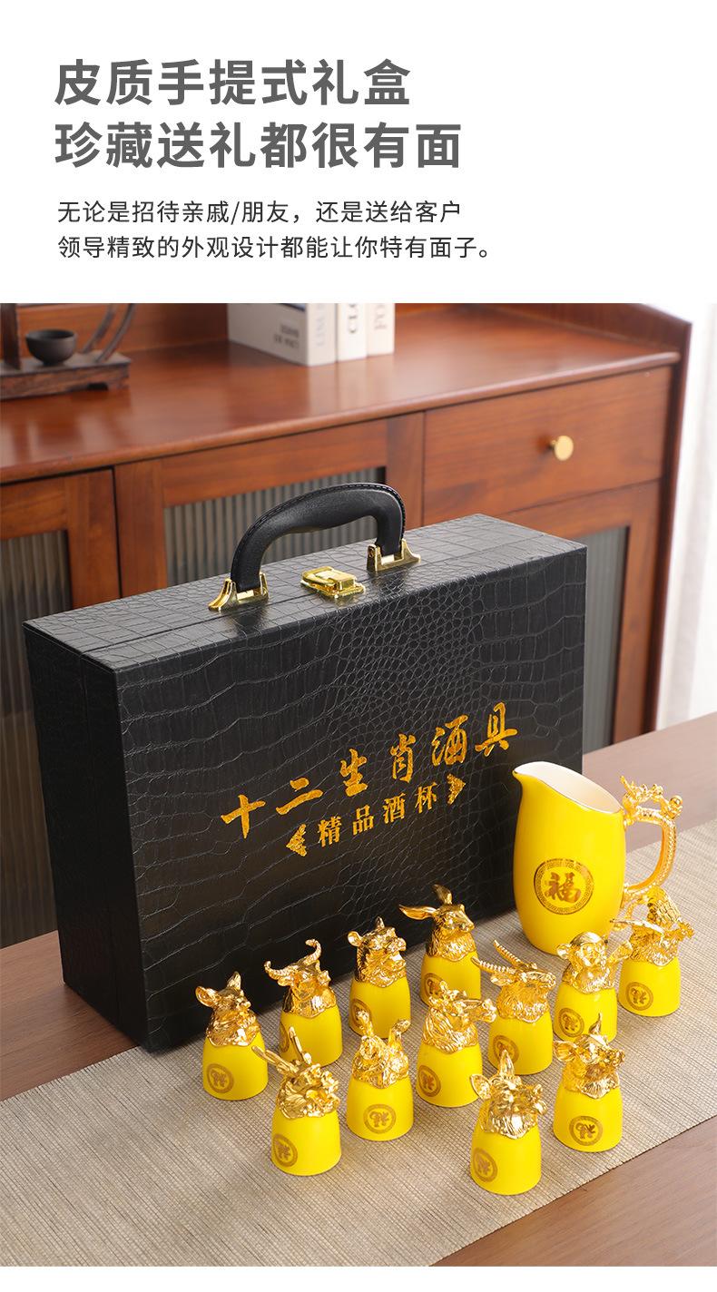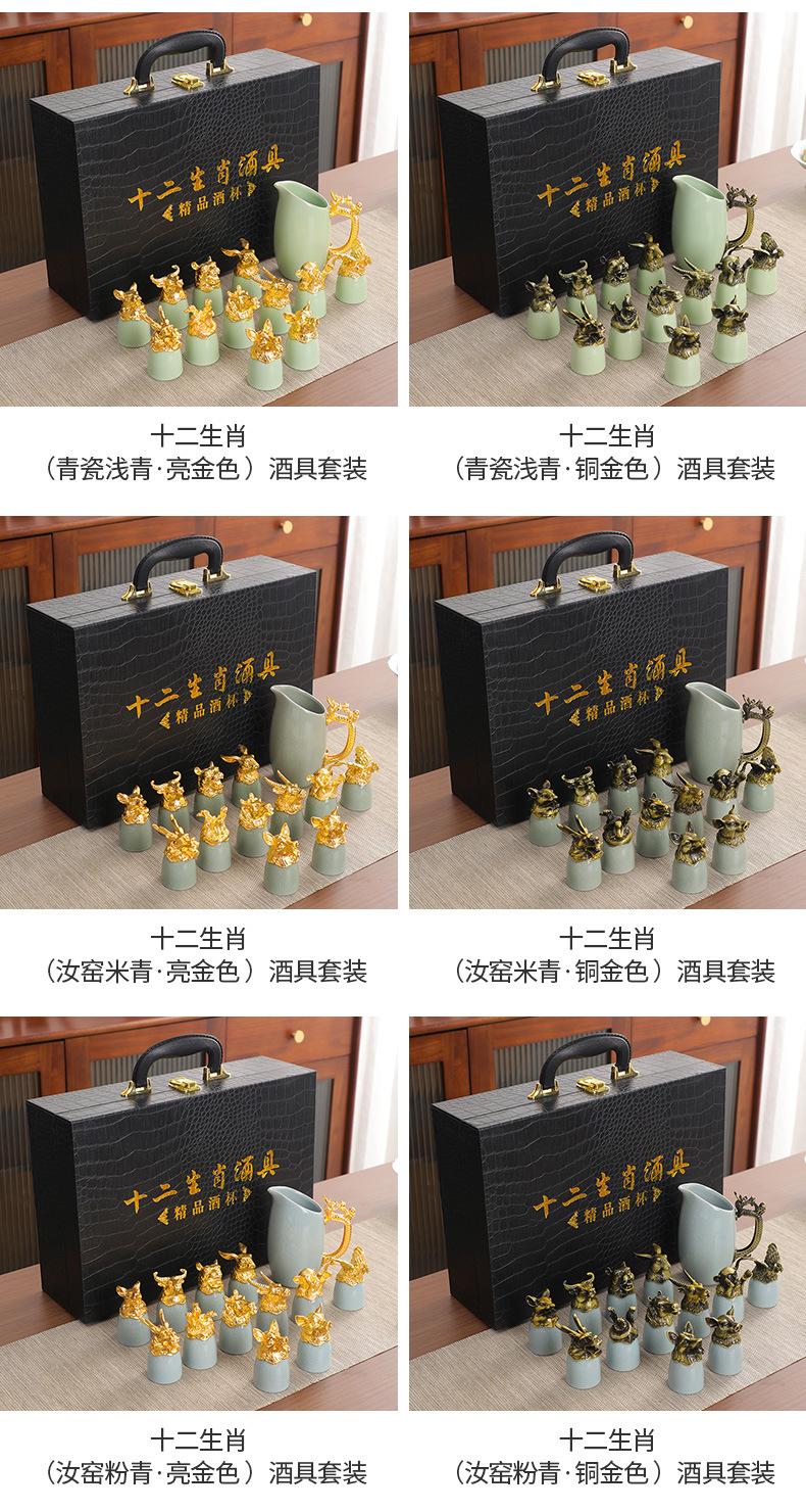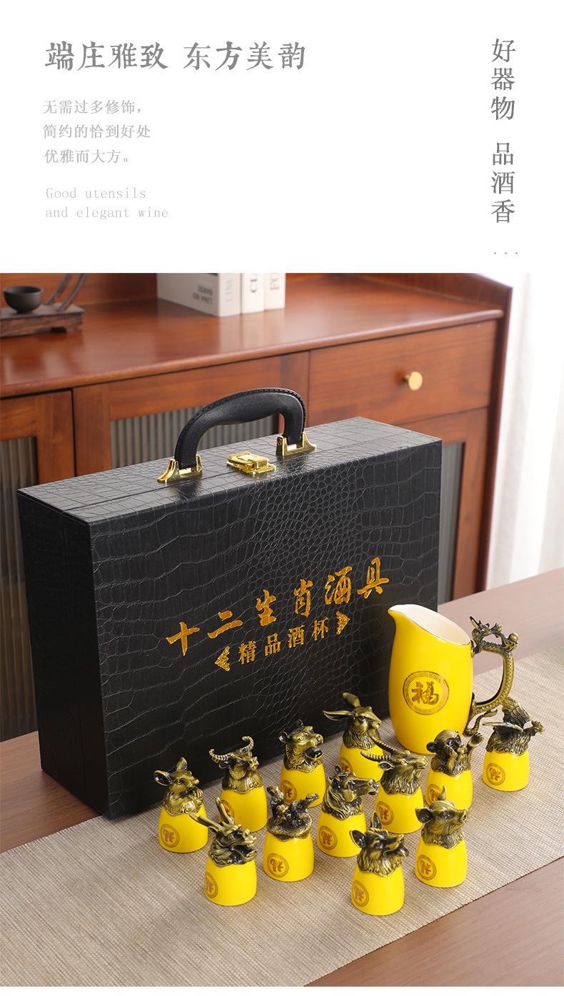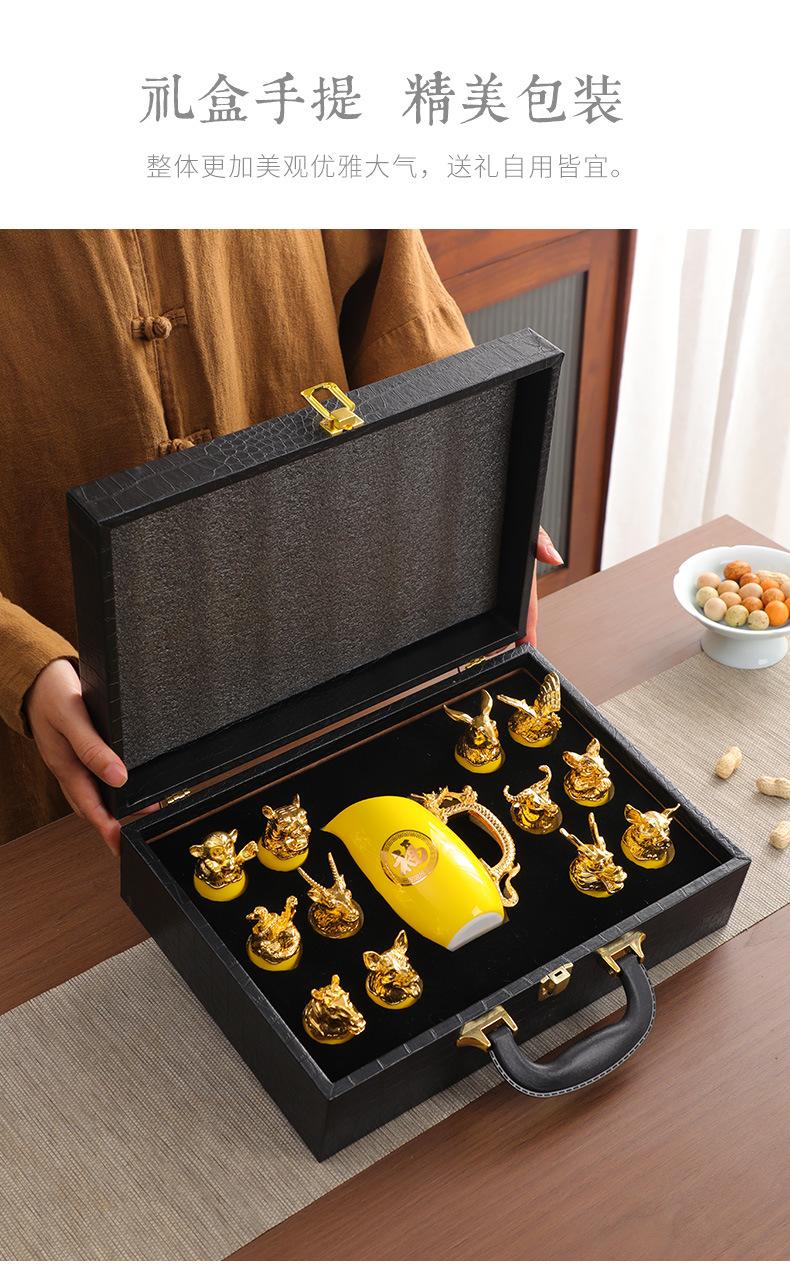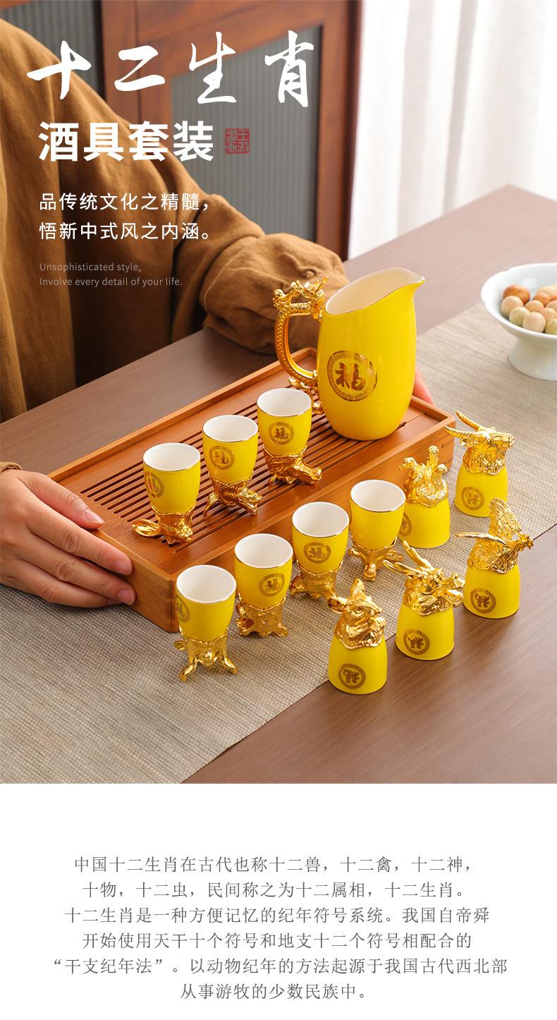 Chinese zodiac bright golden wine set suit, Chinese zodiac Emperor copper golden wine set suit, Chinese zodiac...