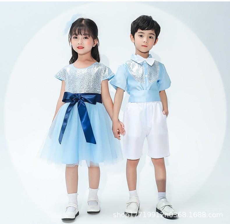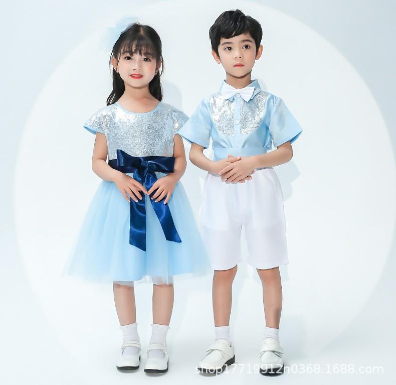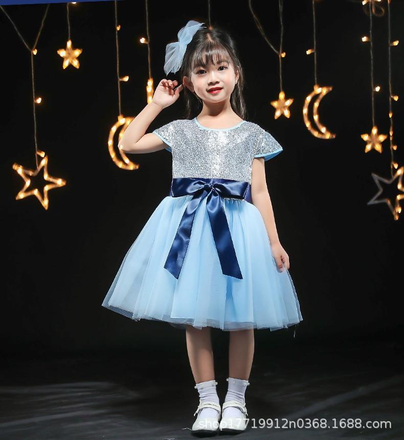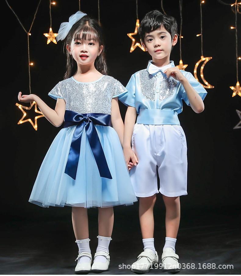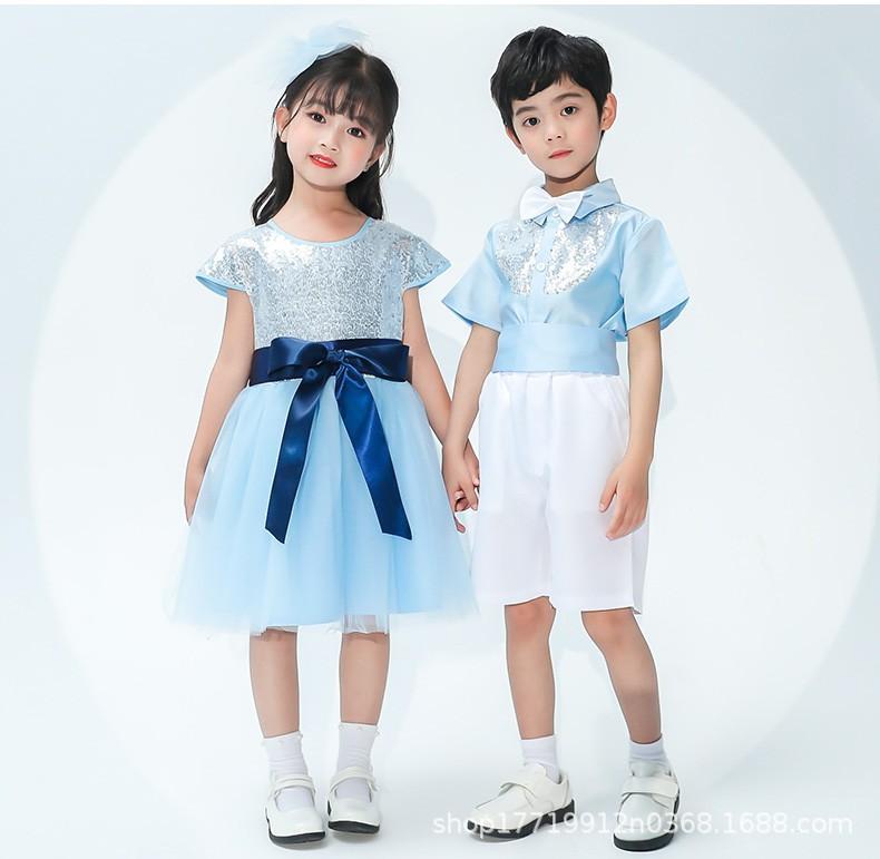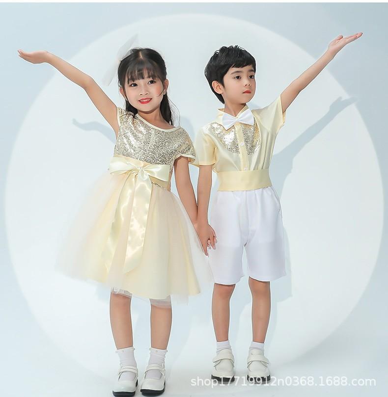 Traje de presentación de danza moderna para niñas, traje de presentación para niños, falda de princesa, traje de presentación para coro infantil, lentejuelas