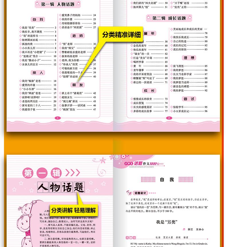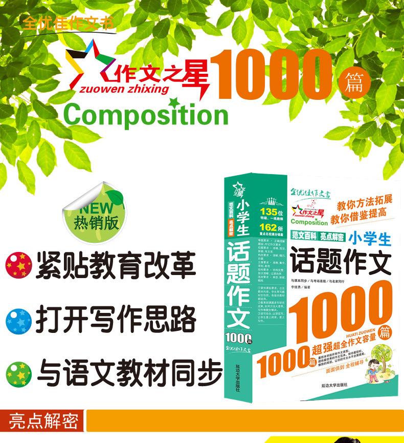 Composición de temas para estudiantes de primaria, 1000 materiales de composición para estudiantes de primaria, modelo de capacitación en escritura, enciclopedia, composición extracurricular