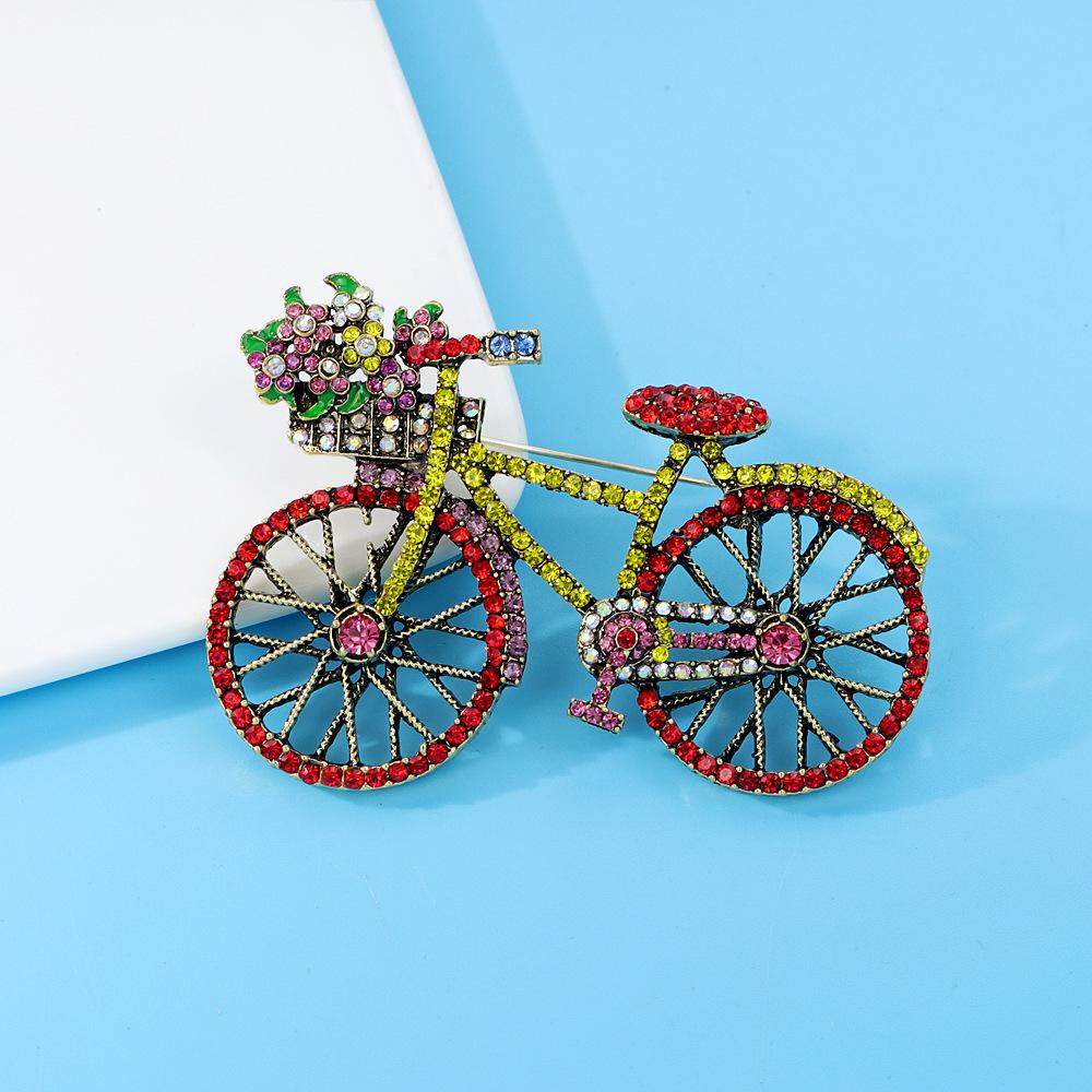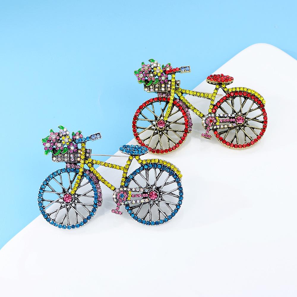 Compra Broche creativo de bicicleta colorido con incrustaciones de diamantes, pin de moda, accesorios para ropa de mujer, ramillete para bolso, en stock, entrega al por mayor al por mayor en Joom.pro