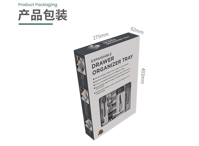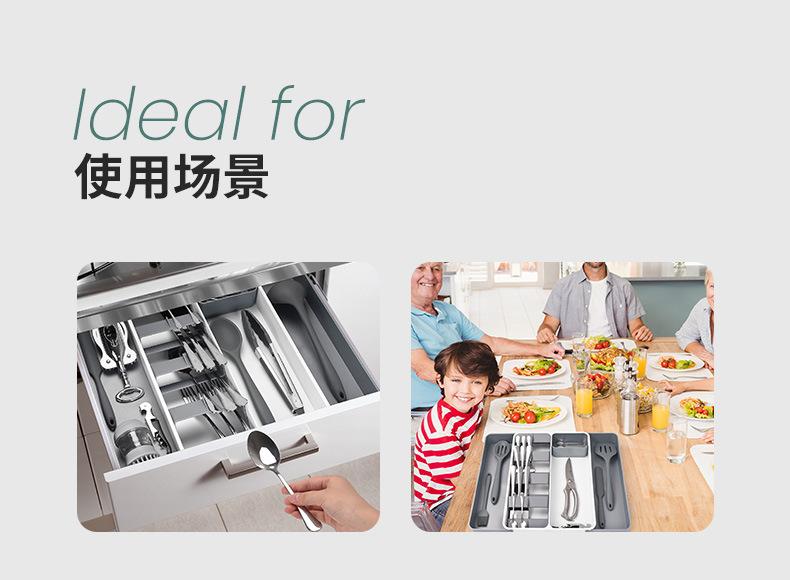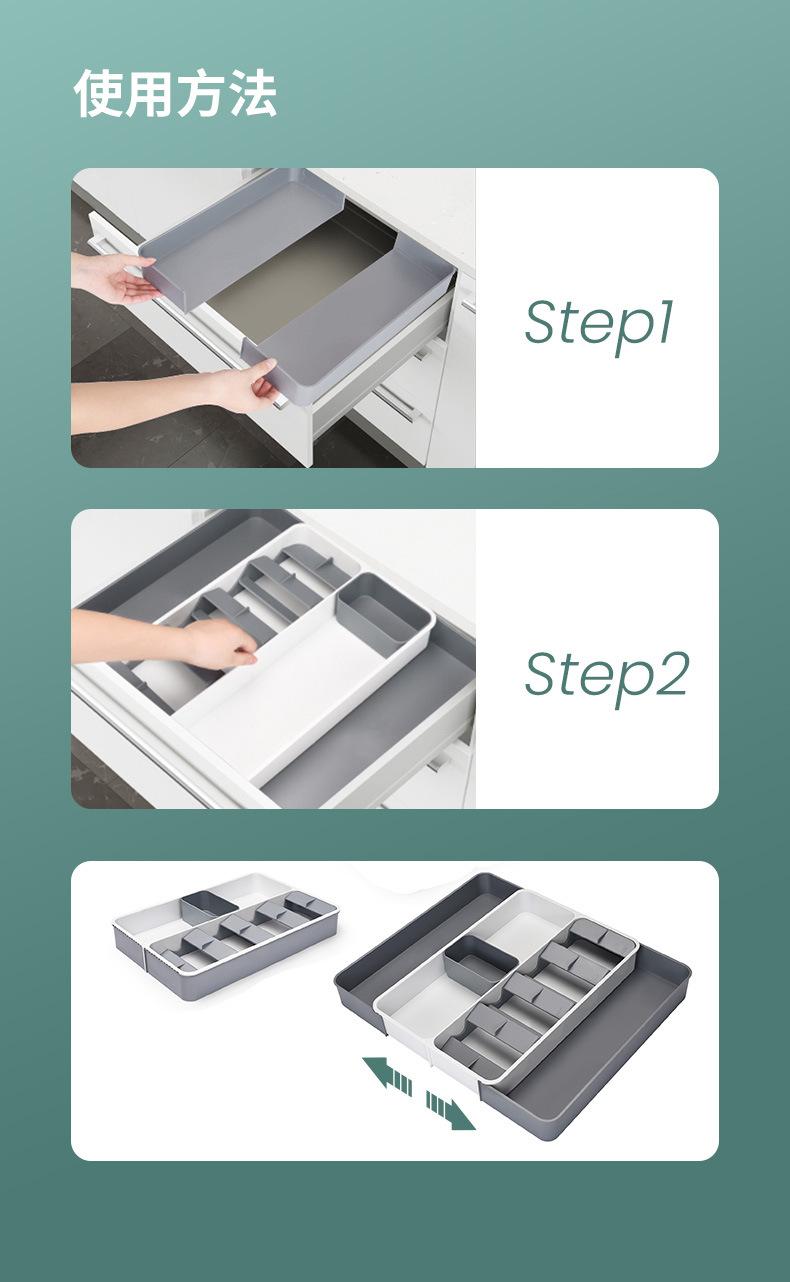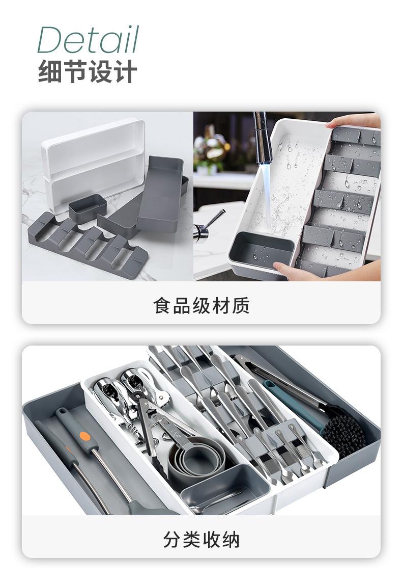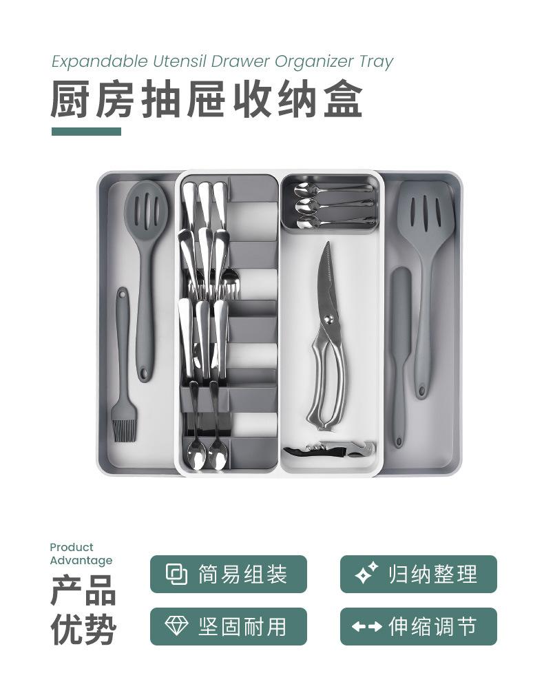 Popular Organizador de Cajón de Cocina para Almacenamiento de Vajilla, Caja de Almacenamiento de Vajilla y Palillos, Cajón Telescópico, Organizador de Cuchillos, Tenedores y Cucharas en Ambos Lados