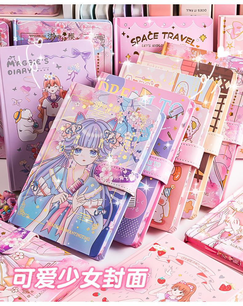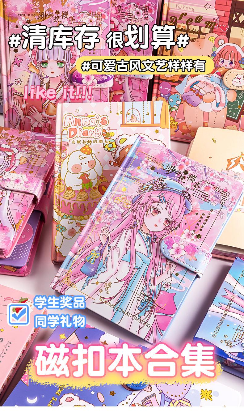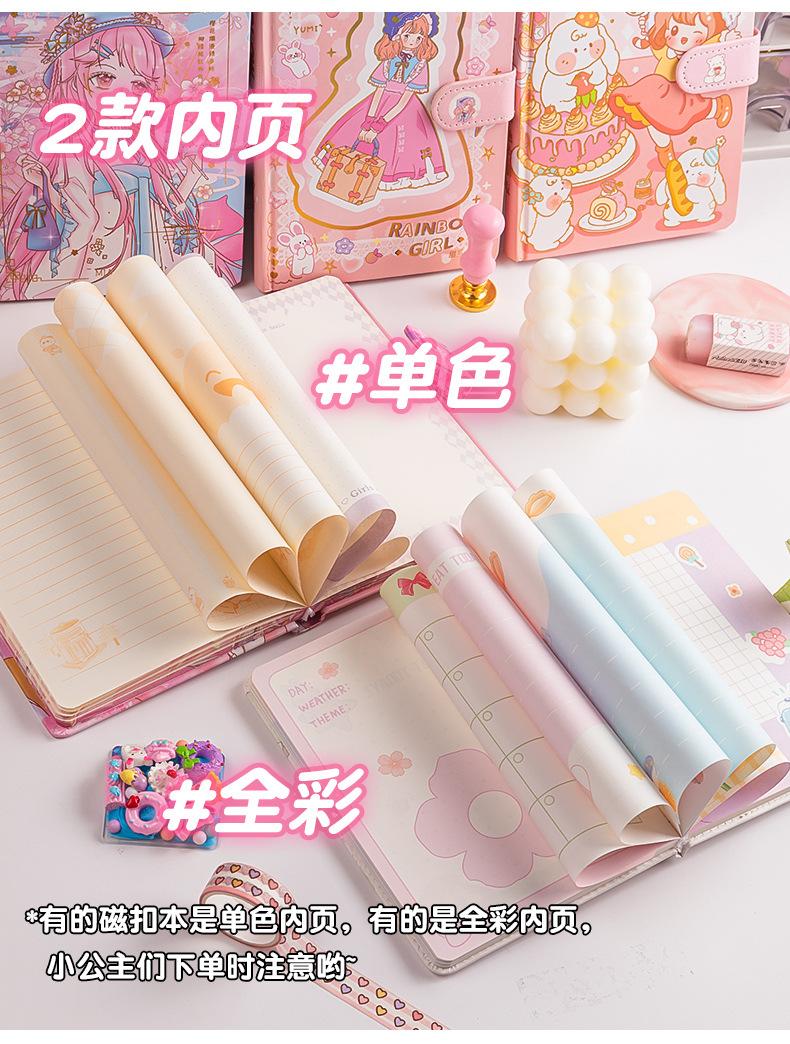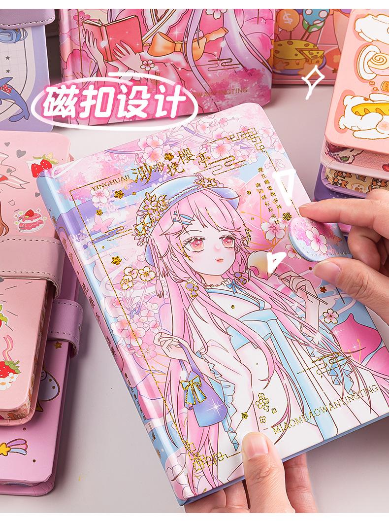 Libreta de cuentas A5 con diseño de corazón para niña, con hebilla magnética y pegatinas, color rosa