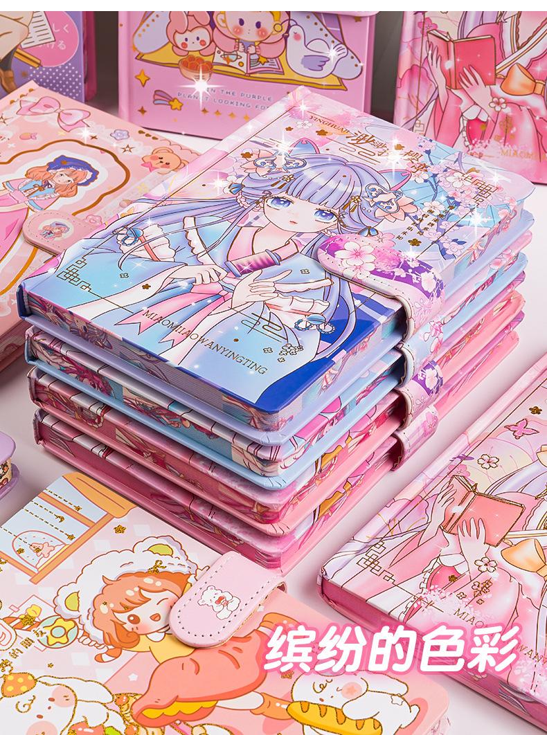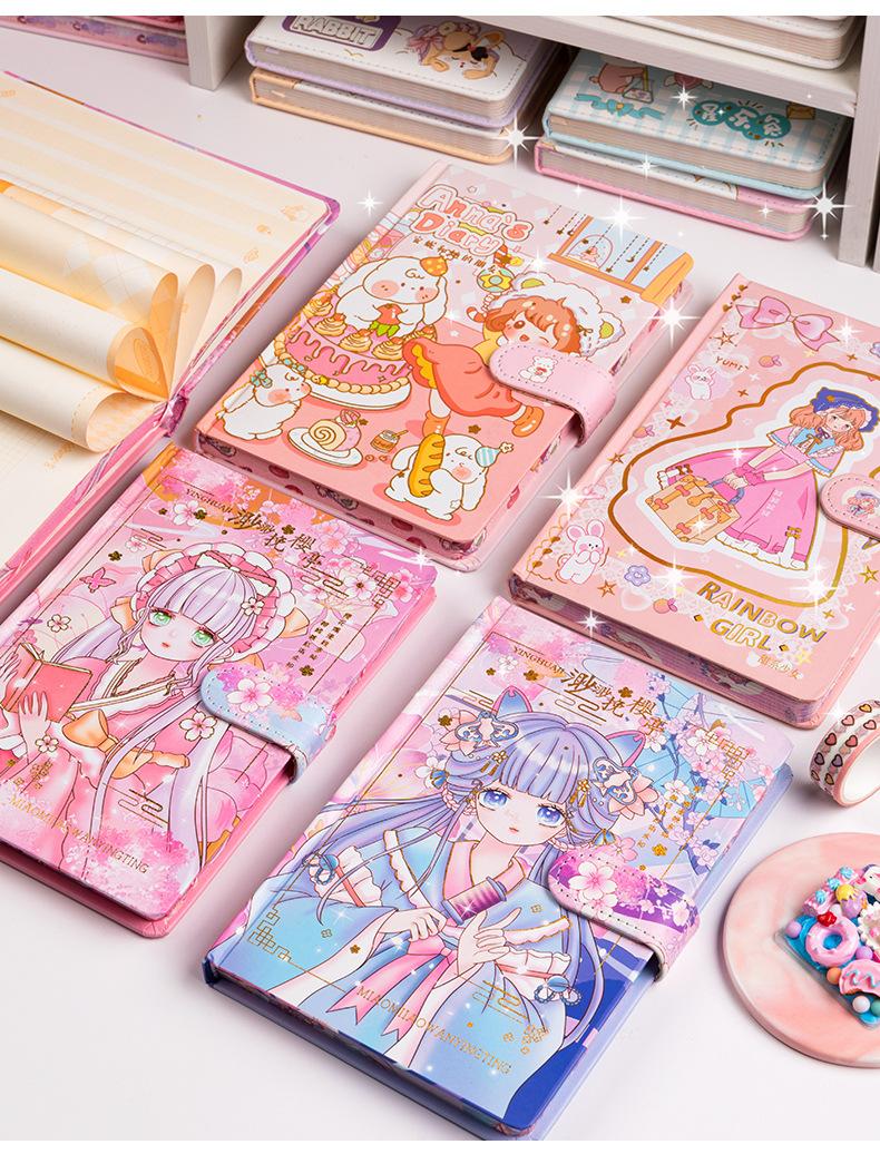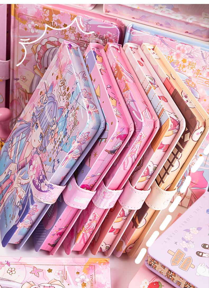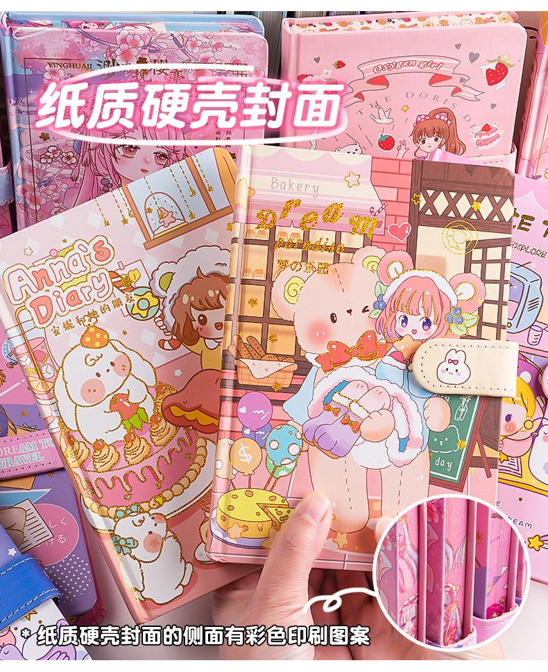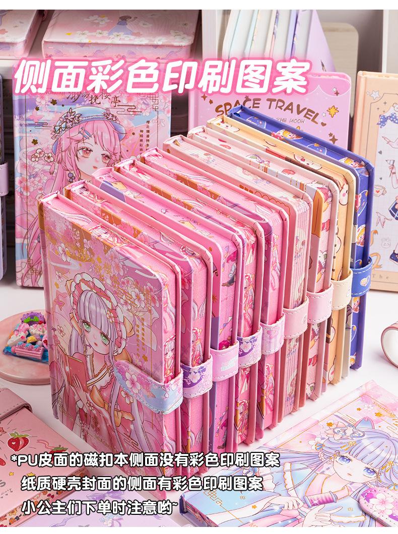Libreta de cuentas A5 con diseño de corazón para niña, con hebilla magnética y pegatinas, color rosa
