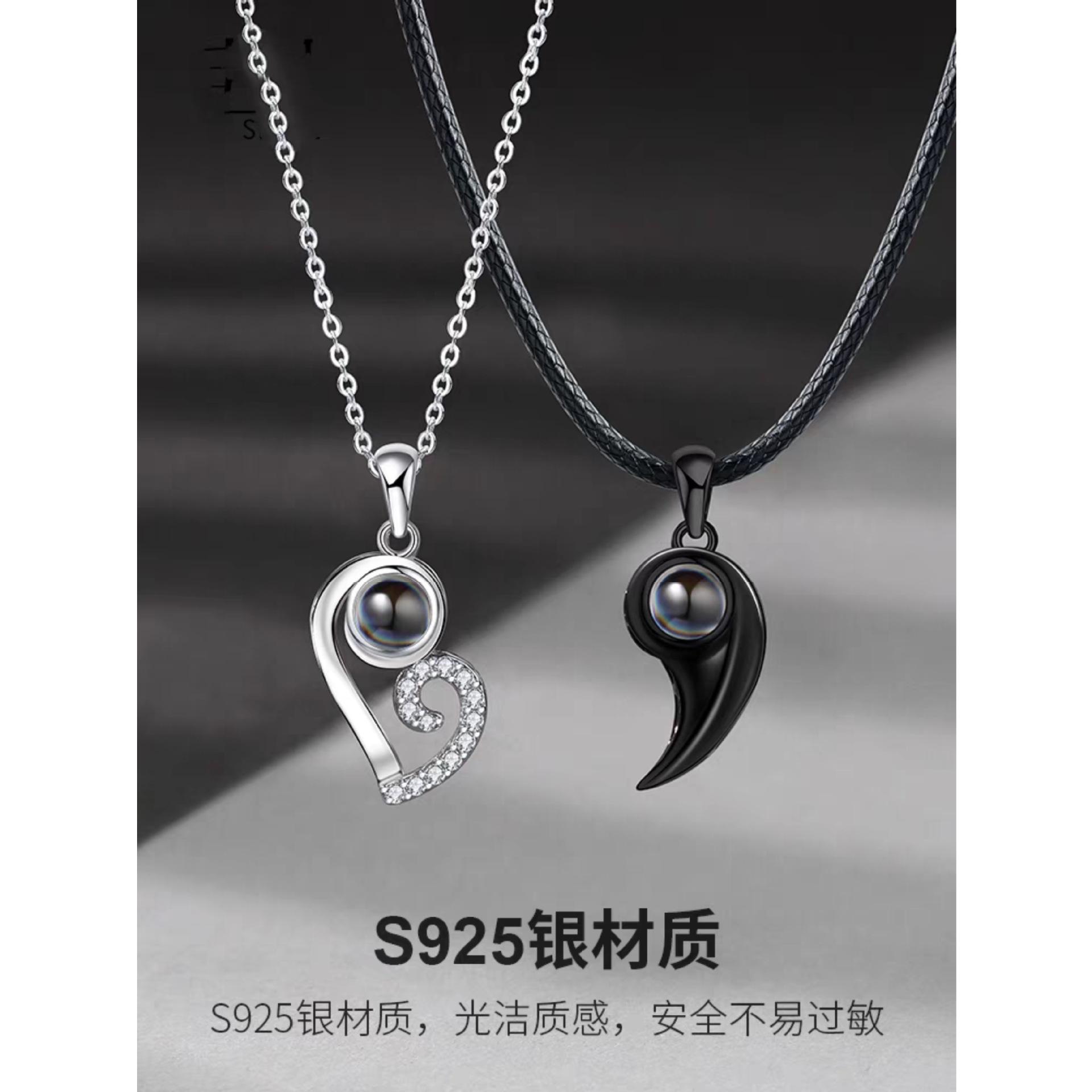Collar con proyección de corazón de plata S925 con mensaje "Te amo" en 100 idiomas, cadena de clavícula de alta gama y personalización de imágenes.