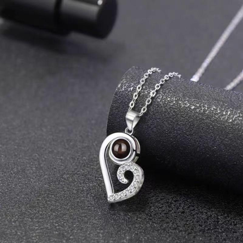 Compra Collar con proyección de corazón de plata S925 con mensaje "Te amo" en 100 idiomas, cadena de clavícula de alta gama y personalización de imágenes. al por mayor en Joom.pro