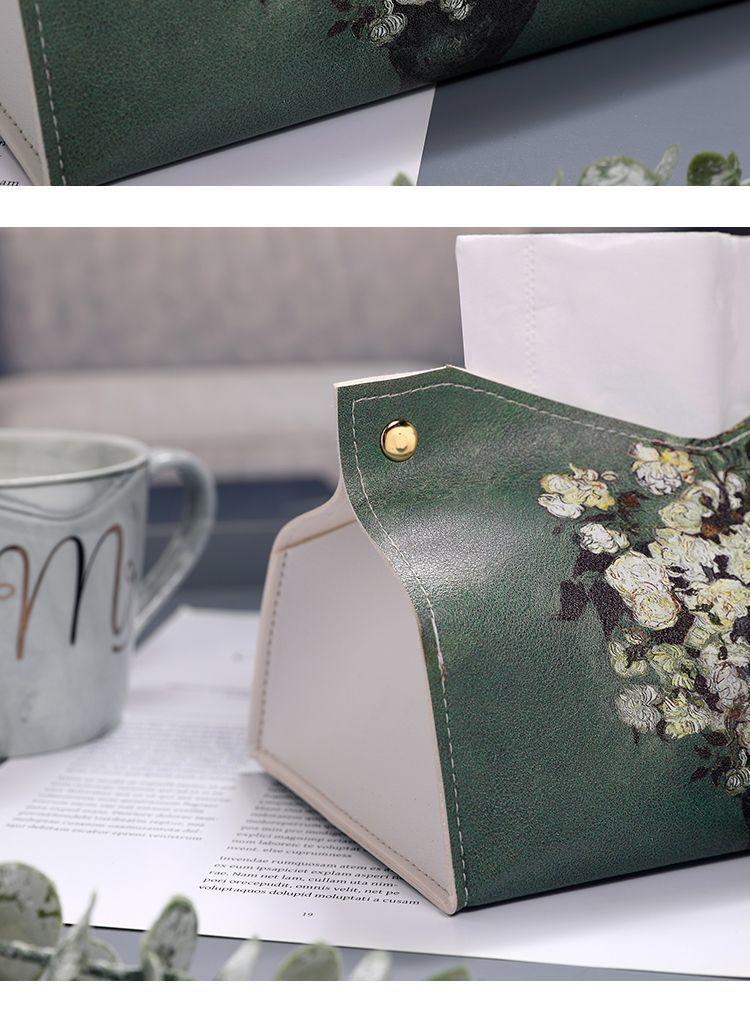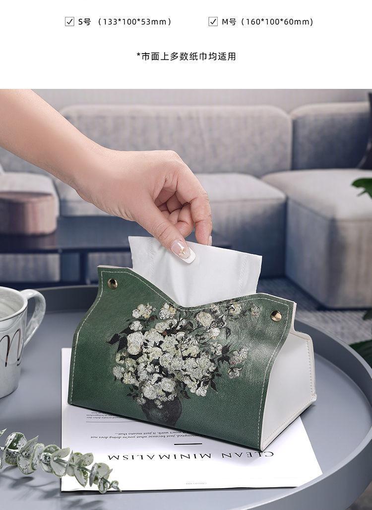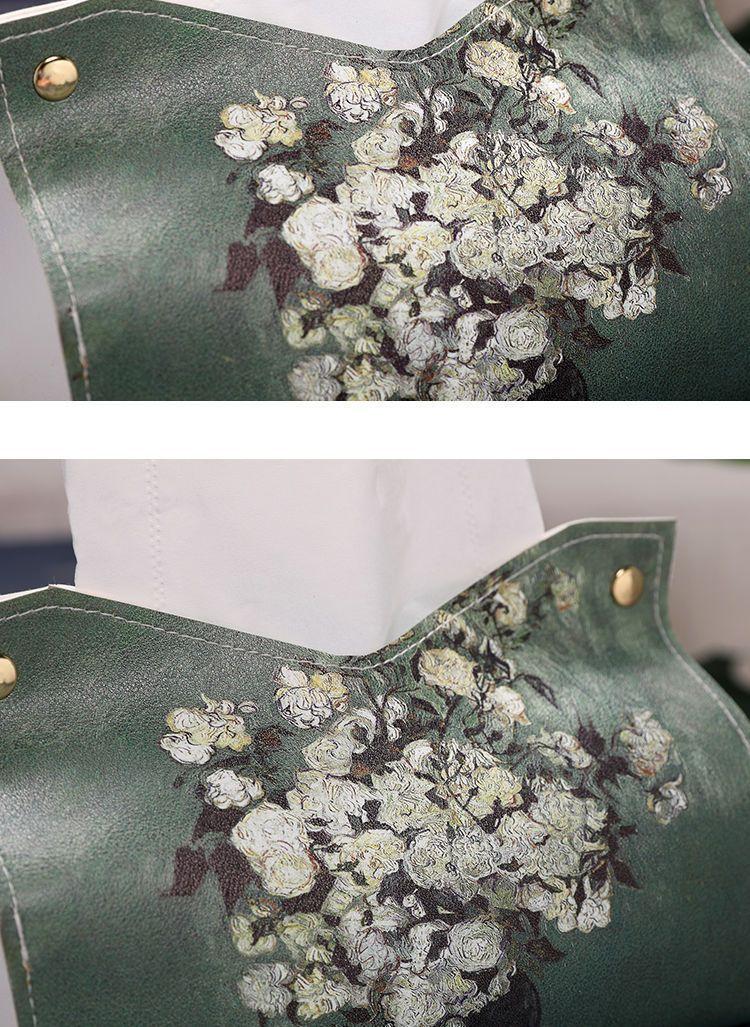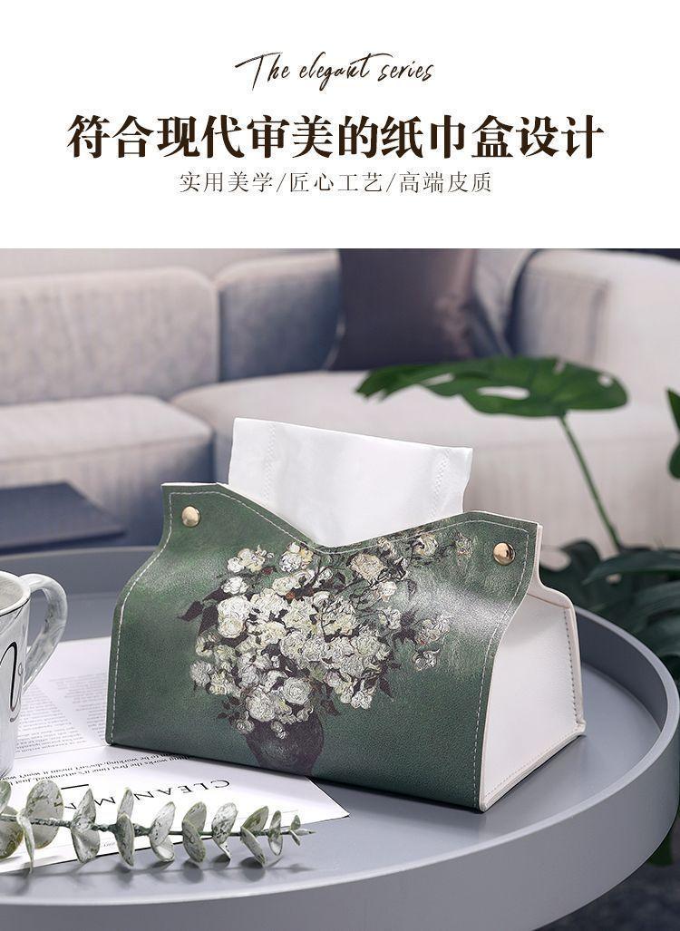 Caja de pañuelos con pintura al óleo para el hogar, la sala de estar, el automóvil, caja de pañuelos ligera de estilo lujoso, caja de pañuelos de alta gama, servilleta creativa de cuero de alta calidad
