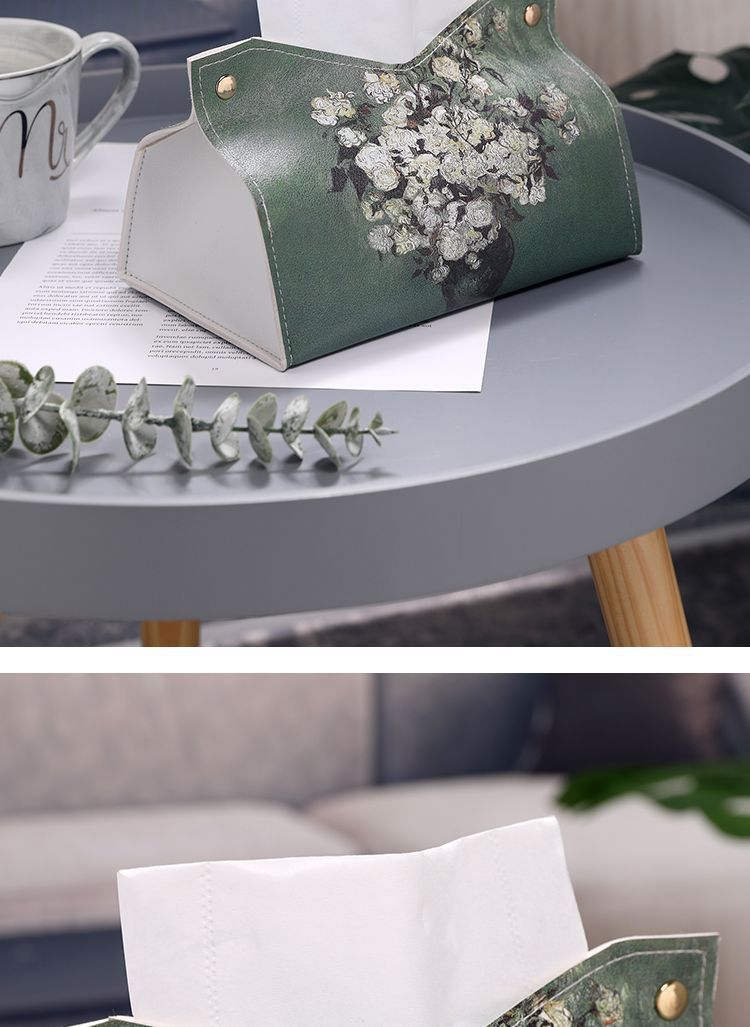 Compra Caja de pañuelos con pintura al óleo para el hogar, la sala de estar, el automóvil, caja de pañuelos ligera de estilo lujoso, caja de pañuelos de alta gama, servilleta creativa de cuero de alta calidad al por mayor en Joom.pro