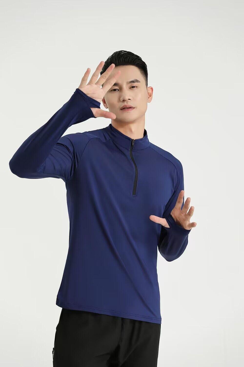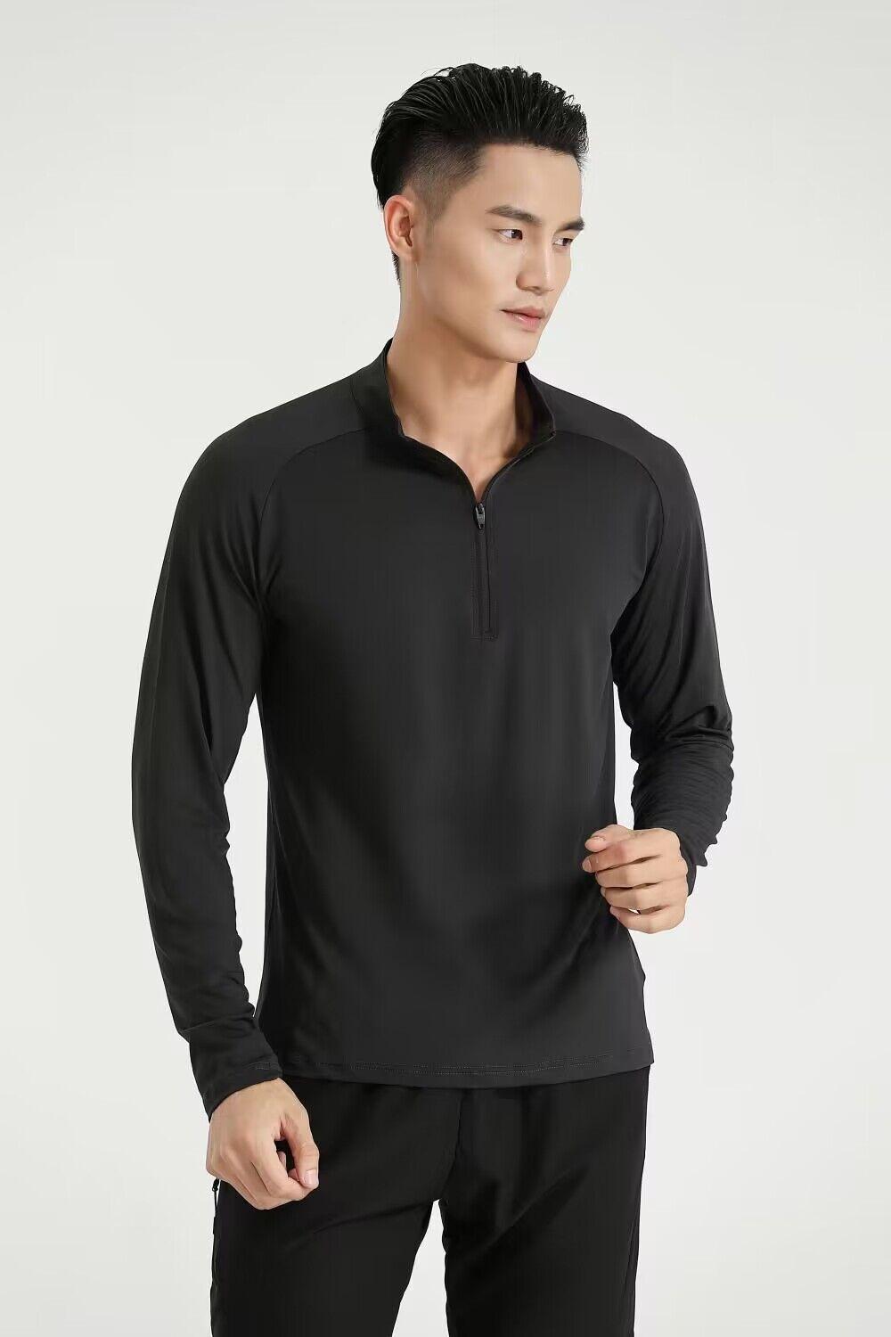 Compra Camiseta deportiva de manga larga para hombre de Lulu Cross-Border, para correr, entrenar, fitness, secado rápido, con cuello alto y cremallera para exteriores, a la moda al por mayor en Joom.pro