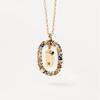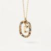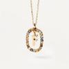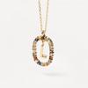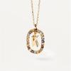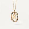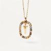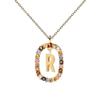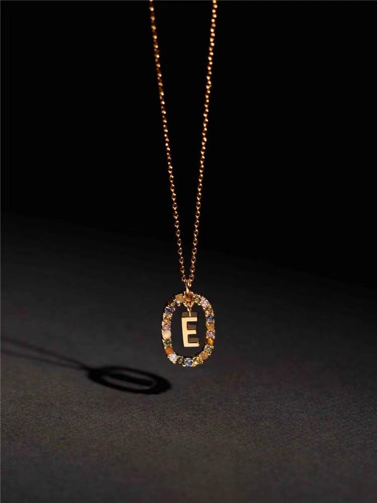 Collar con letras de diamantes de colores españoles transfronterizos, estilo europeo y americano, diseño de nicho con incrustaciones de circonitas de colores en cadena de clavícula.