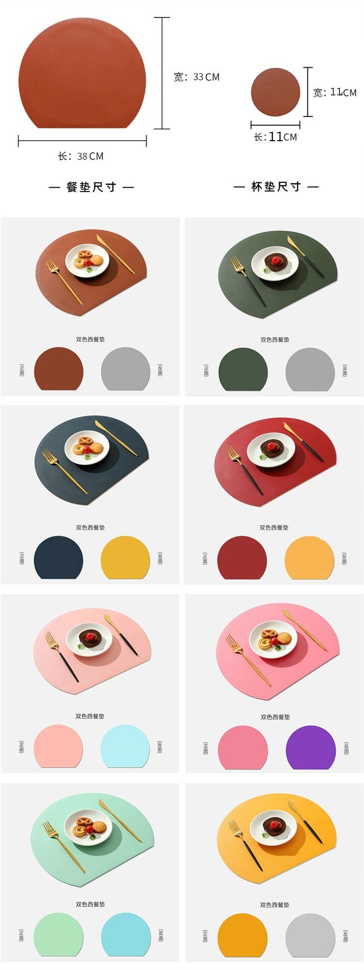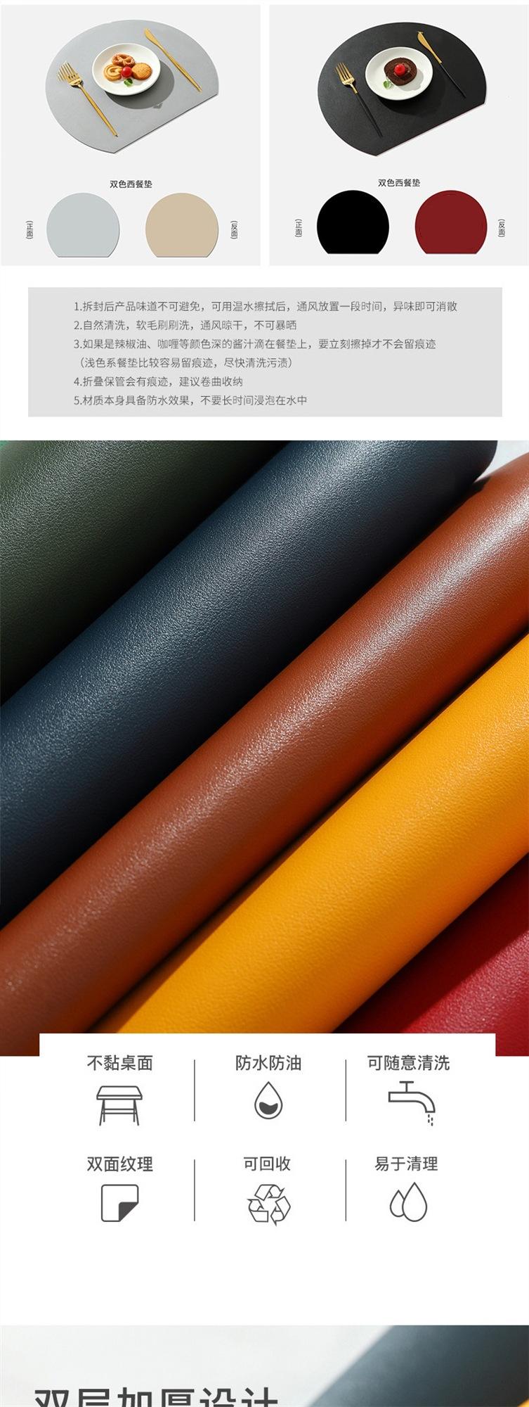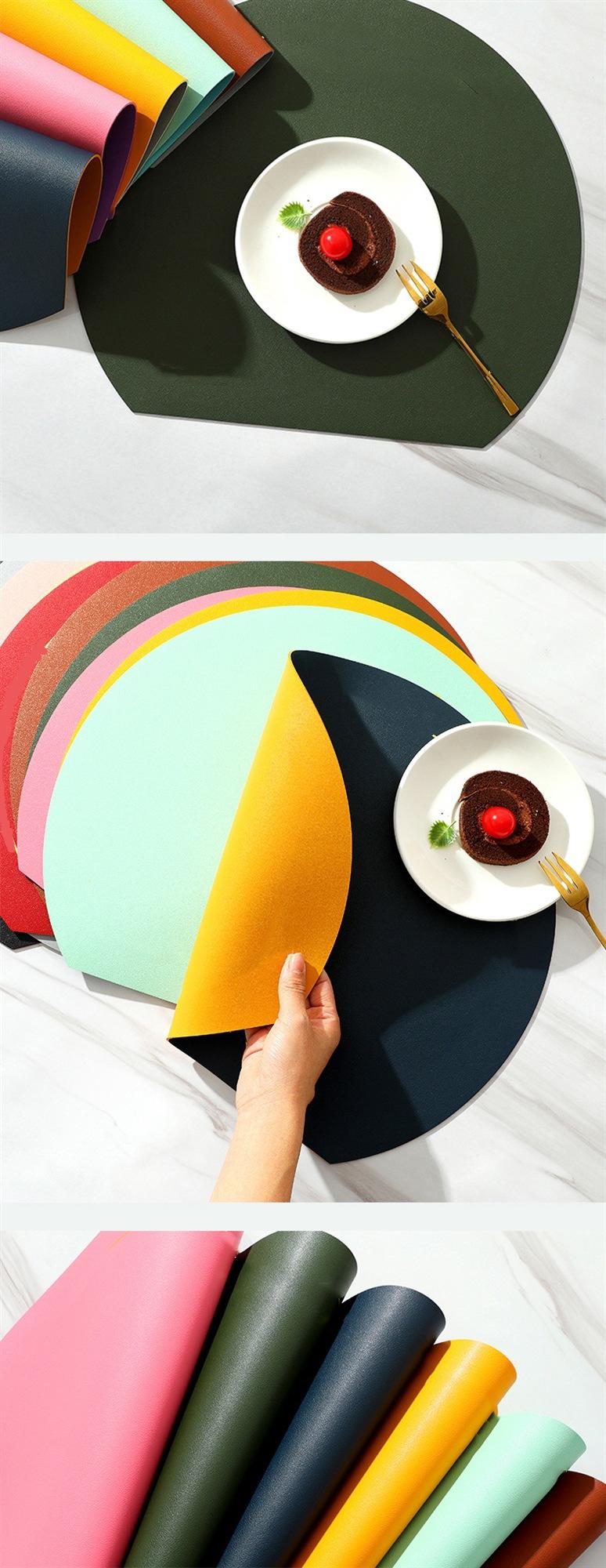Tapete de comedor occidental de cuero de PU, tapete de comedor de doble cara y doble color, tapete de mesa antideslizante, resistente al agua y al aceite, aislamiento térmico grueso, para hotel y hogar