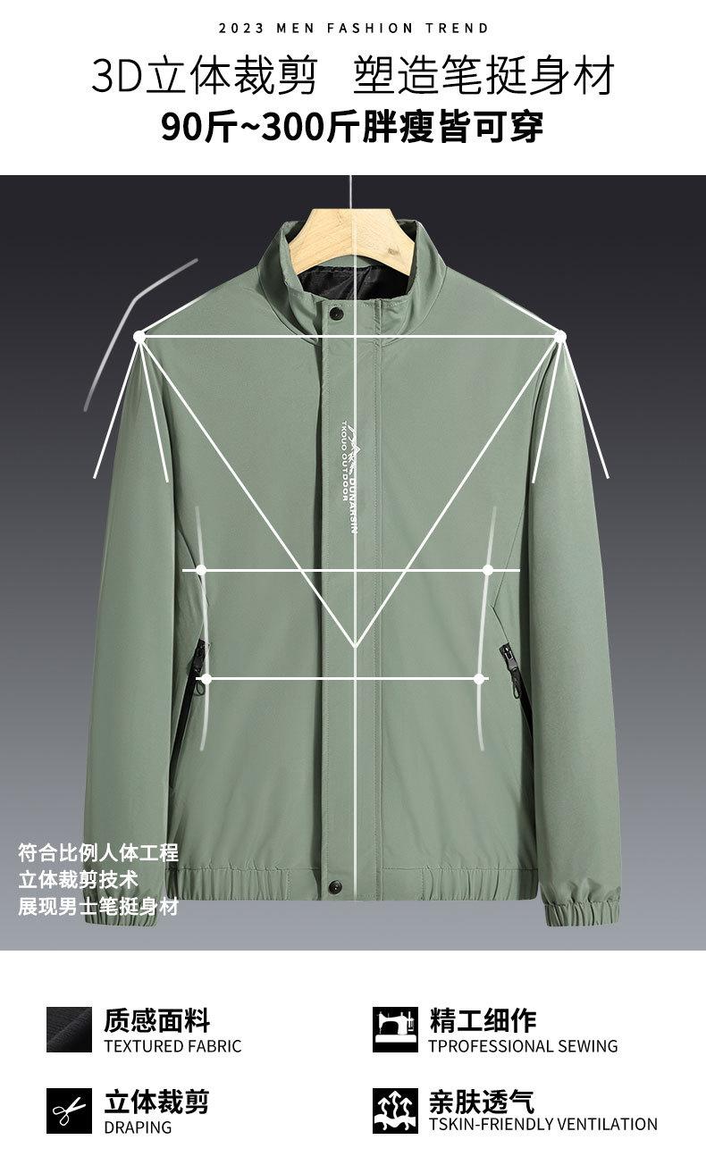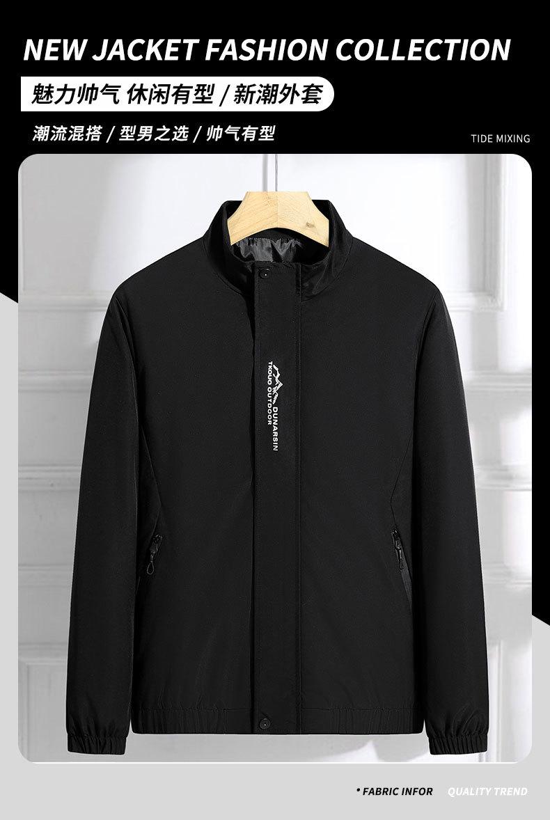 Chaqueta para hombre de talla grande de color sólido con cuello alto para primavera y otoño, estilo coreano, corte ajustado, casual, marca de moda para hombre 2023