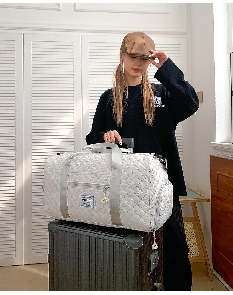 Bolsa de Fitness para Mujer con Separación Seca y Húmeda, Bolsa Deportiva de Entrenamiento, Bolsa de Natación para Hombre, Bordado Romboidal, Gran Capacidad, Bolsa de Viaje de Corta Distancia