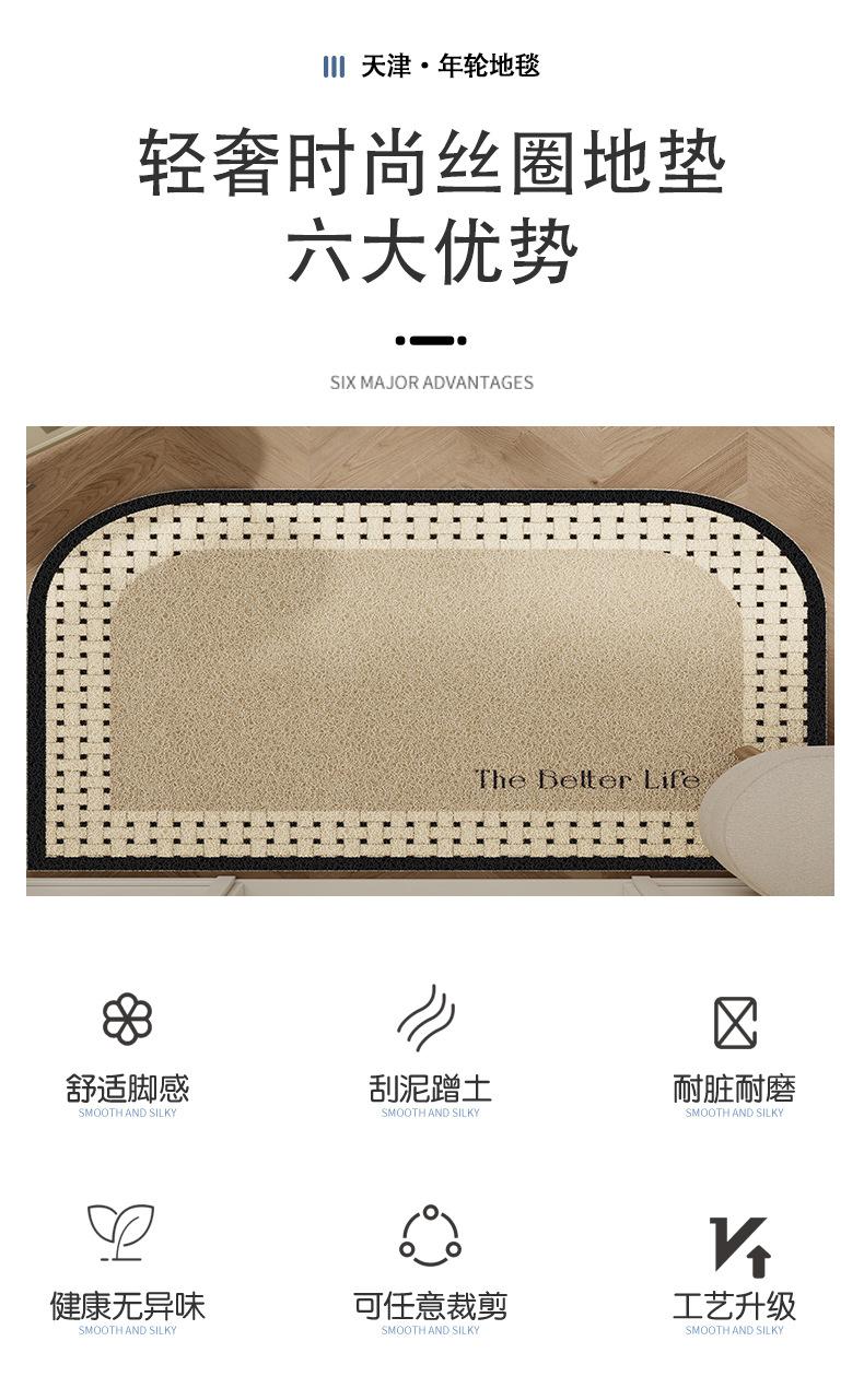 Alfombra de seda con forma de anillo para el hogar, alfombra ligera de lujo, alfombra antideslizante resistente al desgaste para pasillo estilo crema