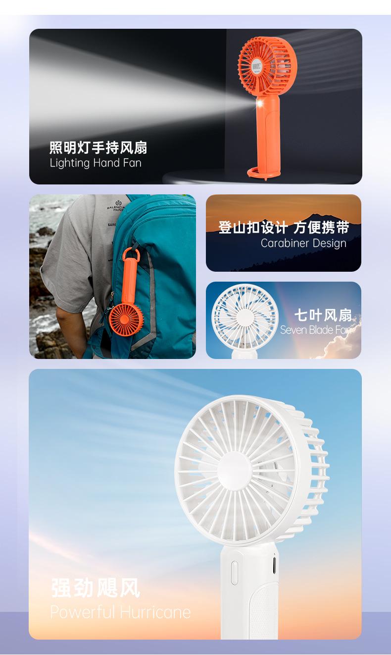 Mosquetón Amazon Ventilador de Mano para Exterior Iluminación LED Ventilador Pequeño Ventilador Portátil Multifuncional Venta al por Mayor
