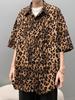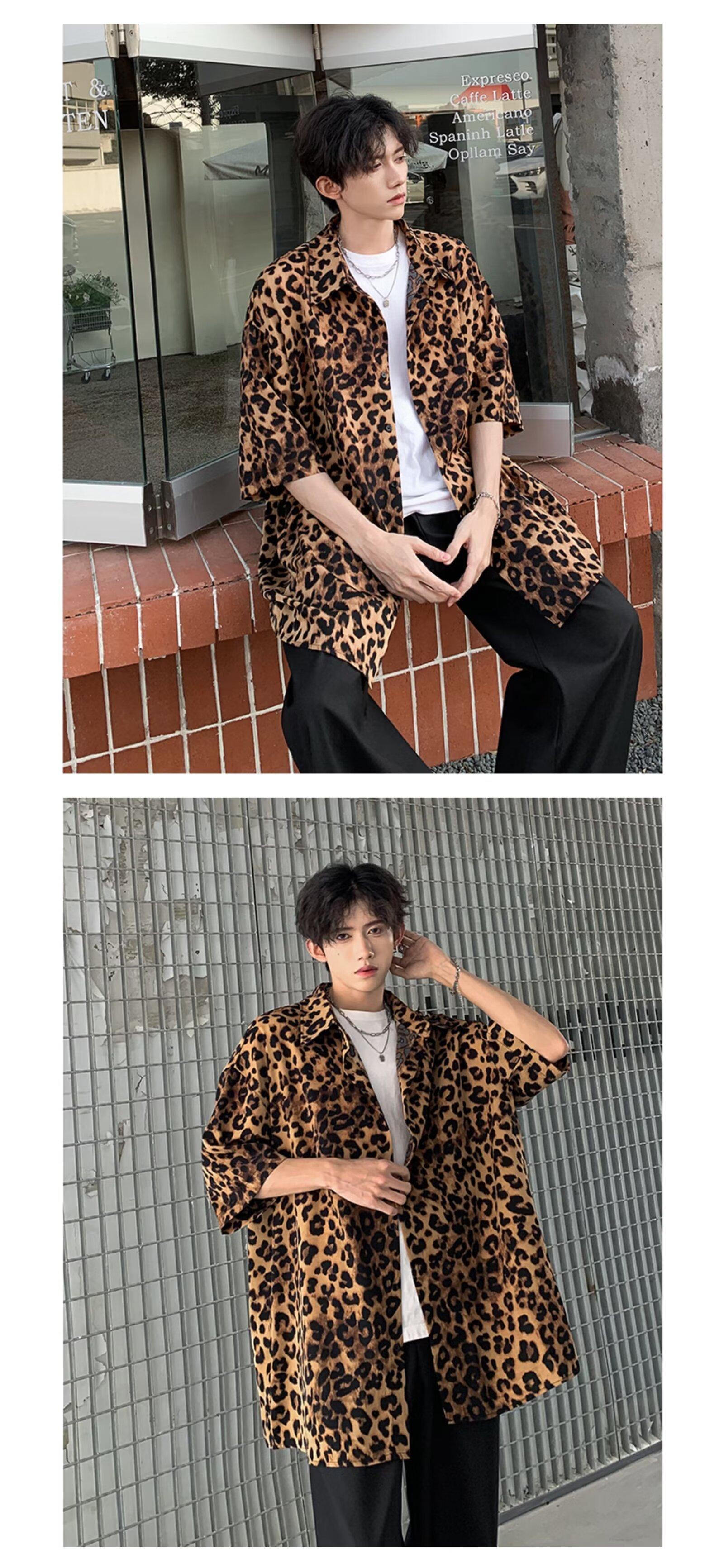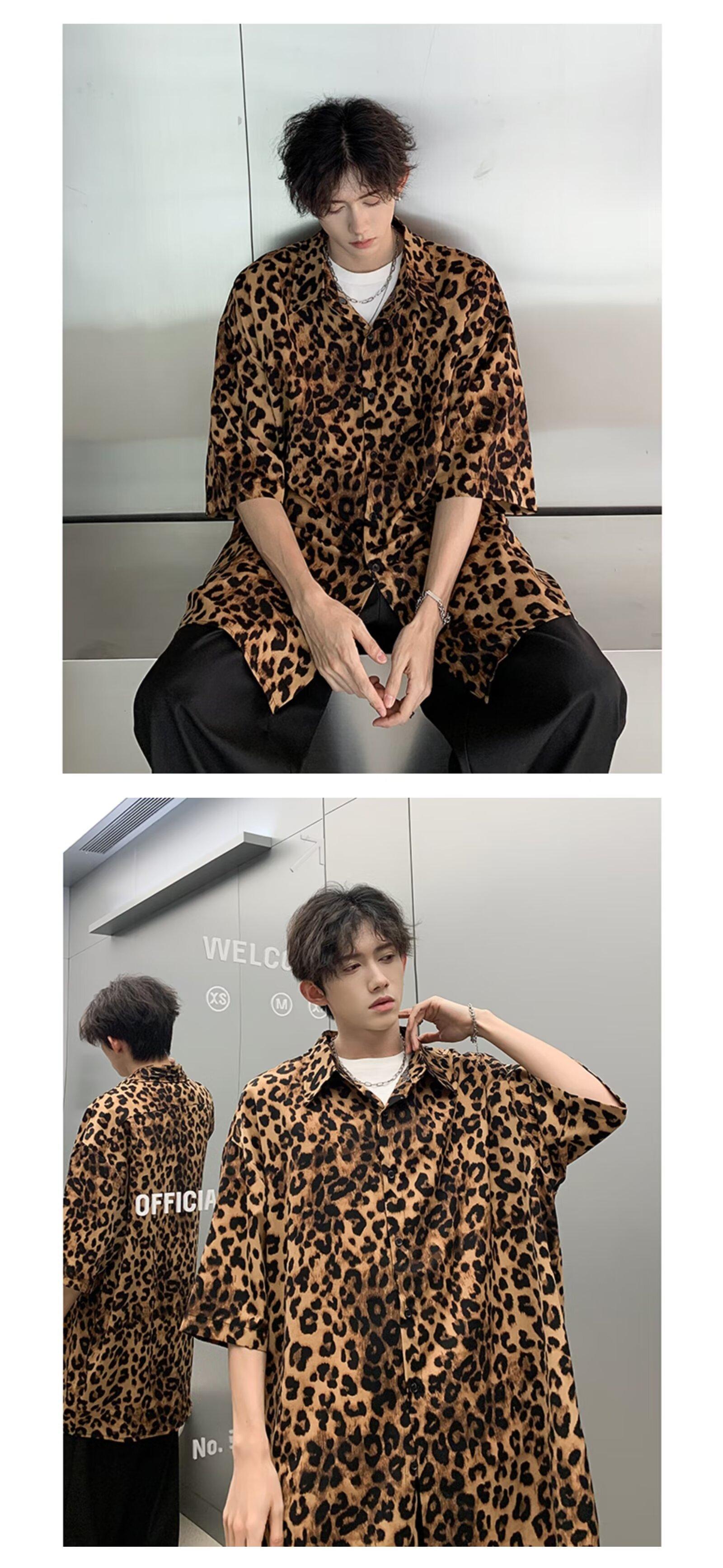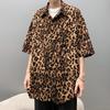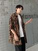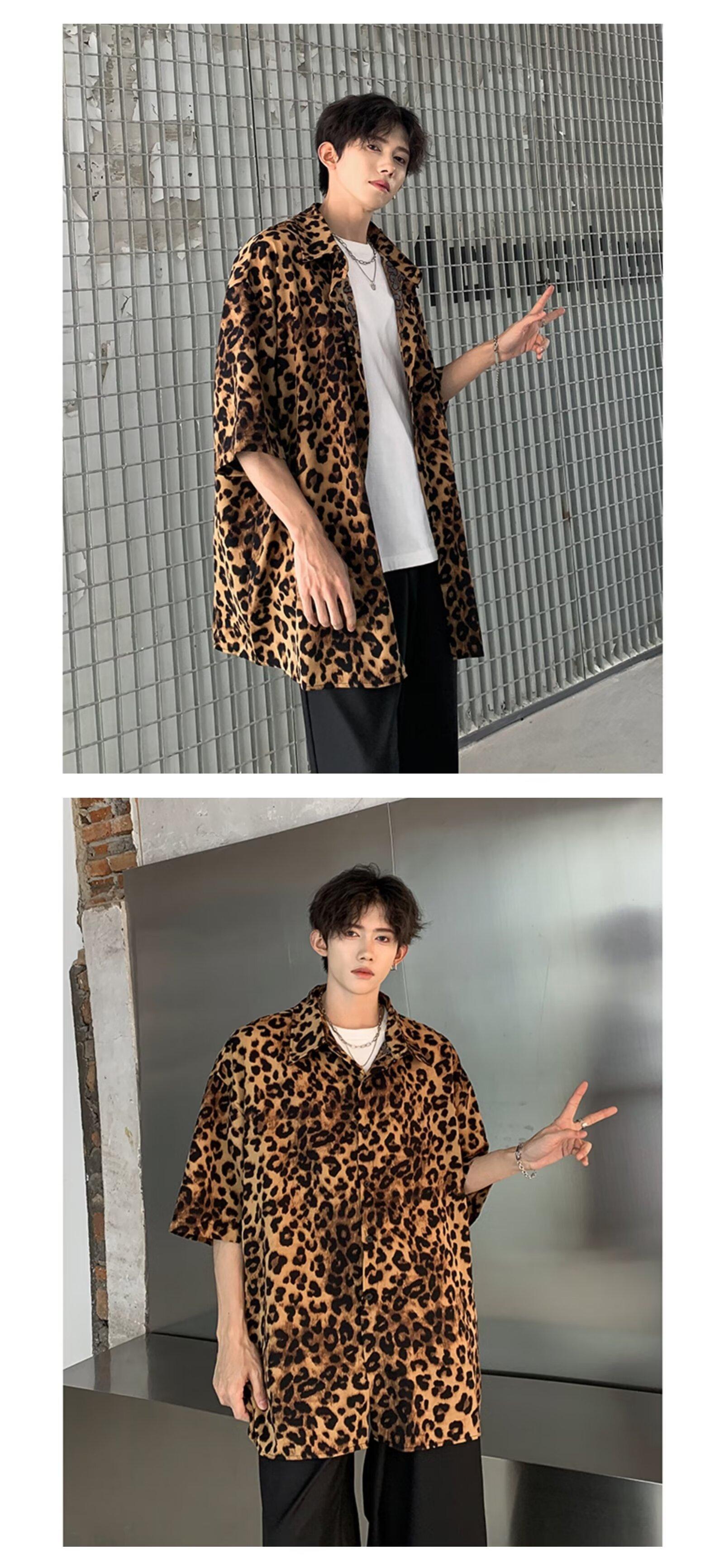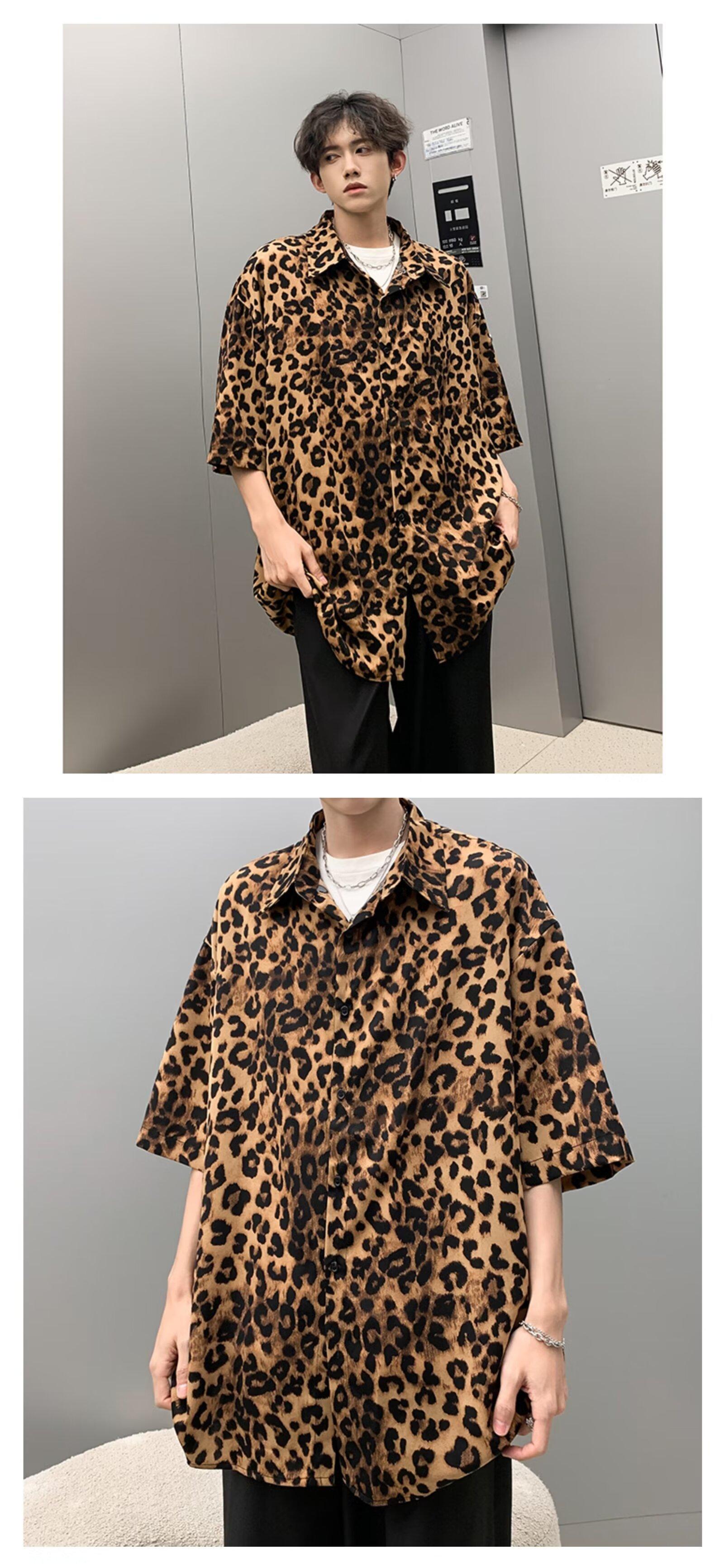 Marca de Moda Guapo Calle Camisa de Manga Corta para Hombre Verano Delgada Estampado Leopardo Camisa de Media Manga Trendy Casual para Hombre Camisa Pequeña