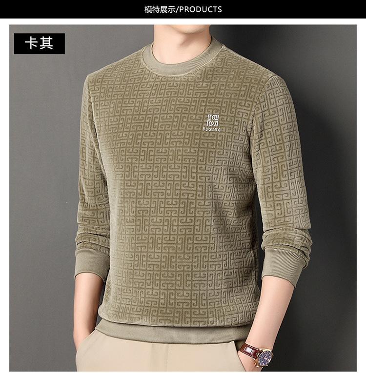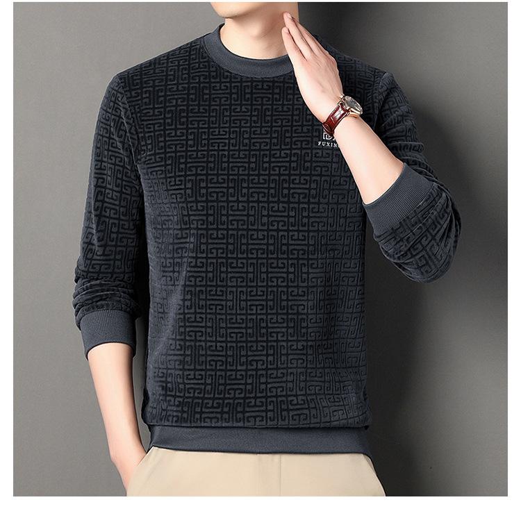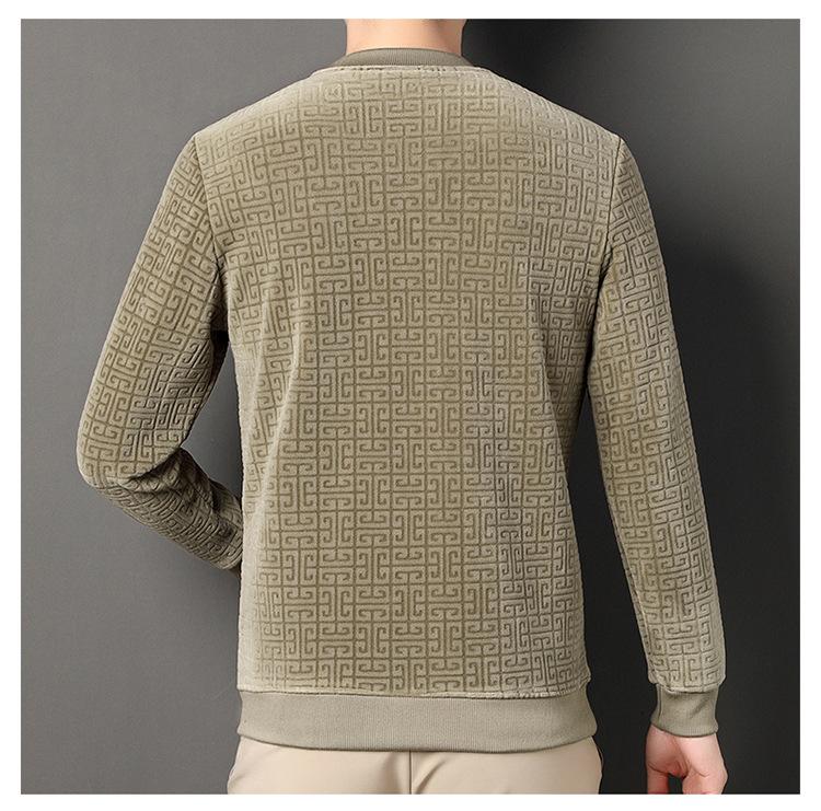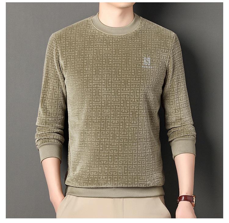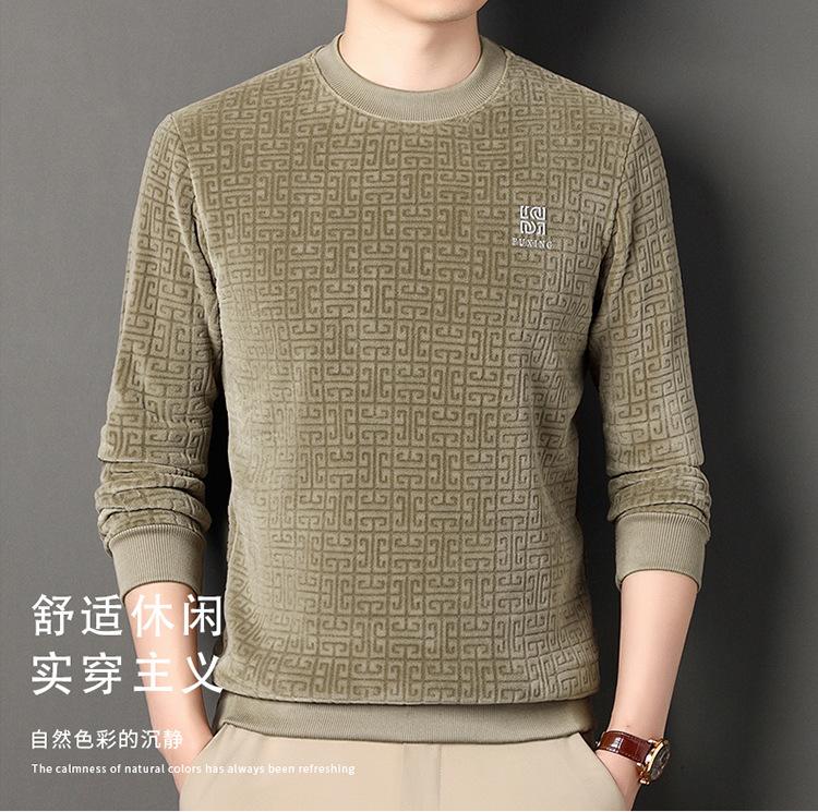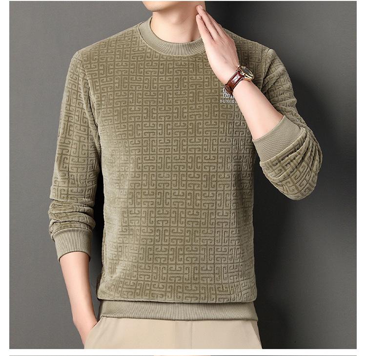 Otoño e invierno Nueva camiseta de manga larga de polar olímpico para hombre, casual, versátil, cálida, de cuello redondo, con forro polar, suéter grueso, ropa de hombre