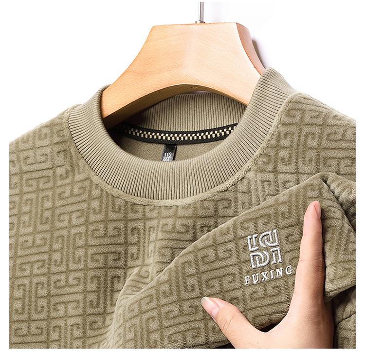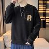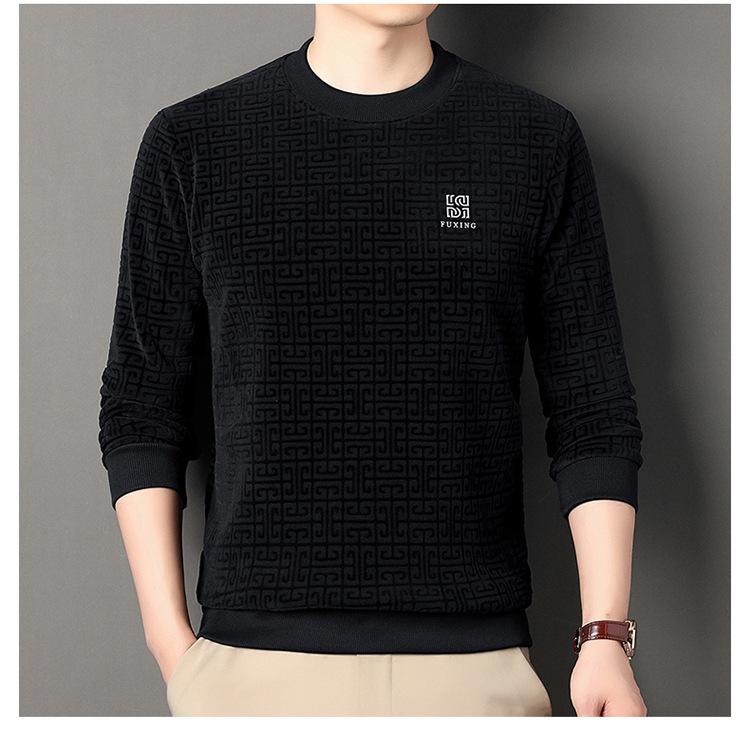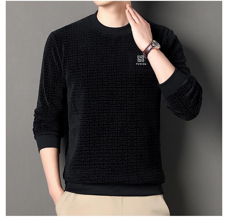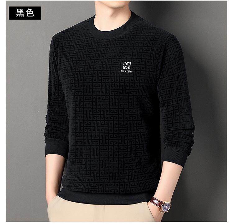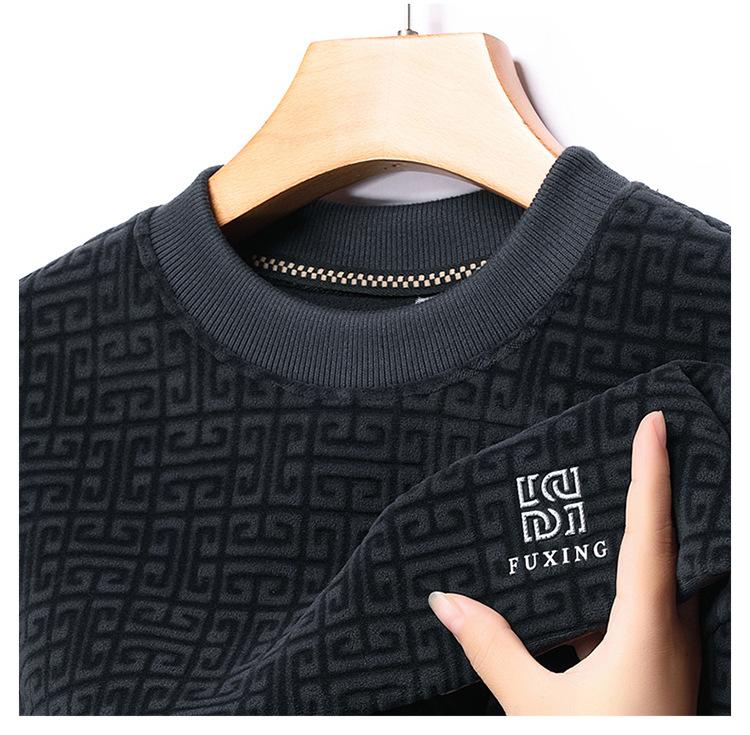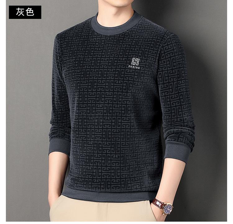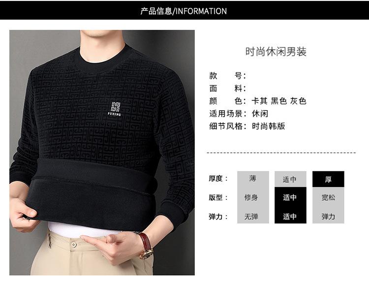 Otoño e invierno Nueva camiseta de manga larga de polar olímpico para hombre, casual, versátil, cálida, de cuello redondo, con forro polar, suéter grueso, ropa de hombre