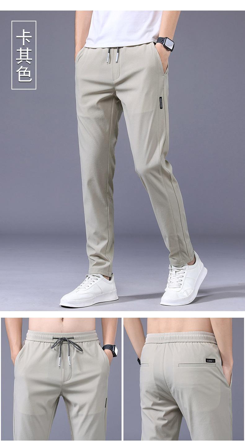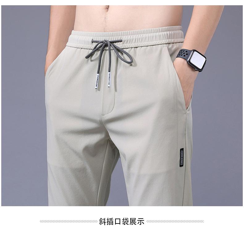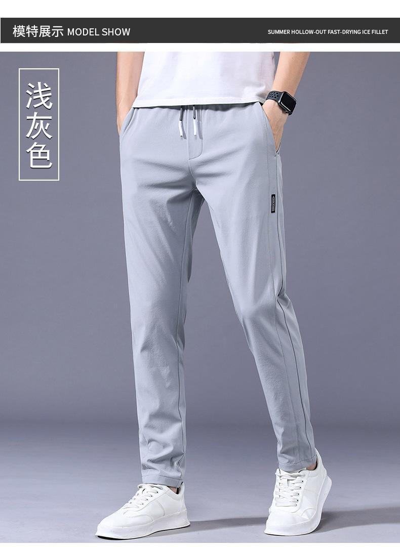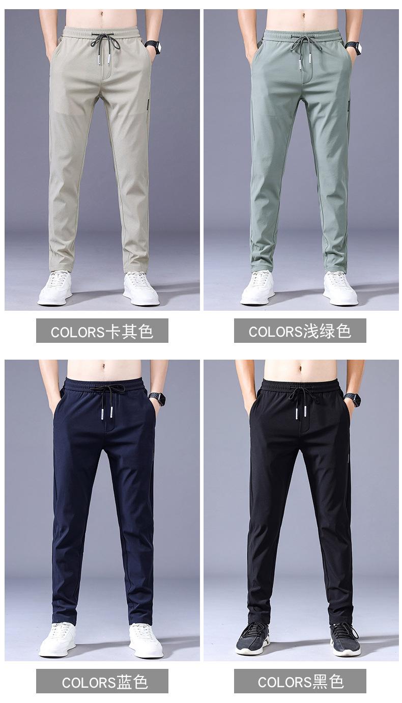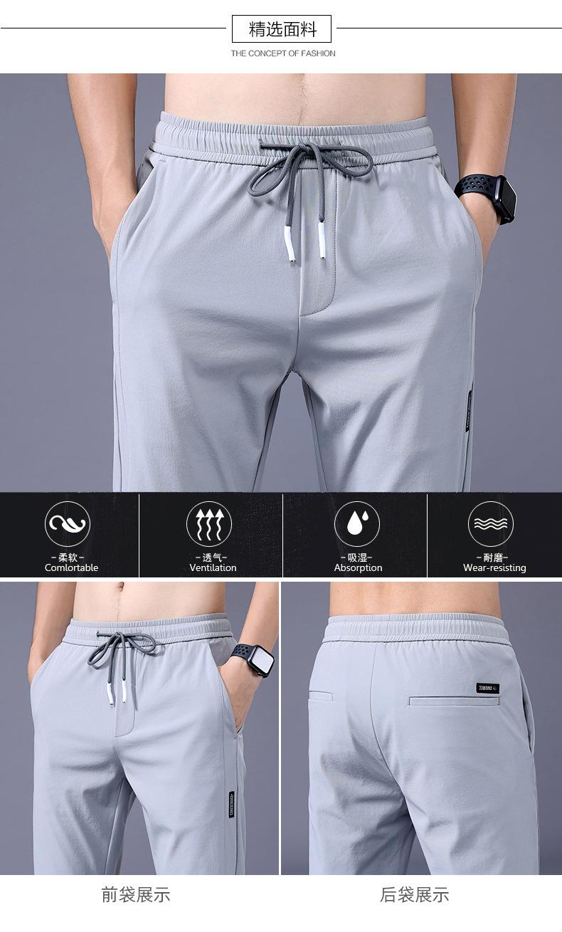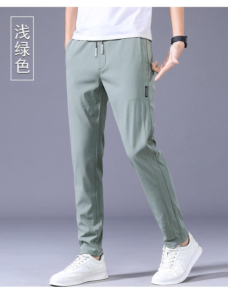 Pantalones Frescos de Seda de Hielo para Hombre Cintura Elástica Ajuste Entallado Alto Pantalones Deportivos para Hombre Verano Comercio Exterior Transfronterizo Casual Pantalones para Hombre 1062