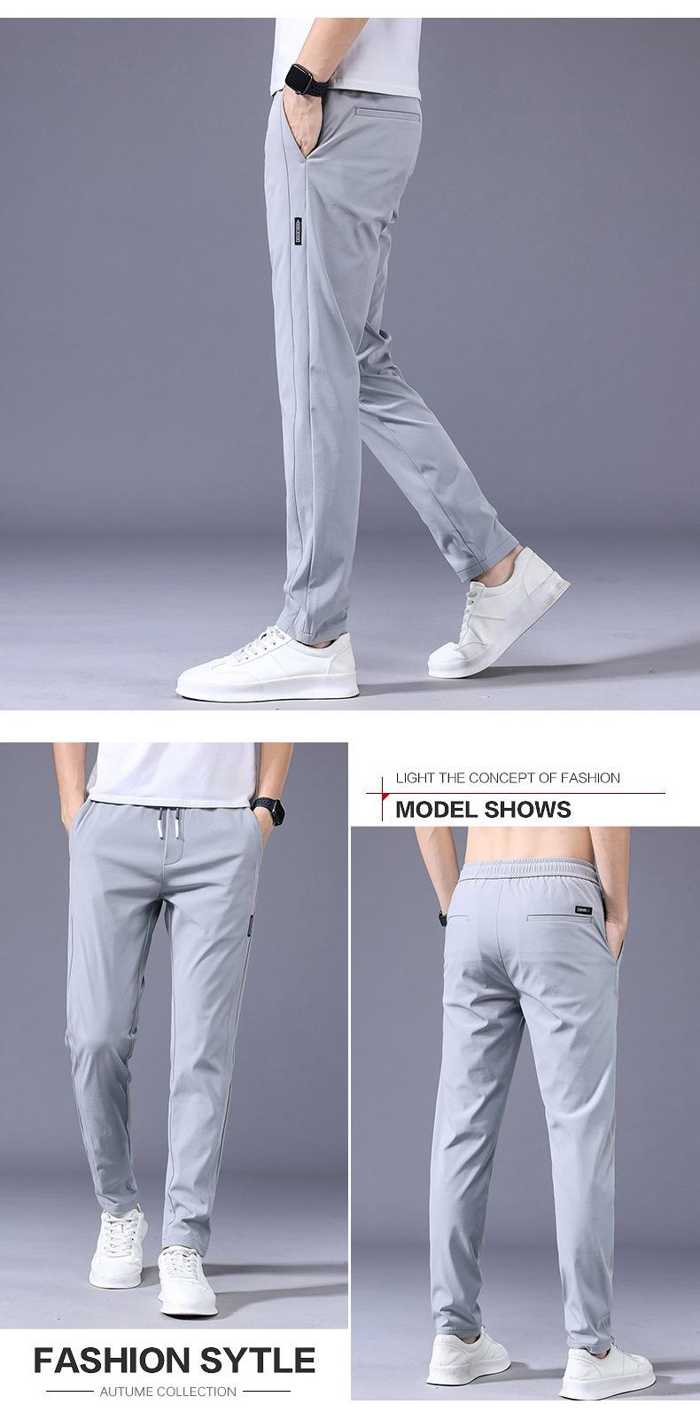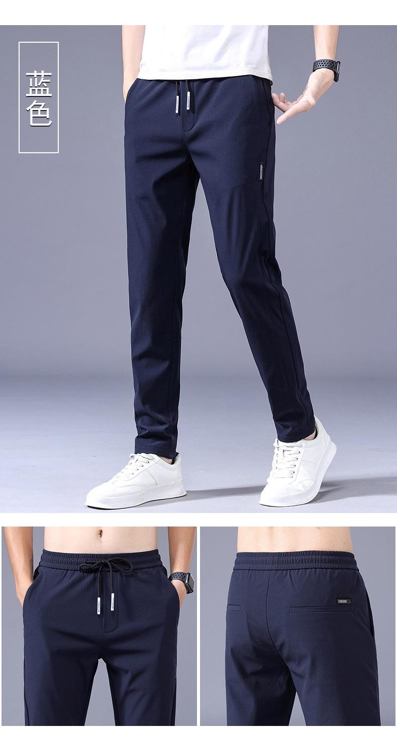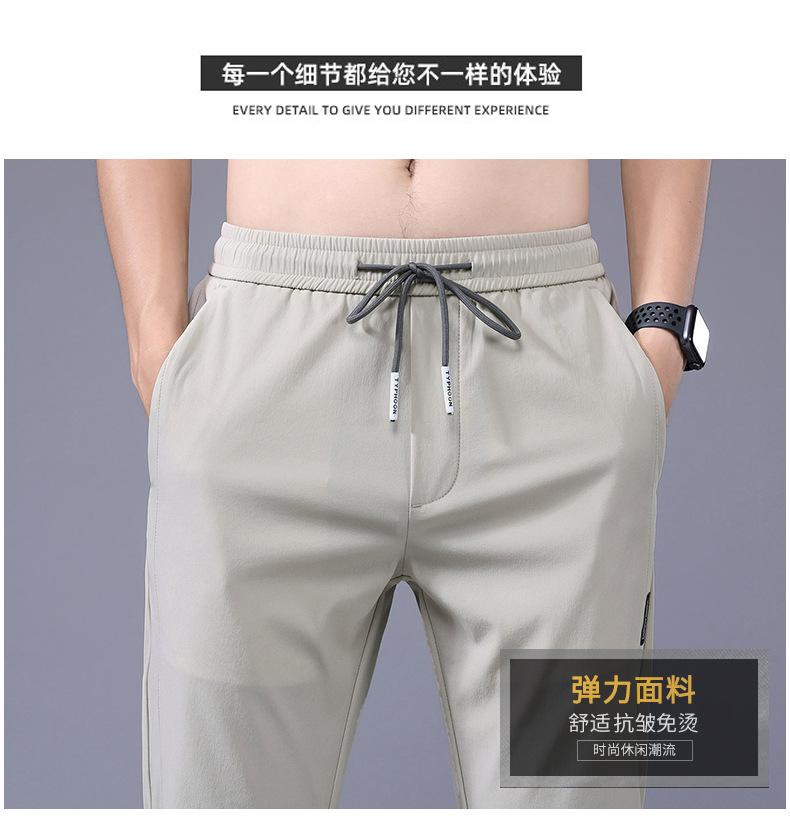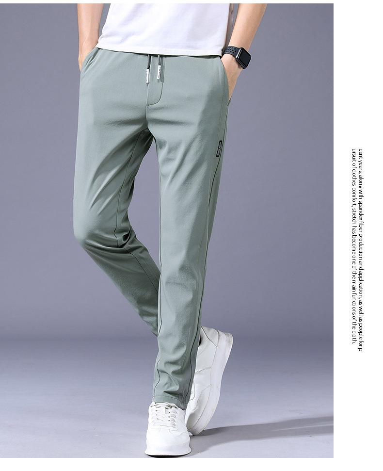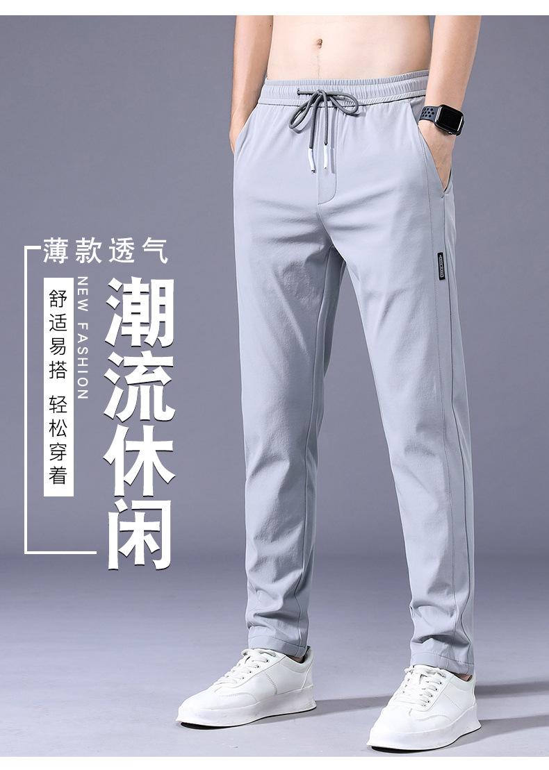 Pantalones Frescos de Seda de Hielo para Hombre Cintura Elástica Ajuste Entallado Alto Pantalones Deportivos para Hombre Verano Comercio Exterior Transfronterizo Casual Pantalones para Hombre 1062