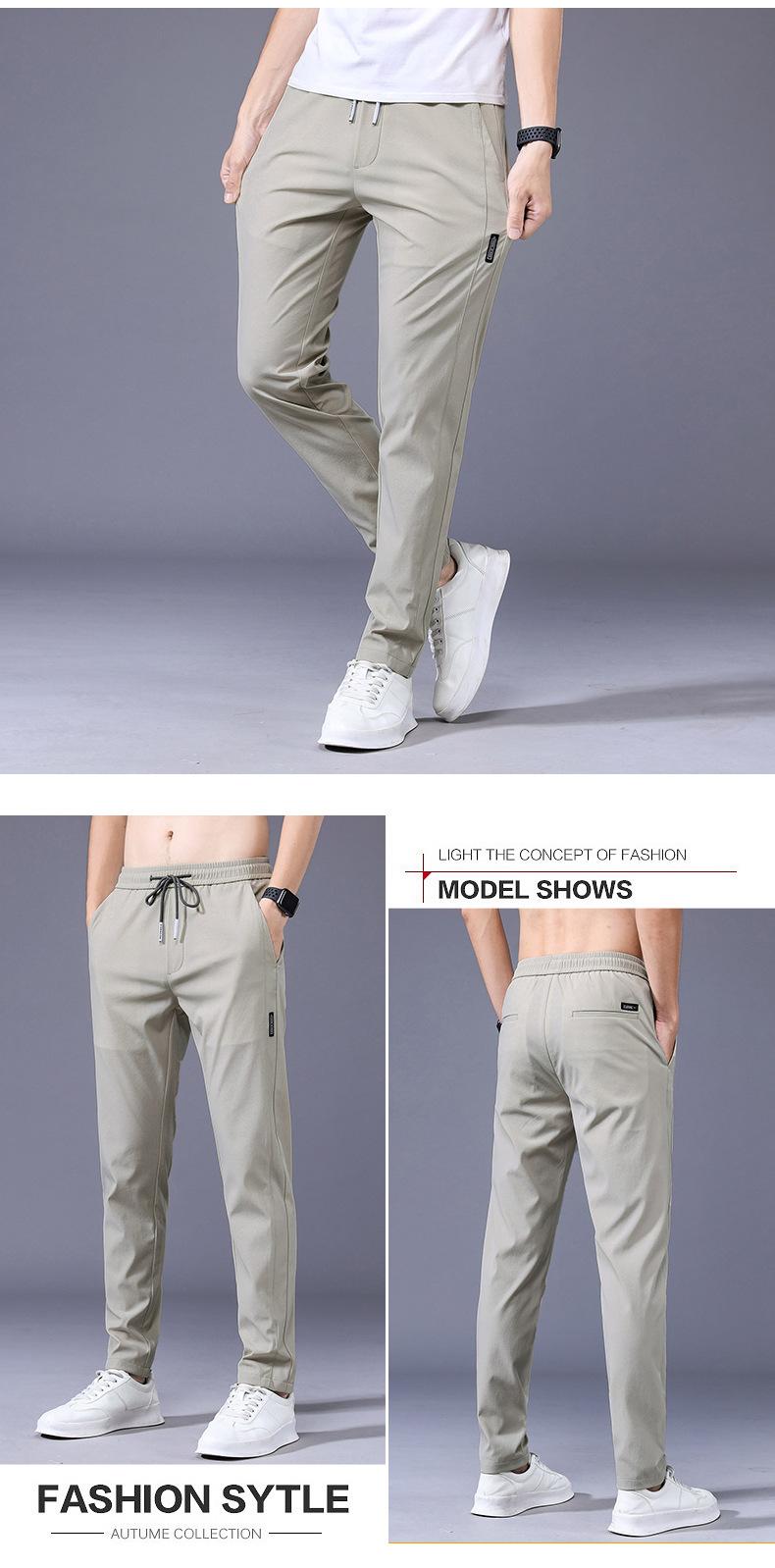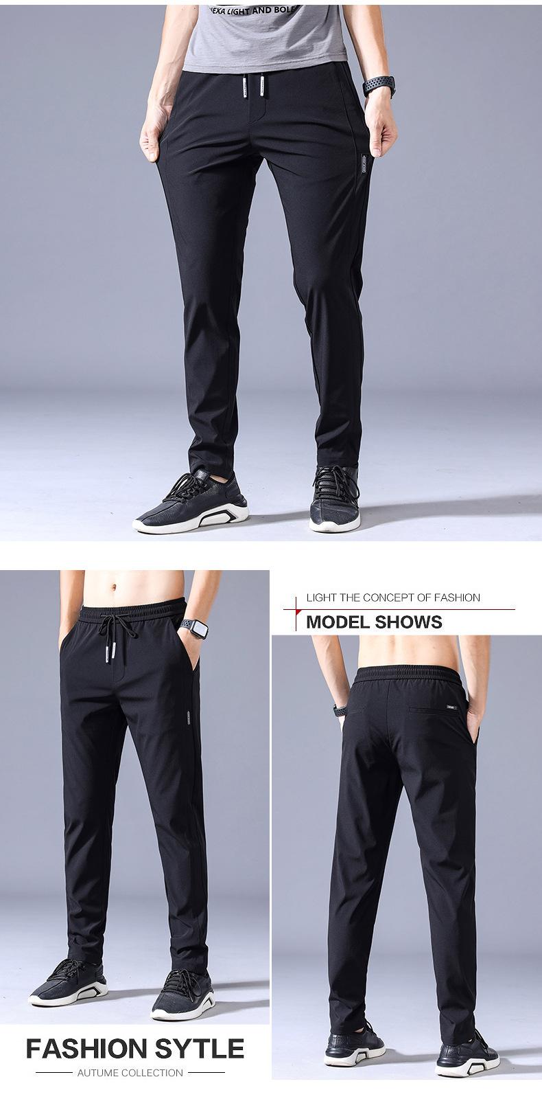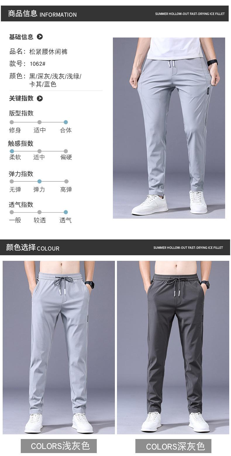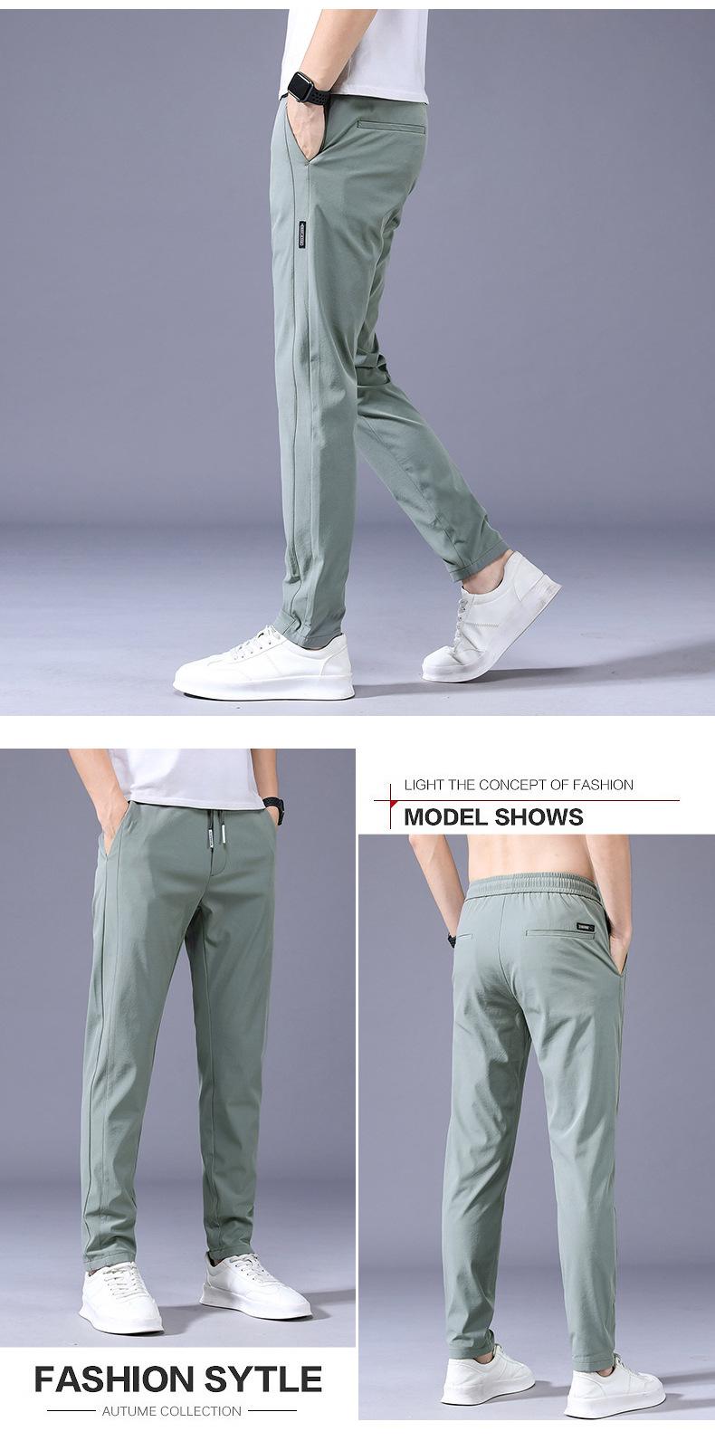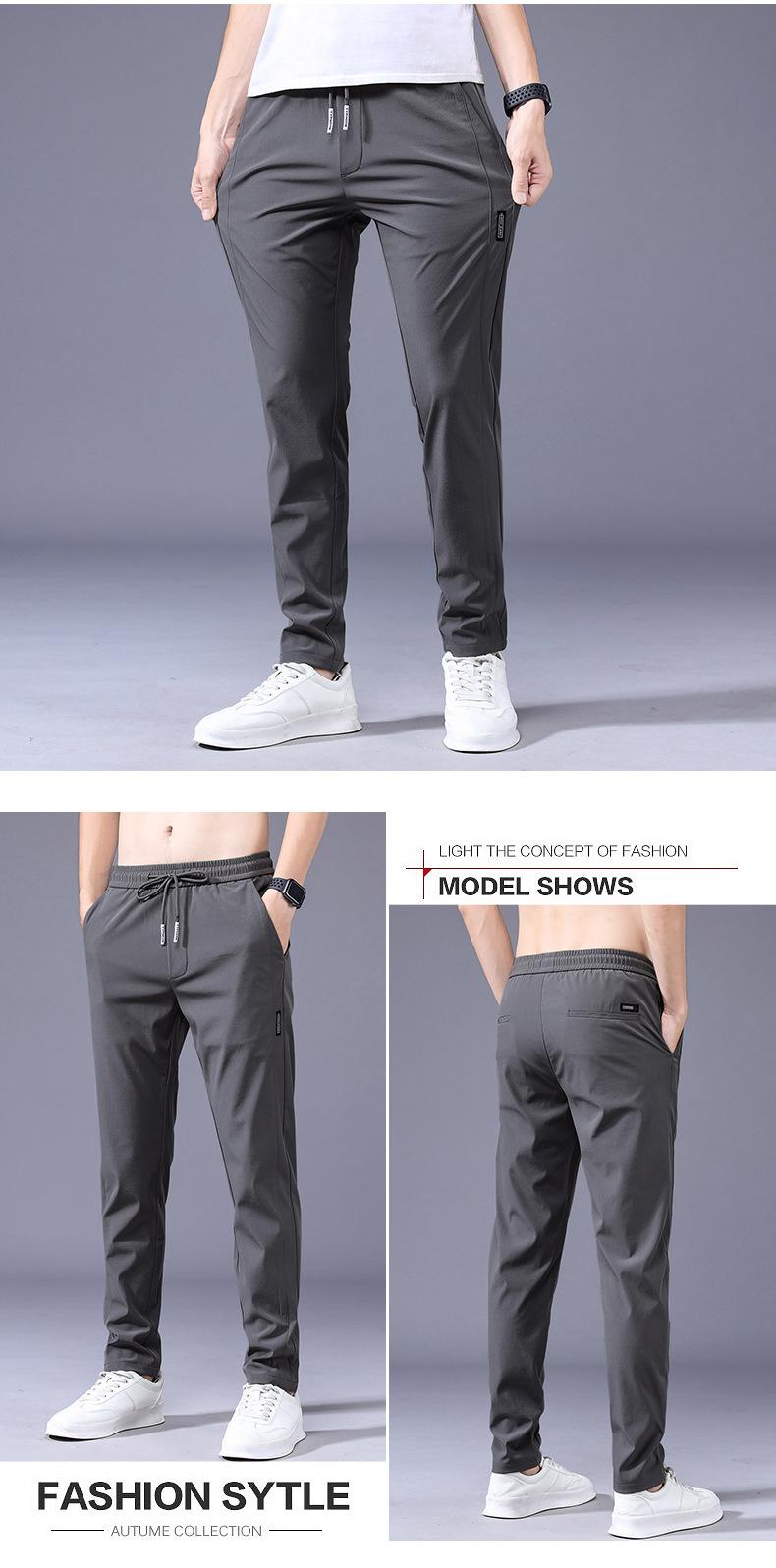 Pantalones Frescos de Seda de Hielo para Hombre Cintura Elástica Ajuste Entallado Alto Pantalones Deportivos para Hombre Verano Comercio Exterior Transfronterizo Casual Pantalones para Hombre 1062