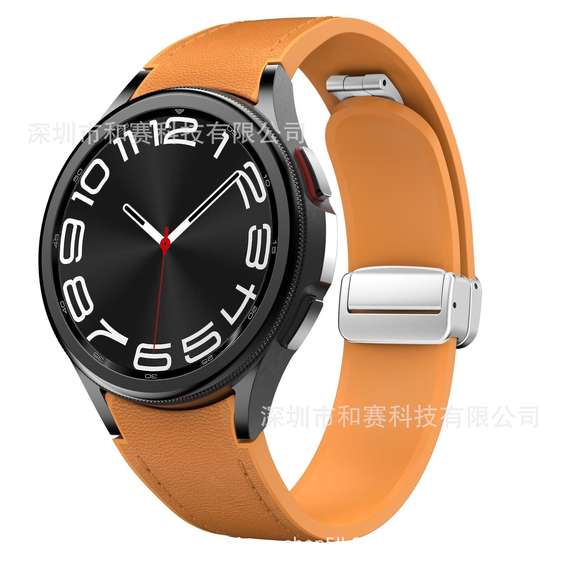 Disponible en stock para Samsung watch6 correa de cuero hebilla plegable magnética correa watch5 correa watch4 de liberación rápida