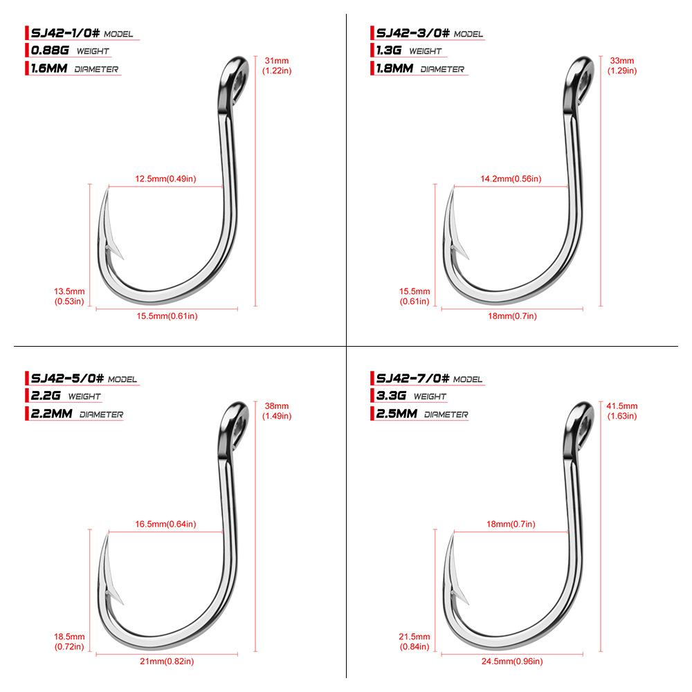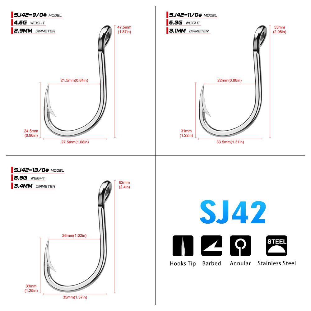 Hecho de acero con alto contenido de carbono, tiene un mango de gancho largo, una punta de gancho afilada, una fuerte resistencia a la corrosión y una alta tasa de captura de peces.