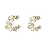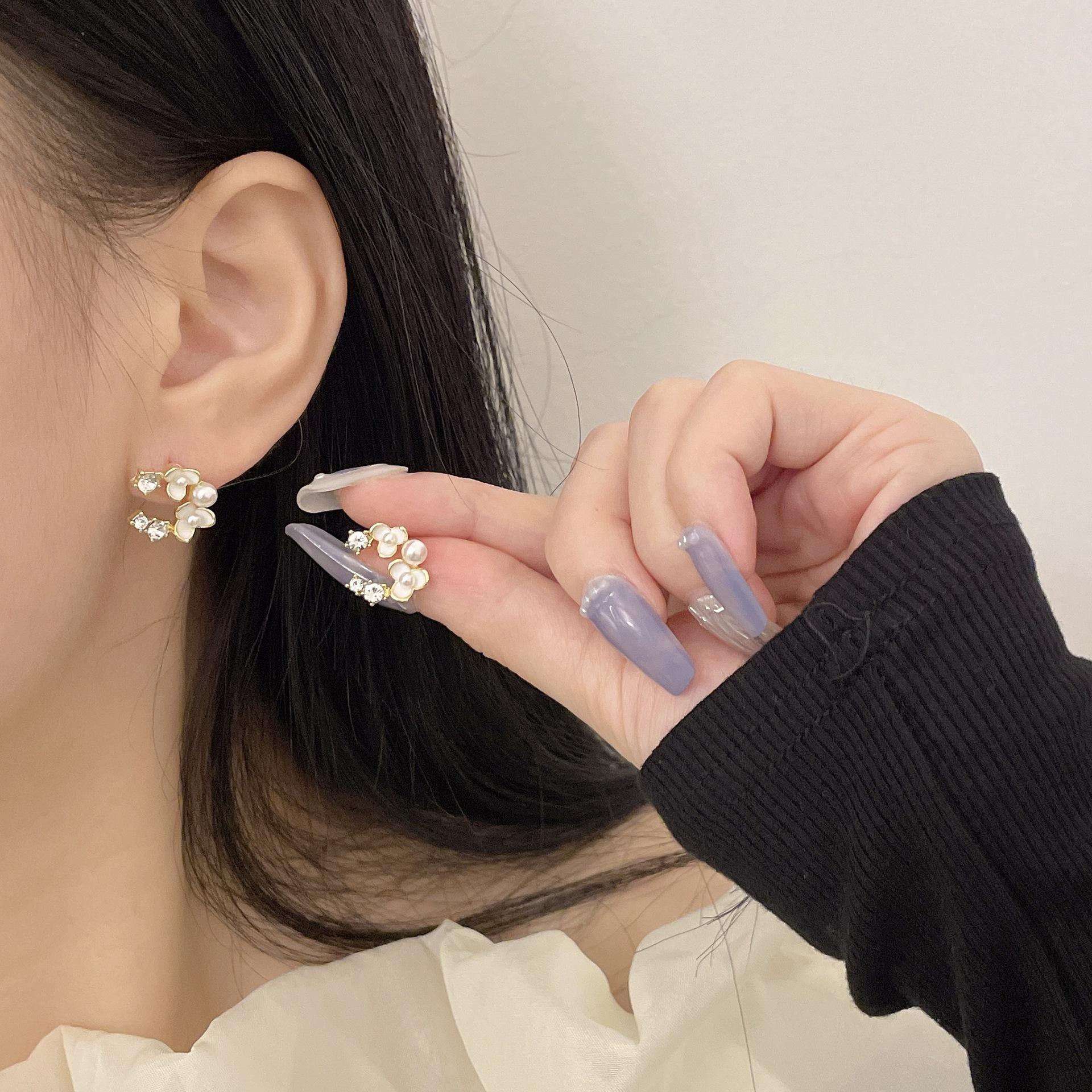 Pendientes elegantes con forma de flor de perla y aguja de plata, ligeros, de lujo, sencillos, con clip para la oreja, para mujer, diseño de nicho, pendientes de alta gama con clip para la oreja.