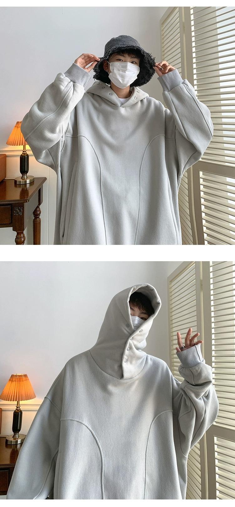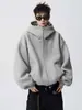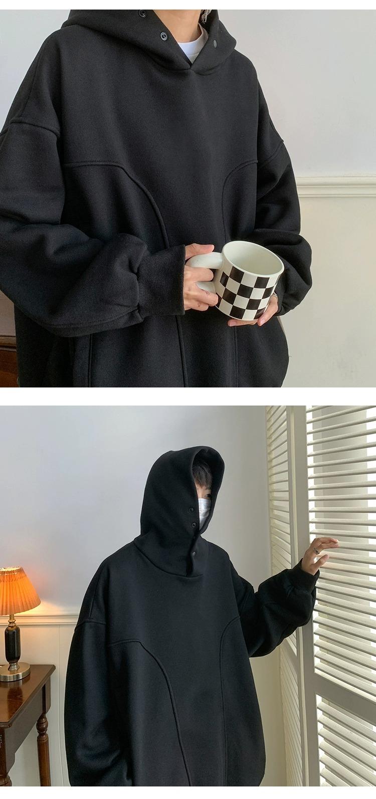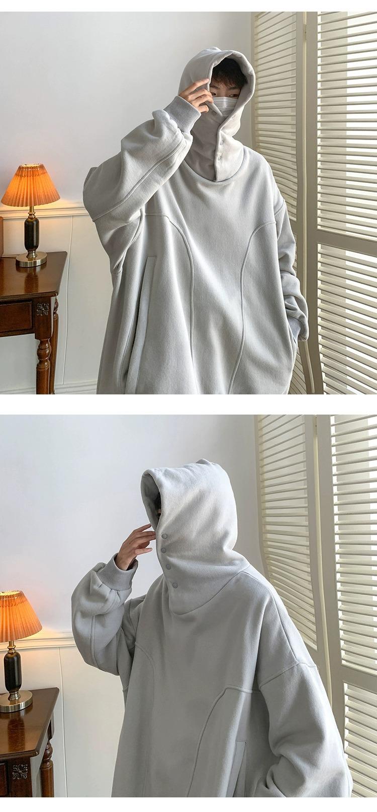 Sudadera con capucha de calle alta de primavera y otoño con cuello alto para hombre, chaqueta tipo jersey de color sólido