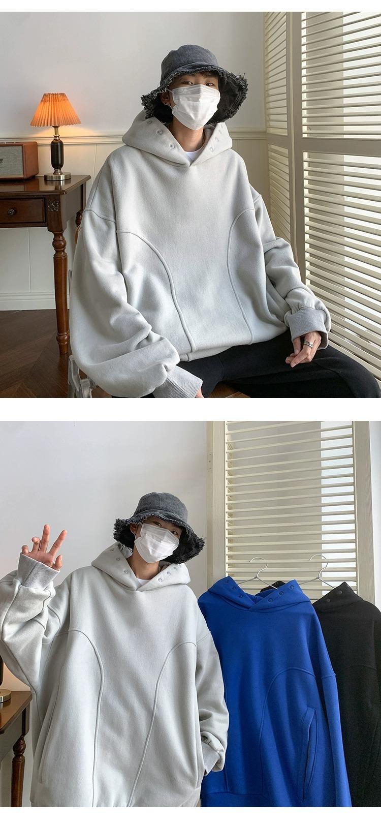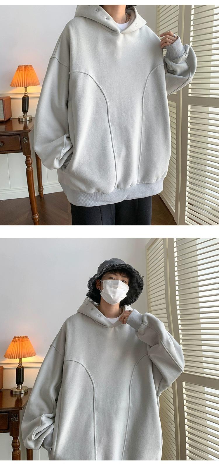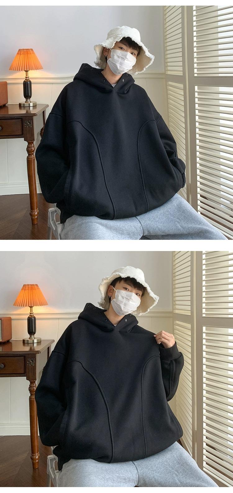 Sudadera con capucha de calle alta de primavera y otoño con cuello alto para hombre, chaqueta tipo jersey de color sólido