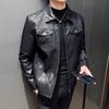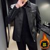 Abrigo de cuero para hombre otoño e invierno Nuevo estilo coreano moderno juventud guapo abrigo de cuero casual con solapa estilo ropa de trabajo forrado de vellón