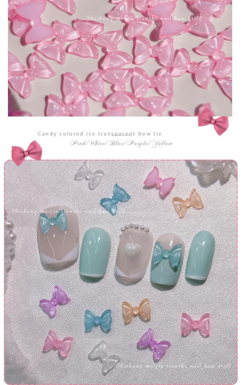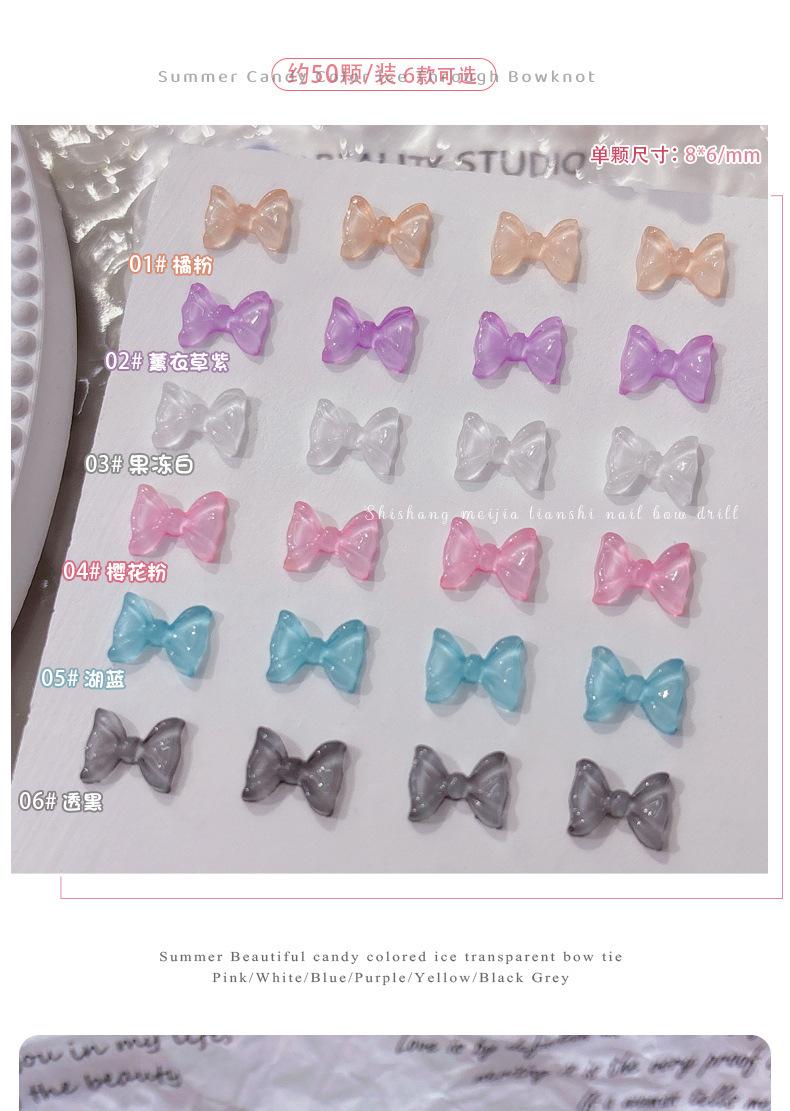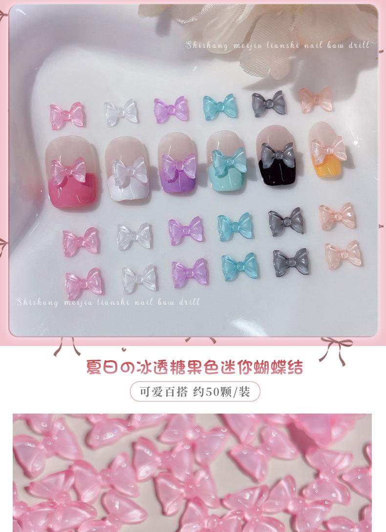 50 piezas de mini lazos para decoración de uñas, joyería con forma de lazo de resina, accesorios para uñas.