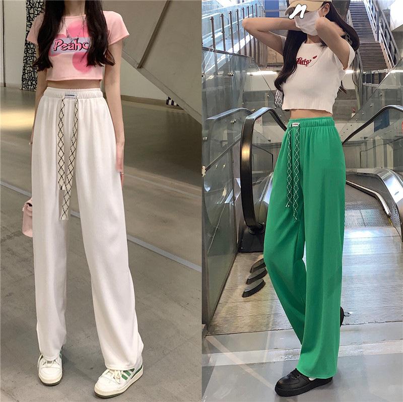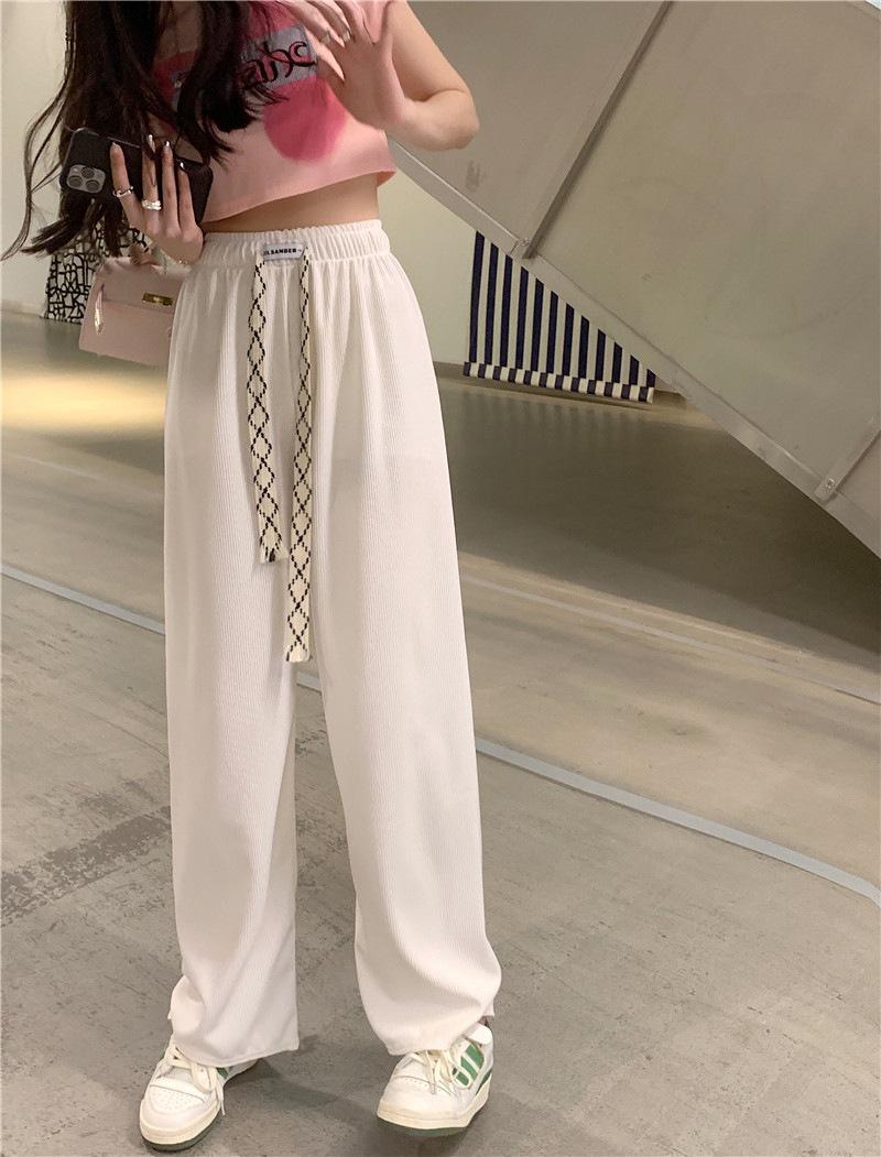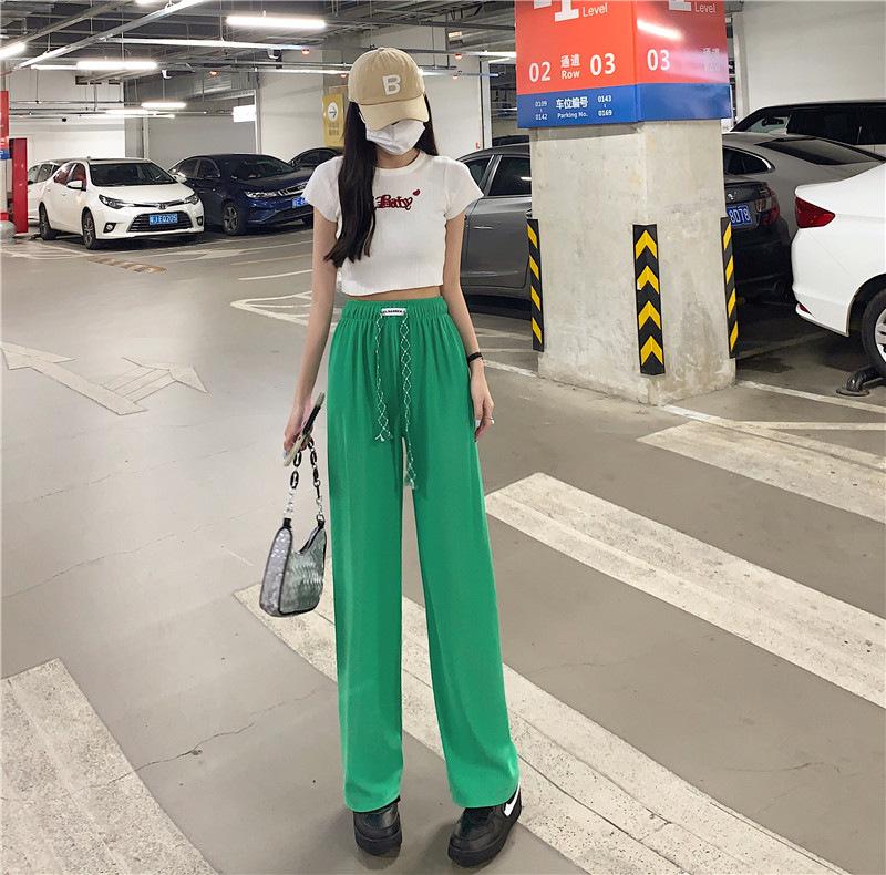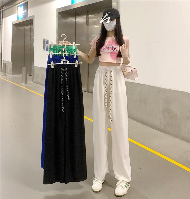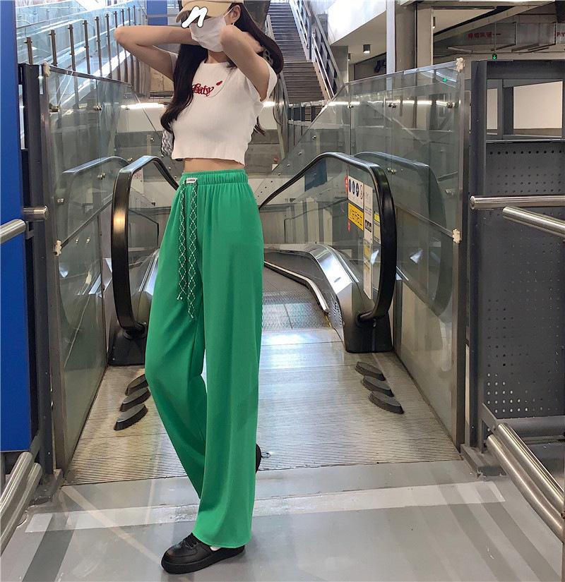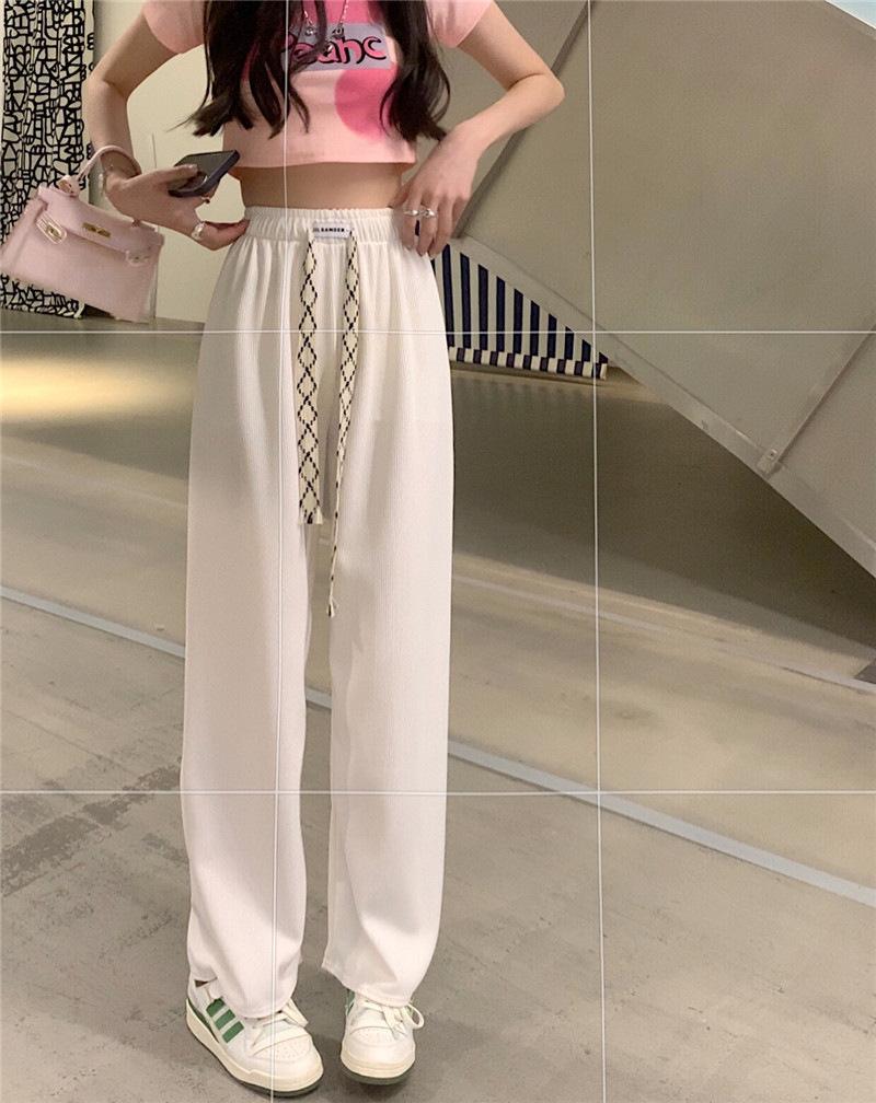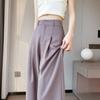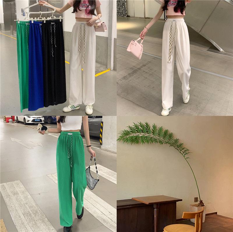 Pantalones anchos de seda de hielo para mujer, pantalones casuales drapeados de cintura alta, novedad de verano 2024, pantalones de fregona sueltos de tubo recto, finos, al por mayor
