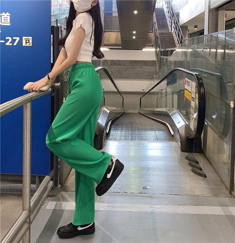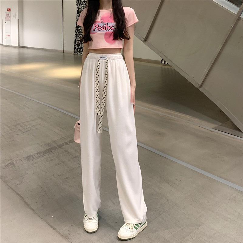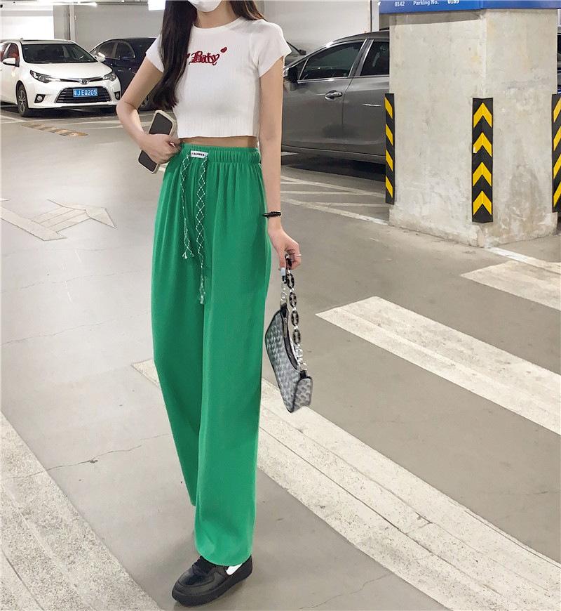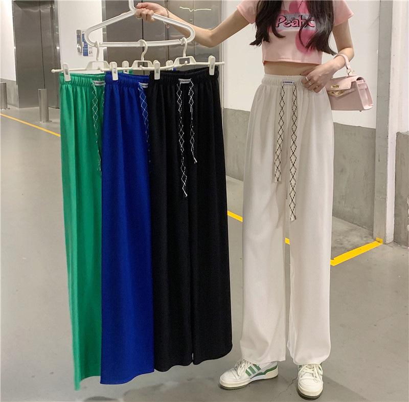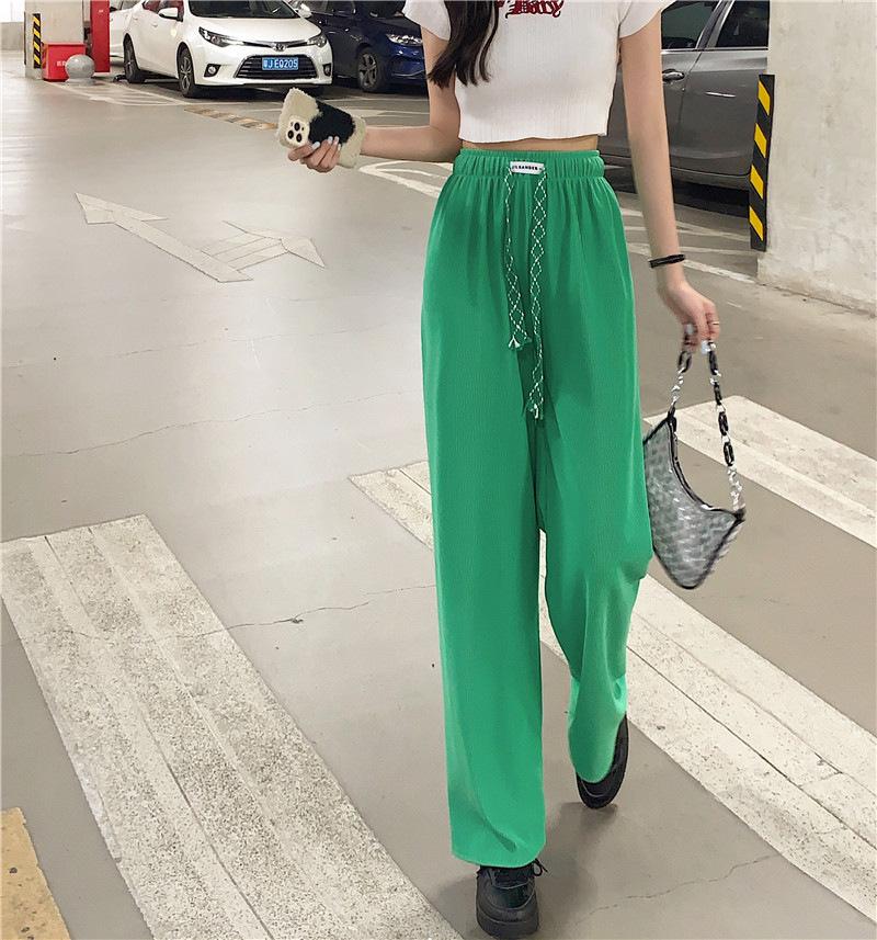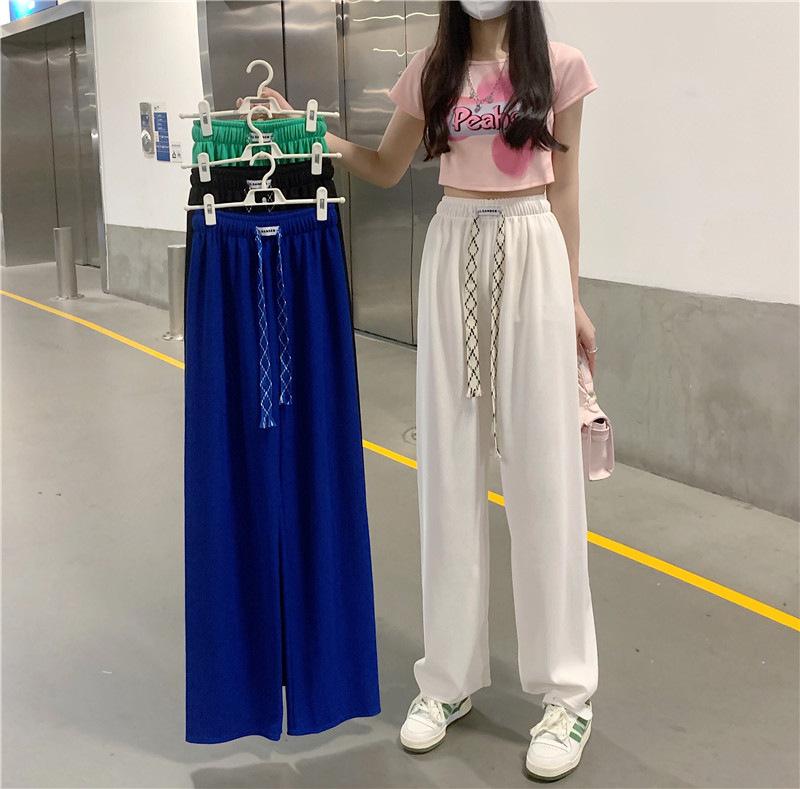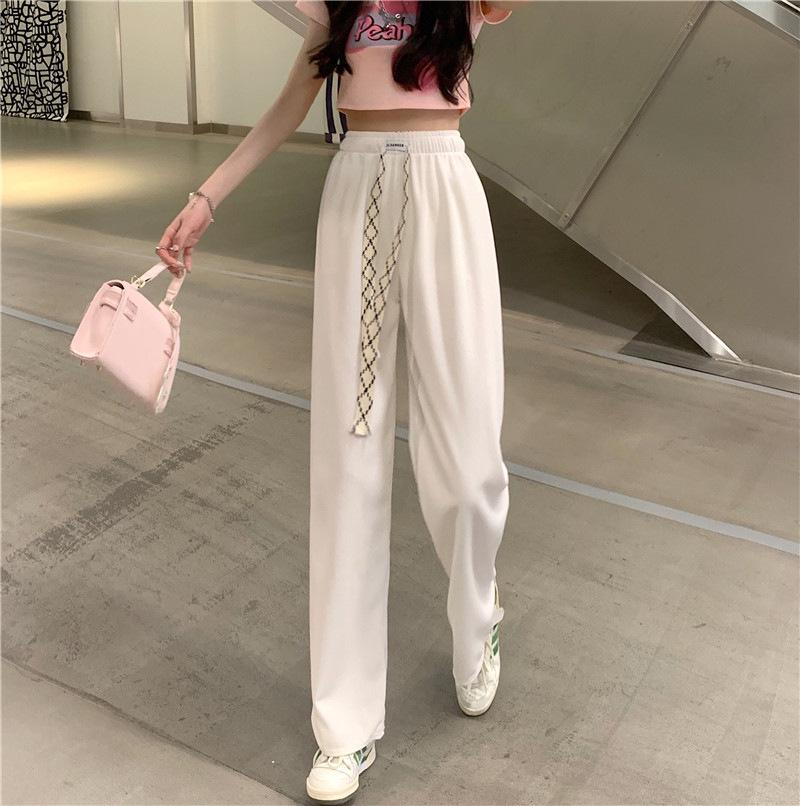 Pantalones anchos de seda de hielo para mujer, pantalones casuales drapeados de cintura alta, novedad de verano 2024, pantalones de fregona sueltos de tubo recto, finos, al por mayor