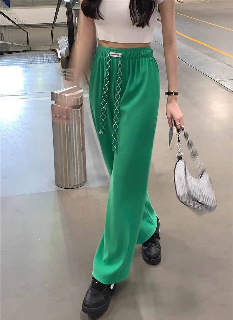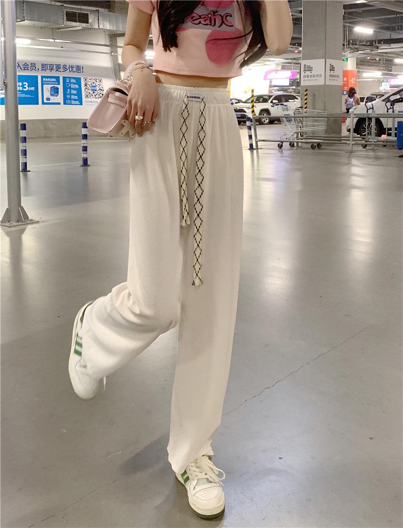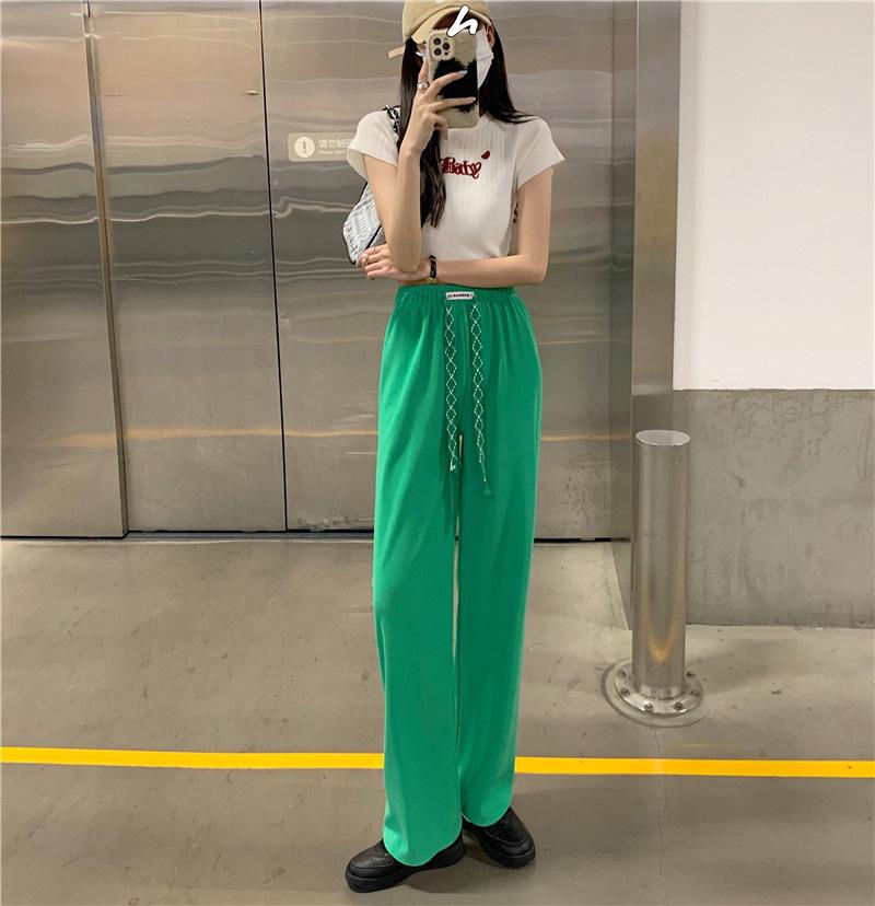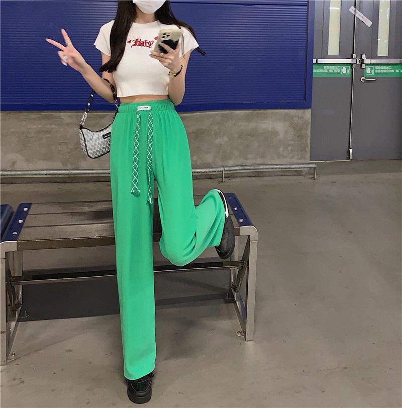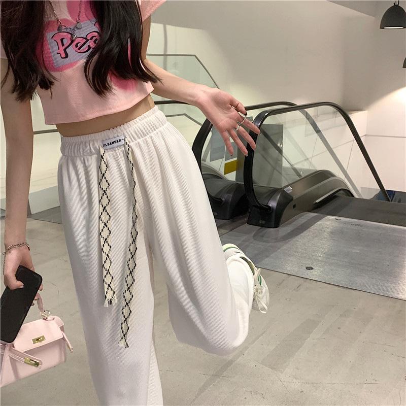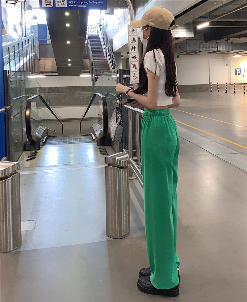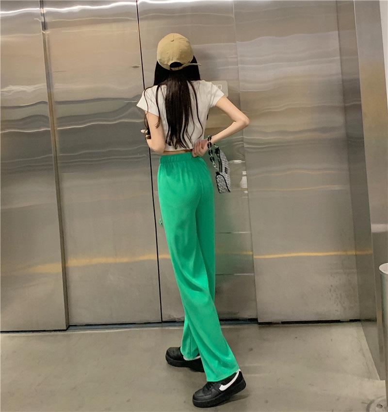Pantalones anchos de seda de hielo para mujer, pantalones casuales drapeados de cintura alta, novedad de verano 2024, pantalones de fregona sueltos de tubo recto, finos, al por mayor