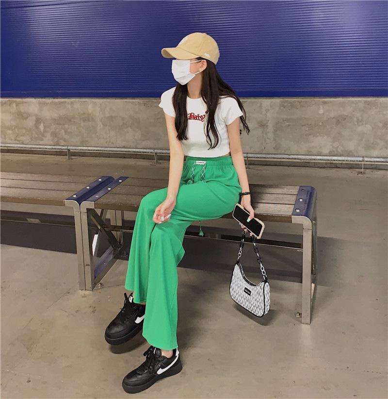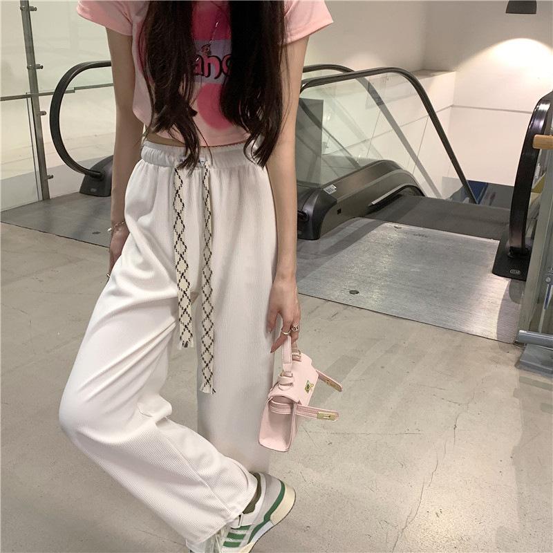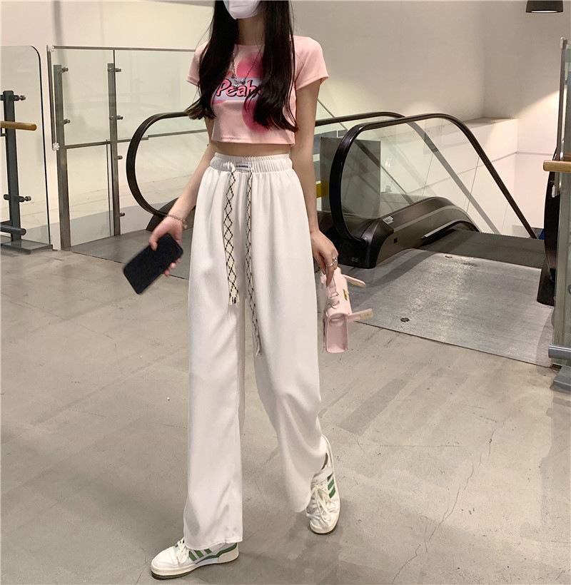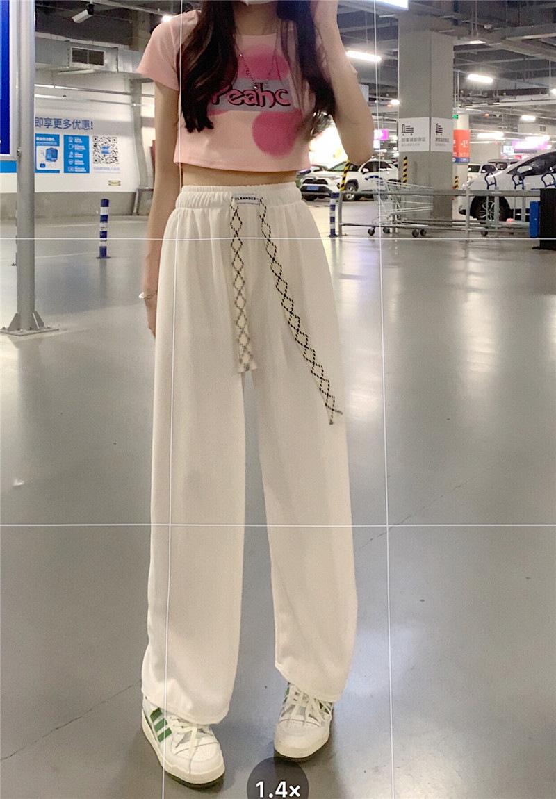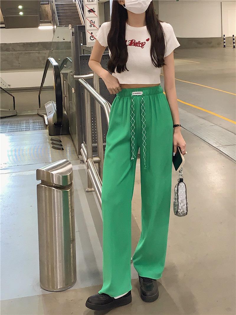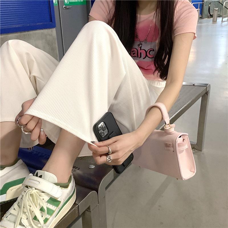 Pantalones anchos de seda de hielo para mujer, pantalones casuales drapeados de cintura alta, novedad de verano 2024, pantalones de fregona sueltos de tubo recto, finos, al por mayor