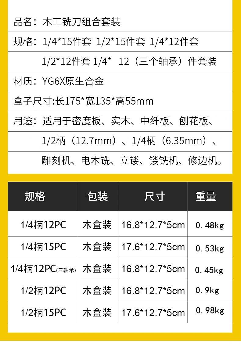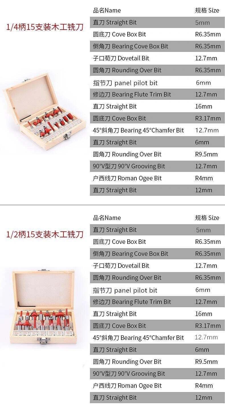 Juego de fresas de 12 y 15 piezas para máquina recortadora, máquina de grabado, fresa para carpintería, mango de 1/4 y mango de 1/2, cabezal de corte de carburo.