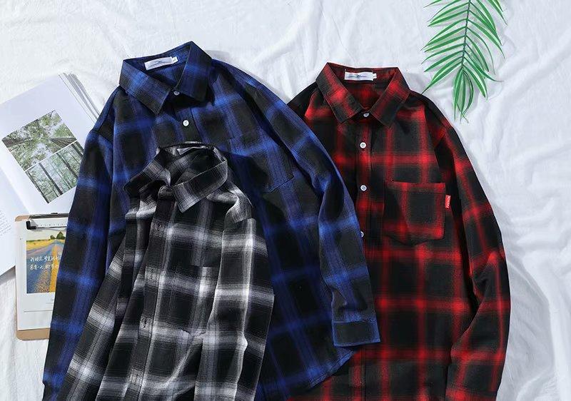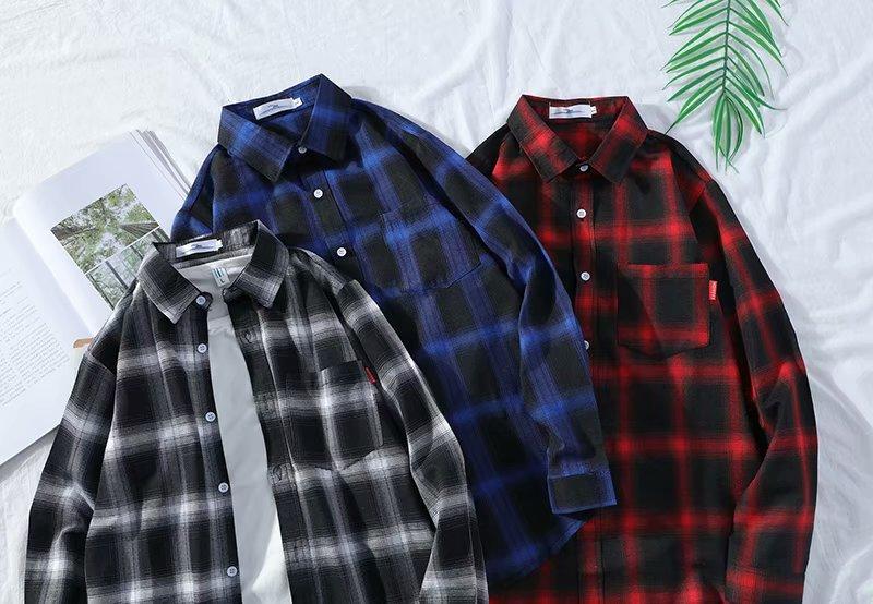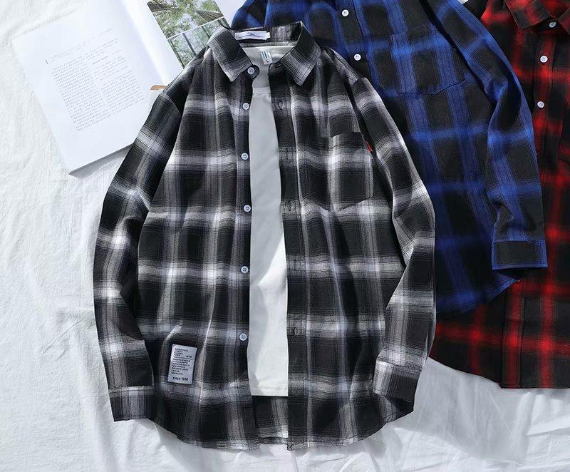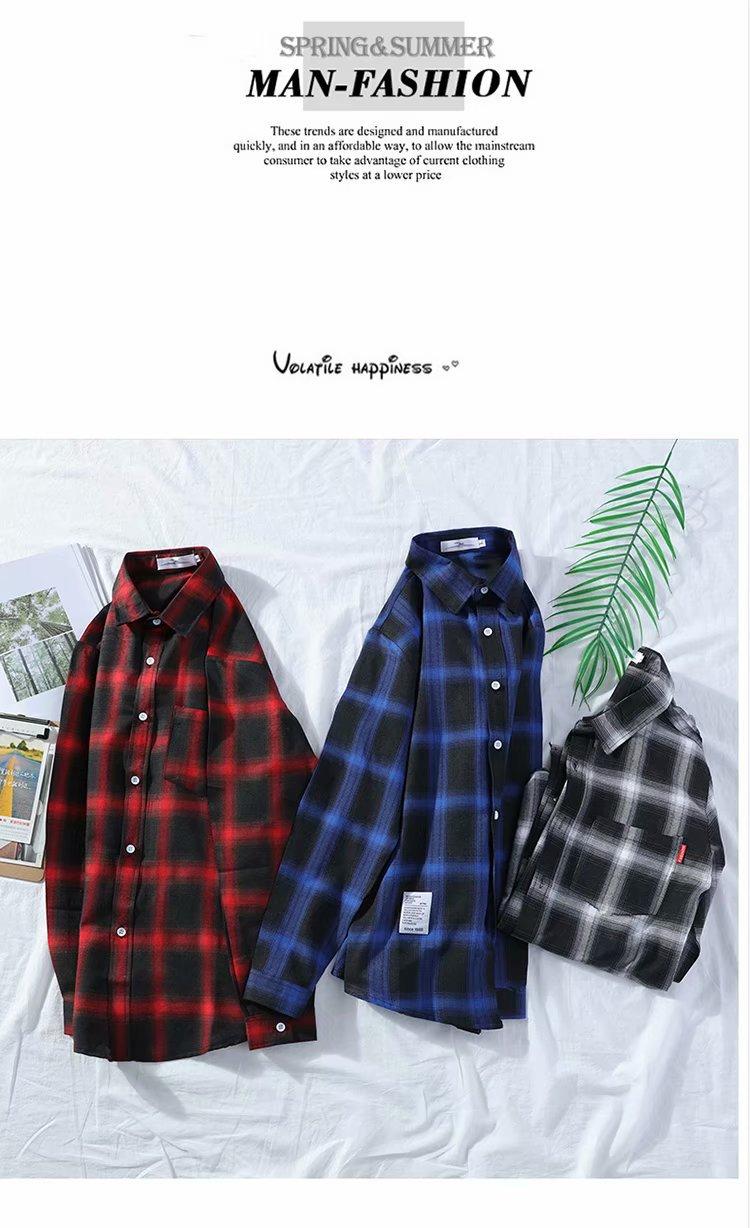 Compra Camisa a cuadros para hombre, de manga larga, estilo coreano, holgada, moderna, elegante, de talla grande, para estudiantes, primavera y verano, nueva camisa para hombre. al por mayor en Joom.pro