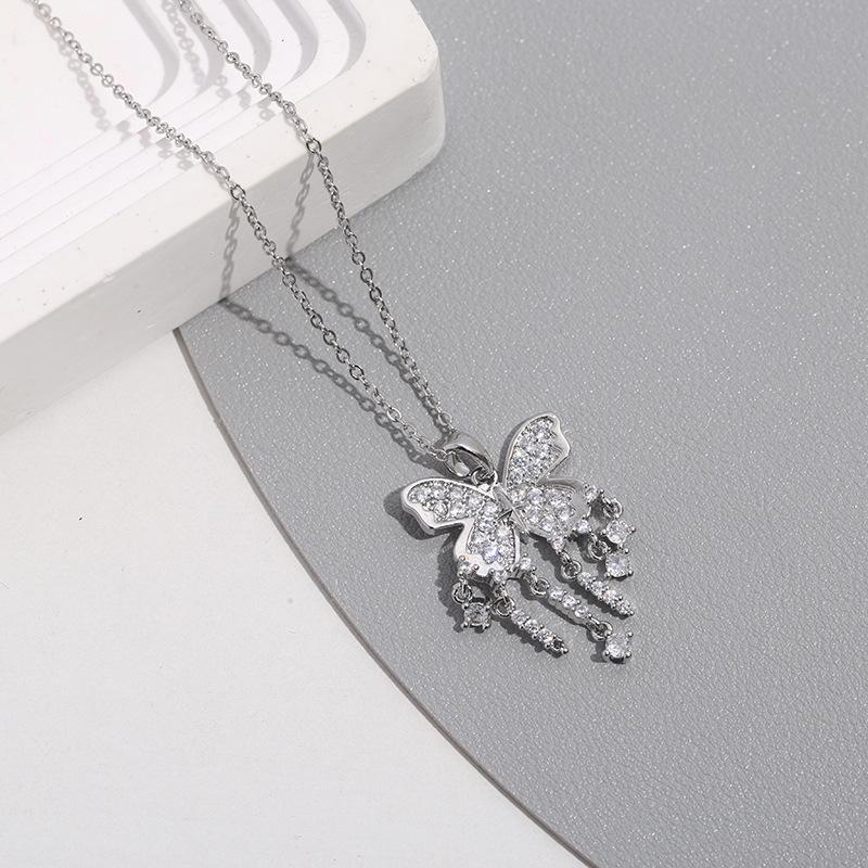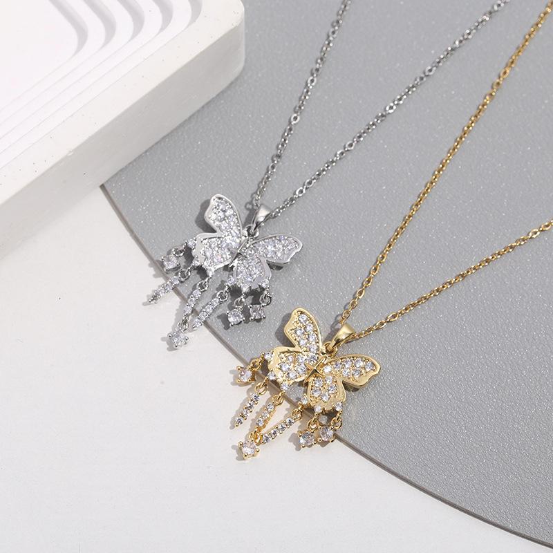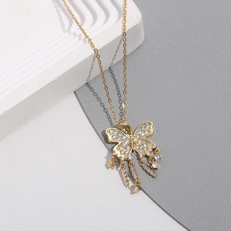 Nuevo collar de mariposa de moda para mujer, temperamento versátil, collar Taigang de cobre con microincrustaciones de circonita, colgante simple, collar de mariposa