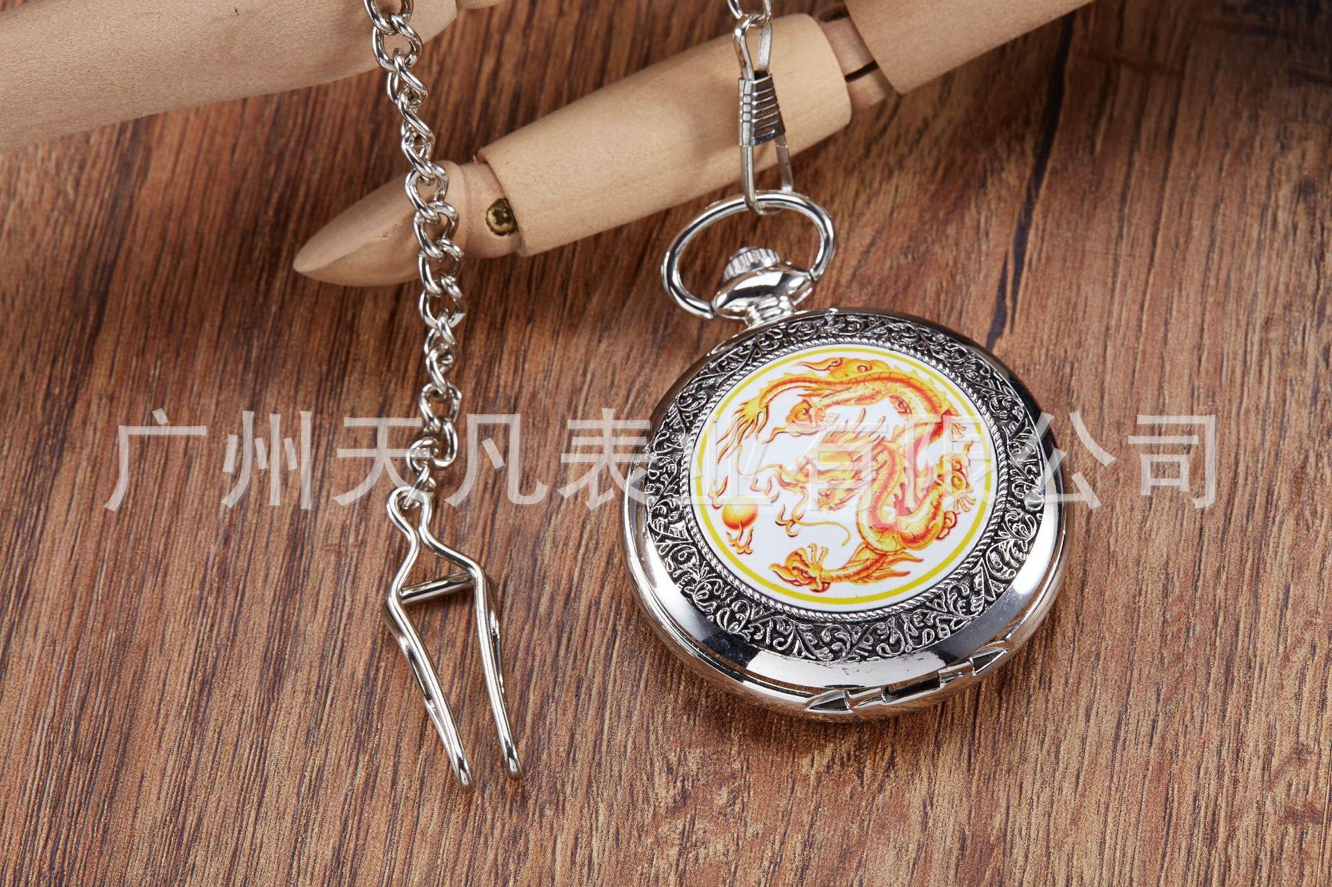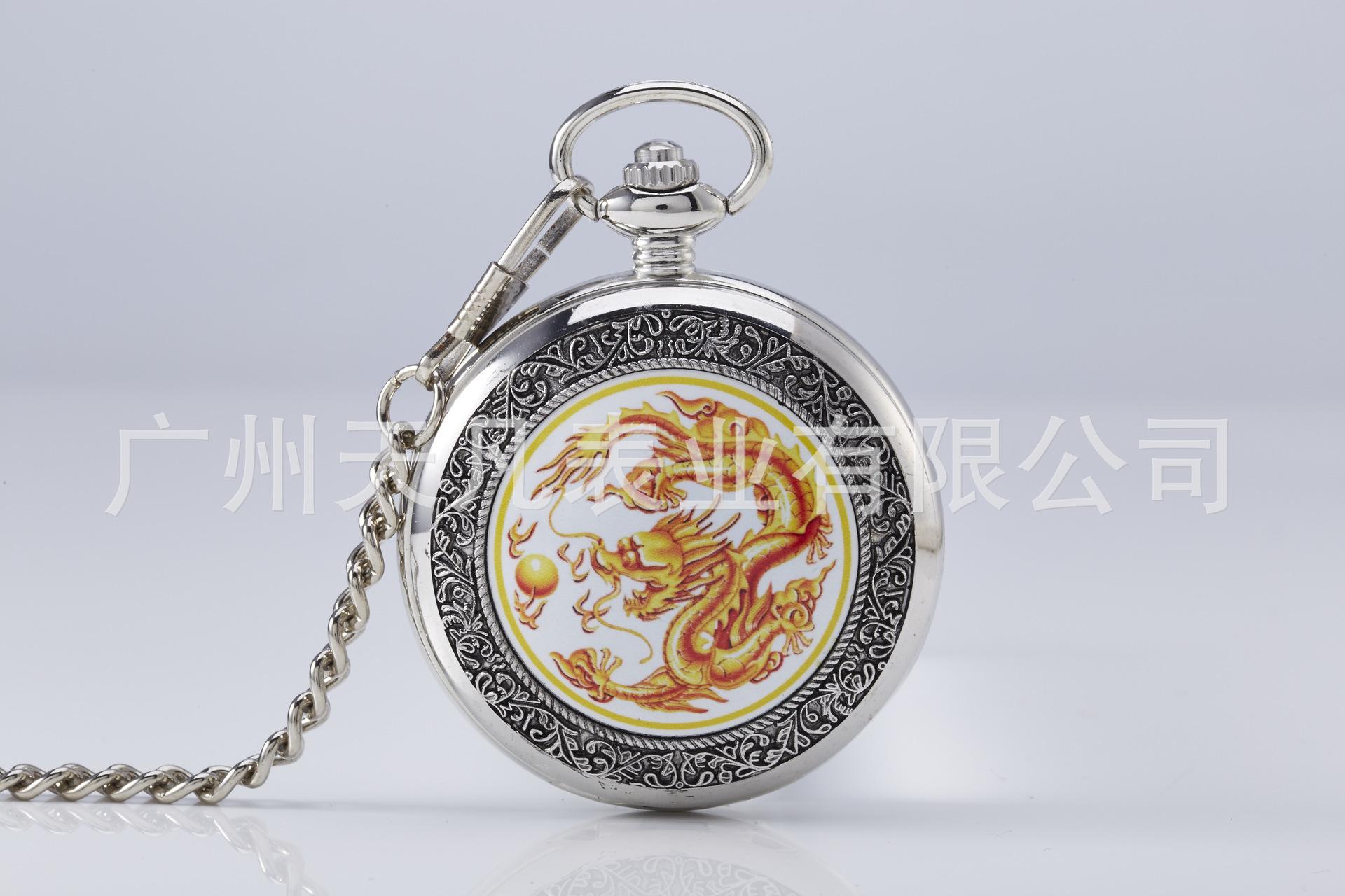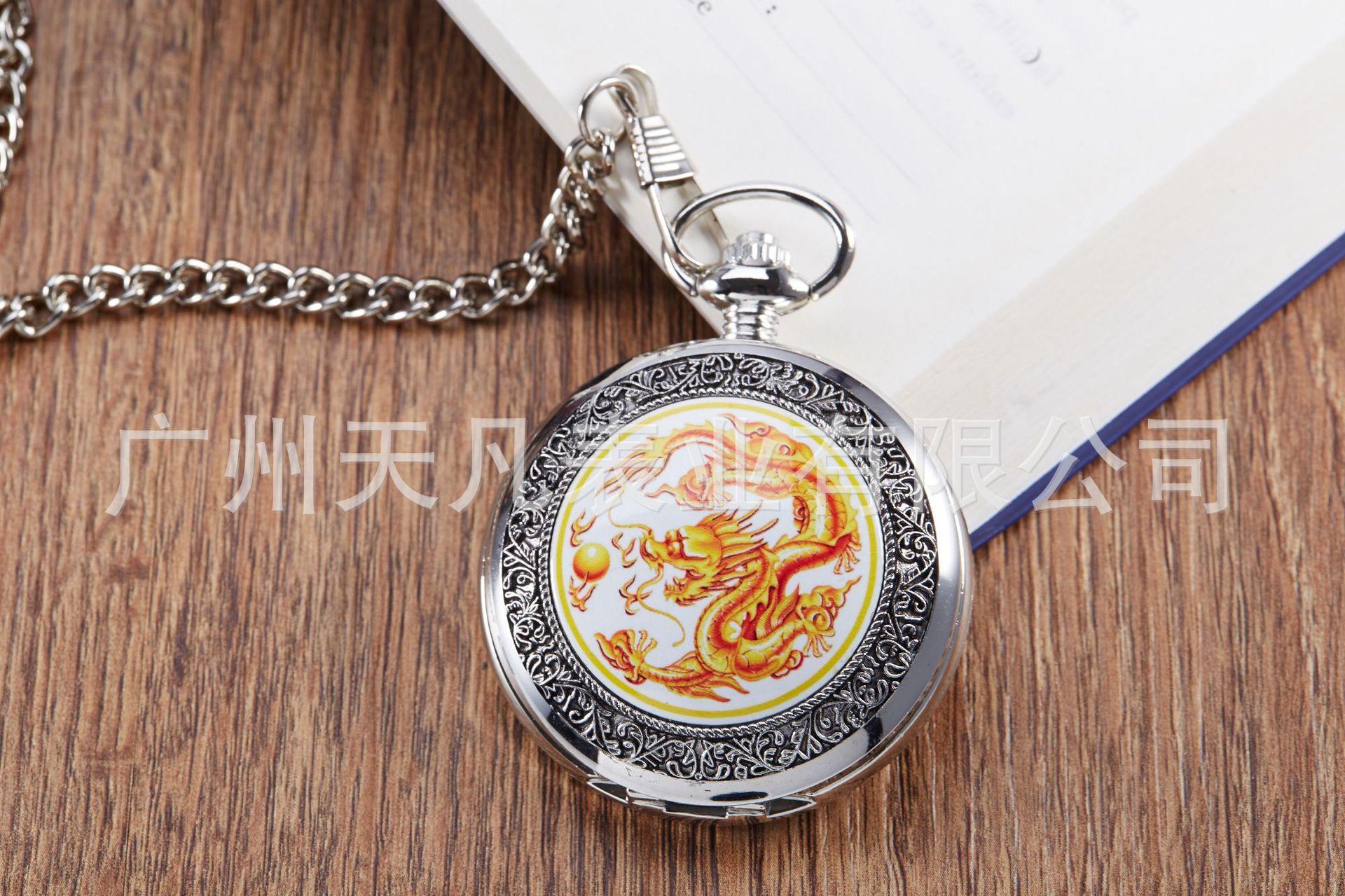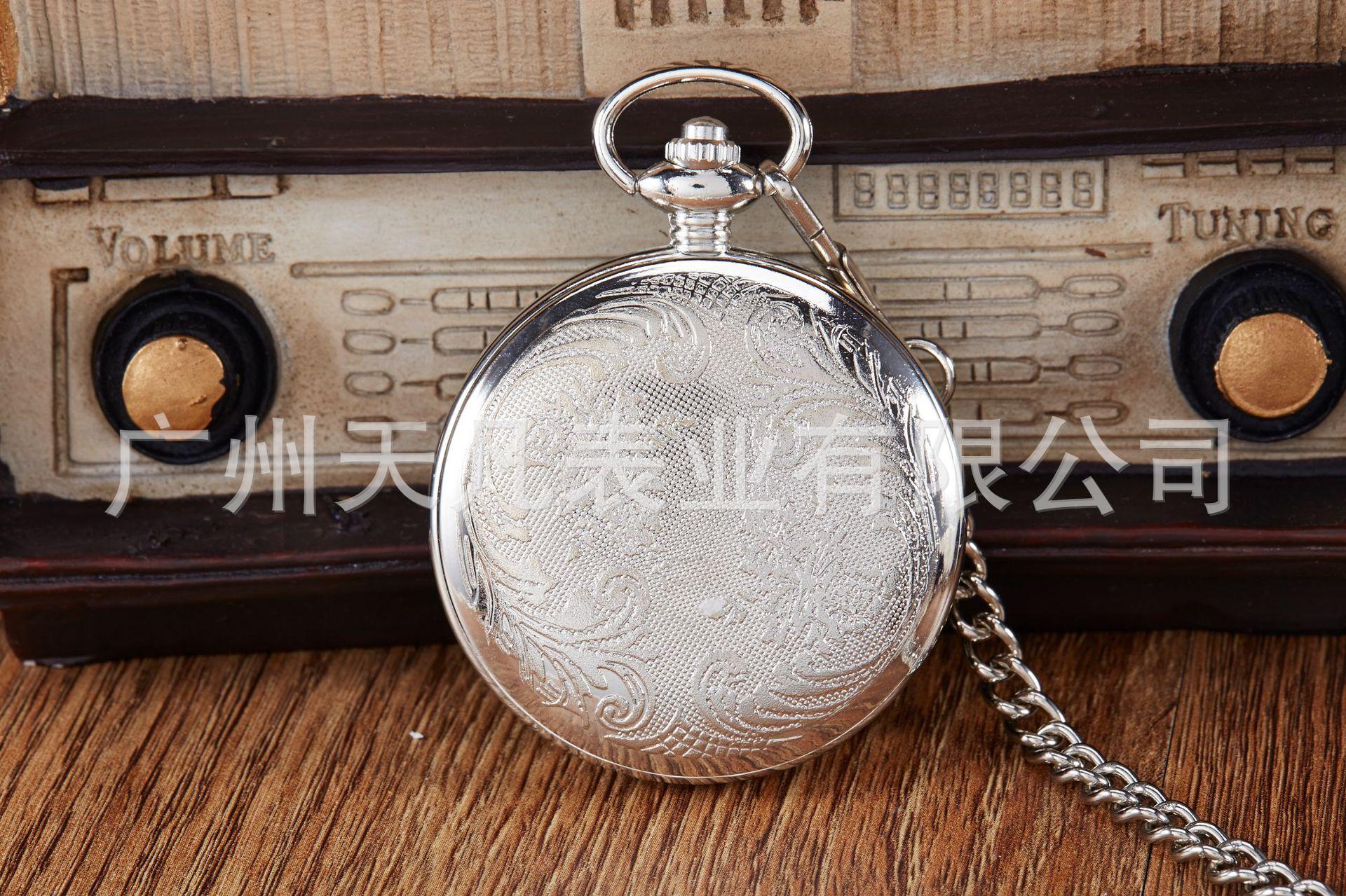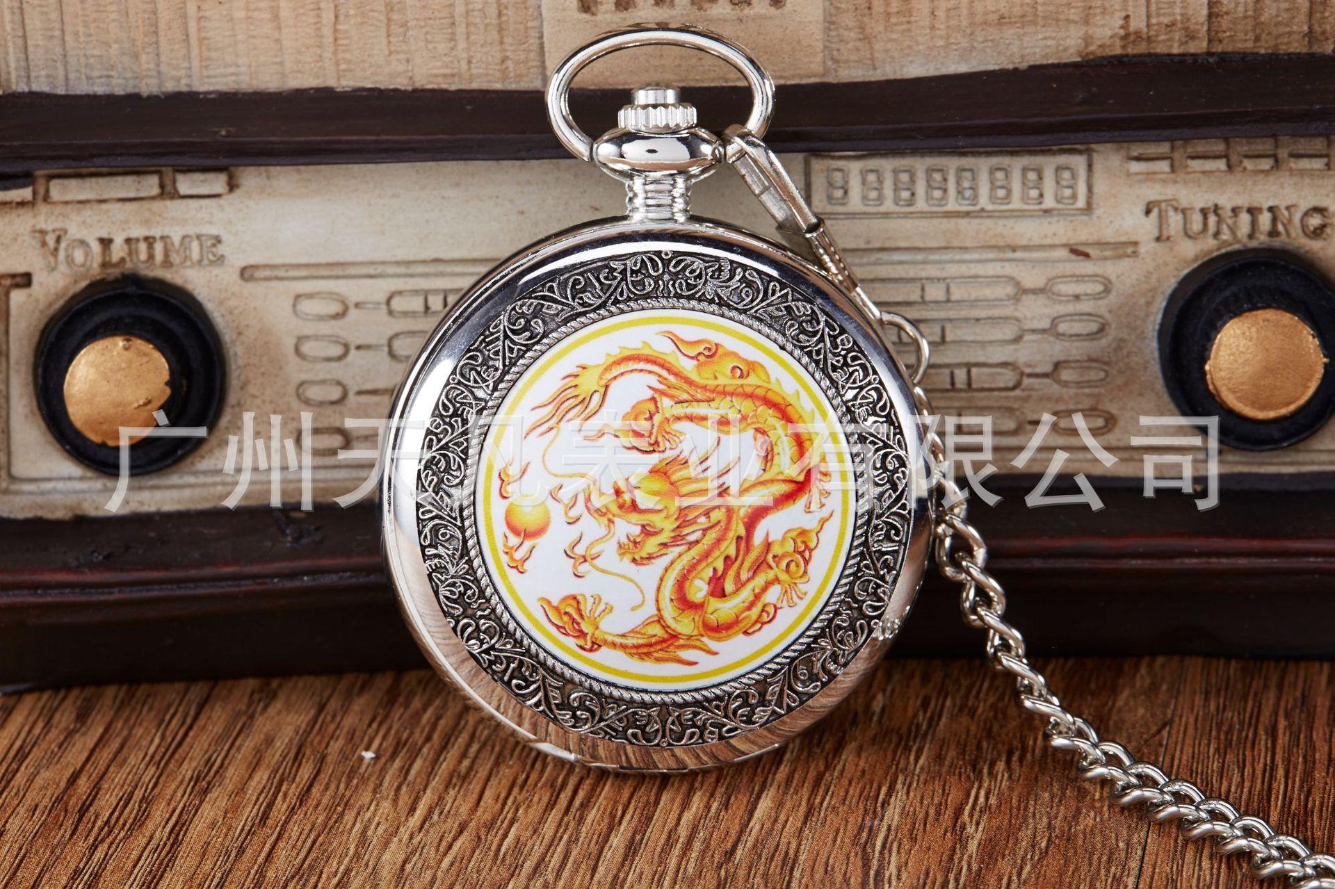 Reloj de bolsillo tallado en plata con cadena gruesa grande nostálgica de comercio exterior, reloj colgante con parche Longtuzhu, venta al por mayor, una generación de cabello