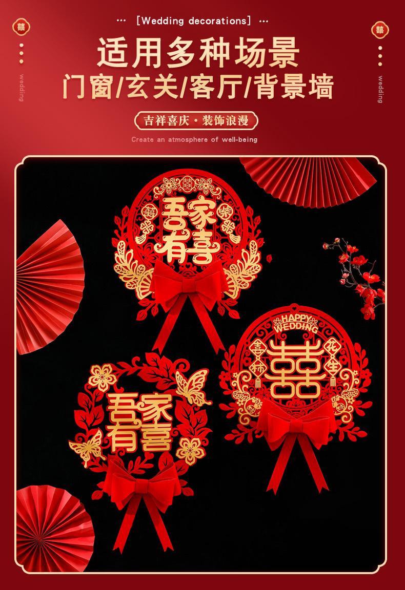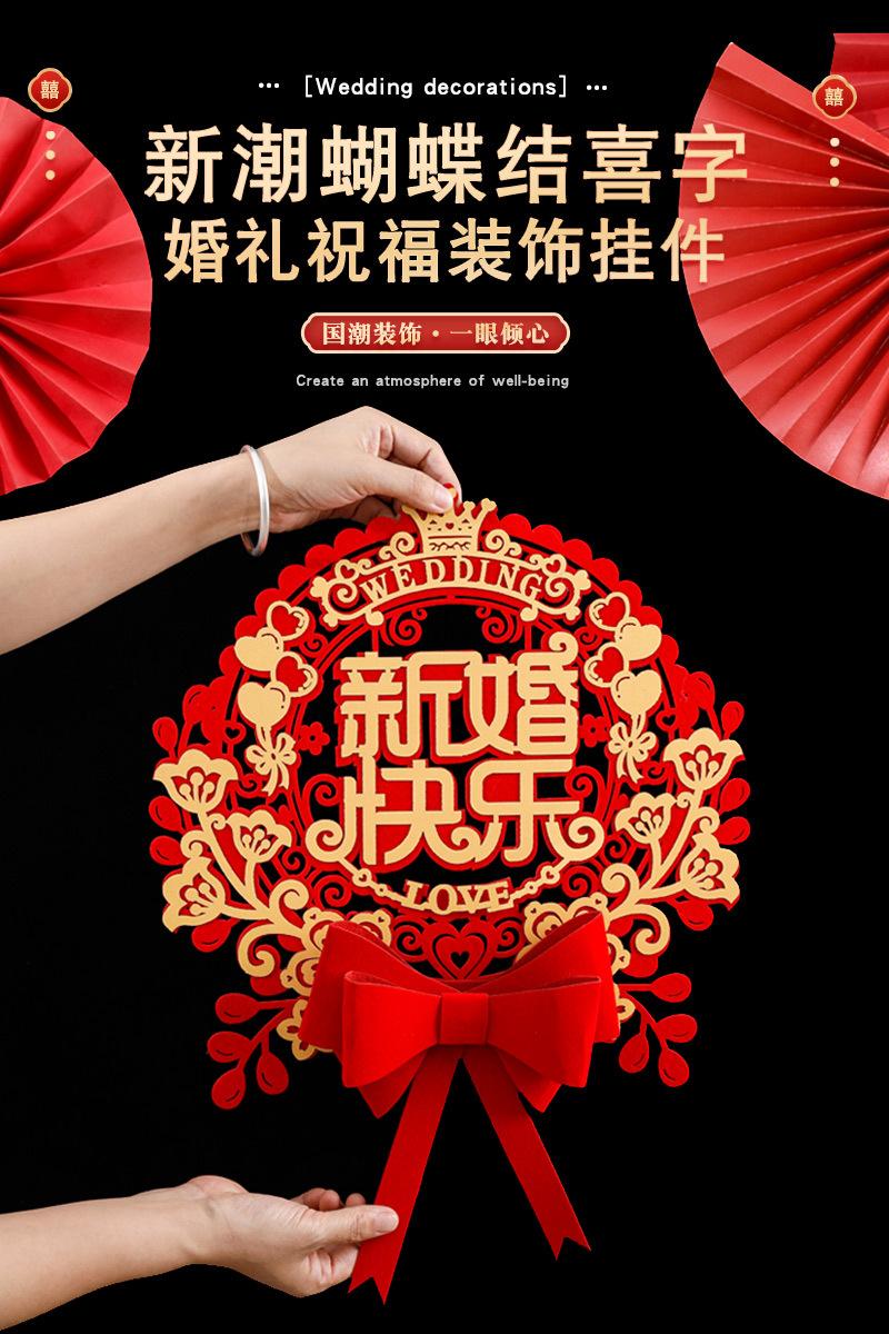 Nuevo Boda Feliz Palabra Decoración de Diseño de Habitación de Boda Hombre y Mujer Sala de Estar Dormitorio Flocado Boda Colgante de Doble Capa con Palabra Feliz