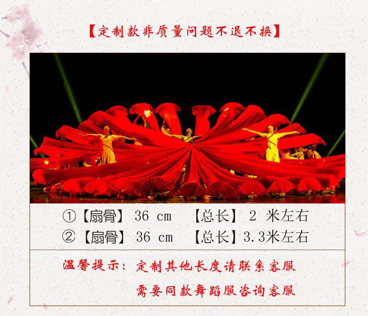Imitation silk (total fan length 2 m) for fan throwing before dance, Imitation silk (total length of 3.3 meter...