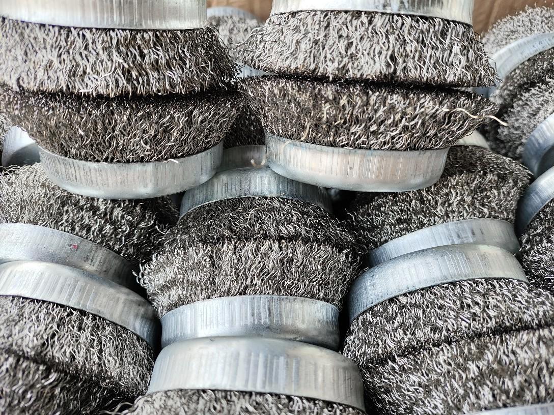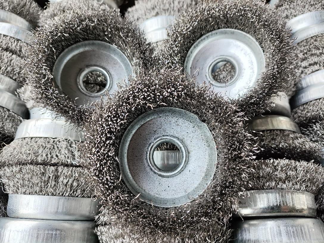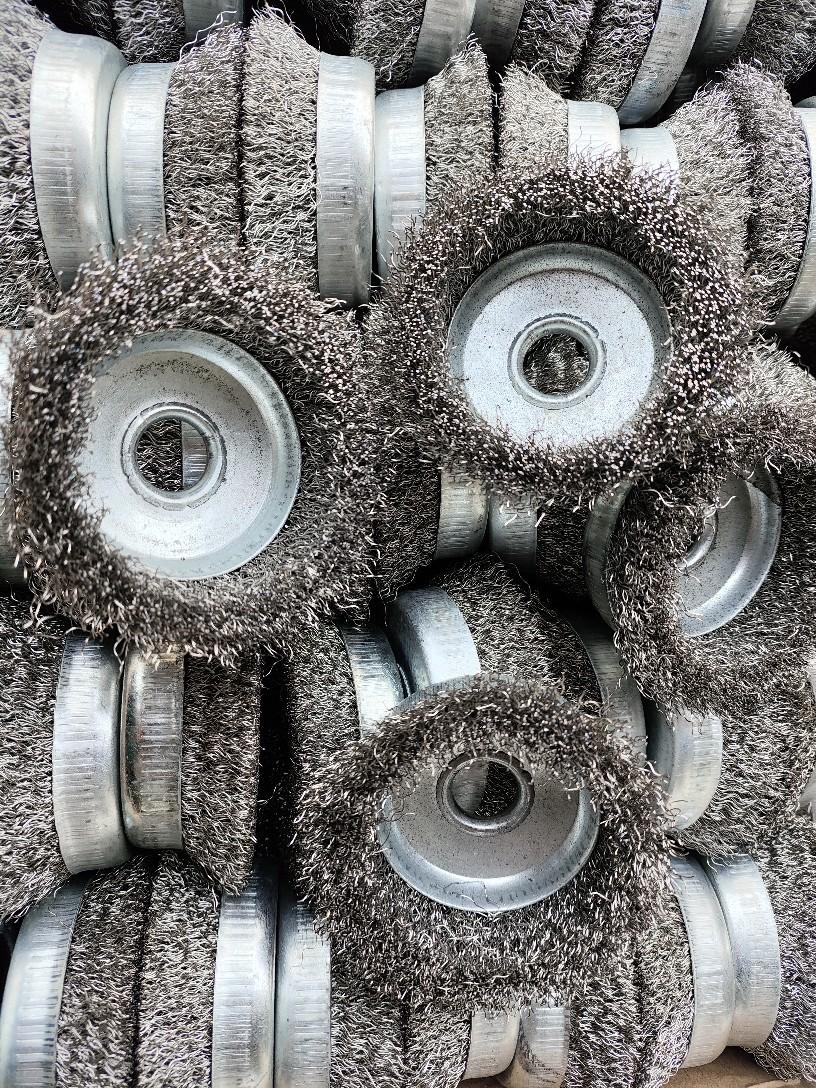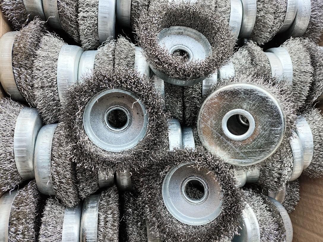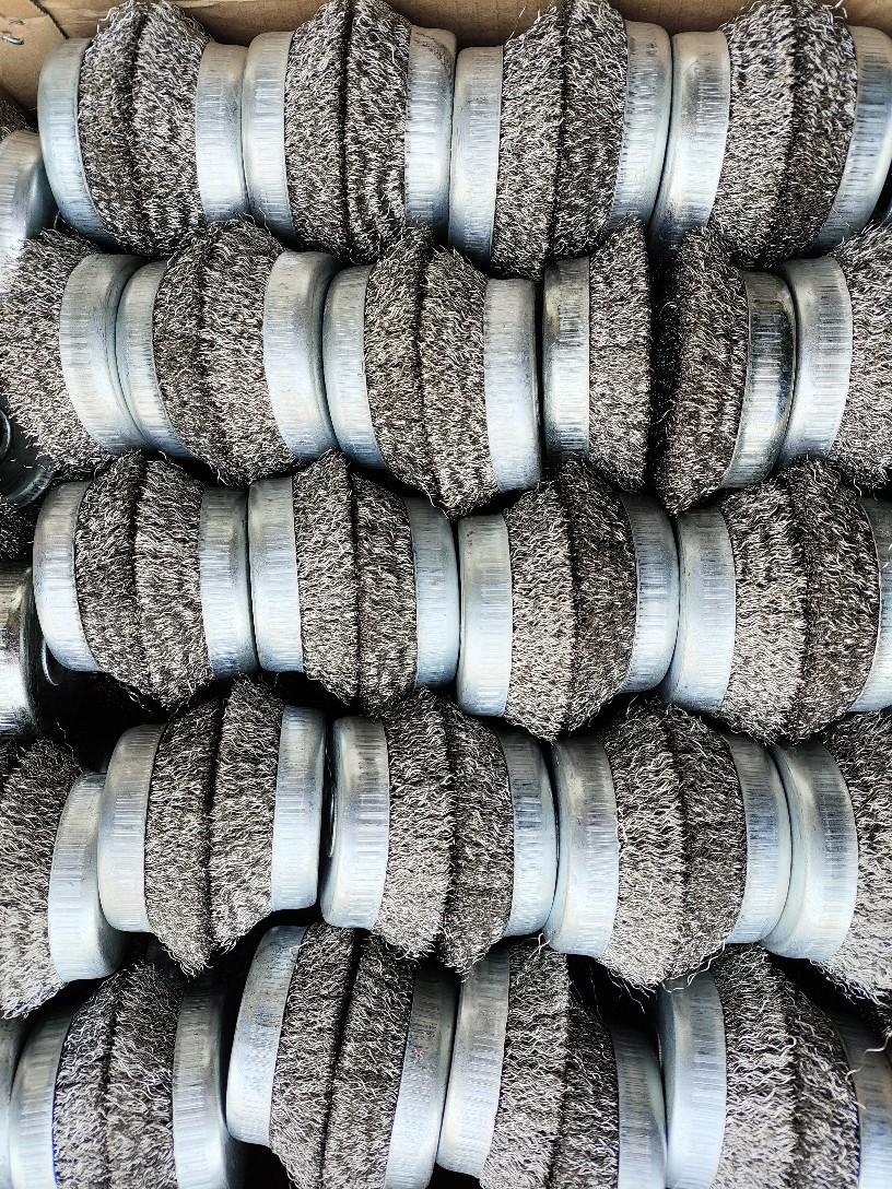 Suministro 125 copa de acero inoxidable rueda de alambre de acero rueda para quitar óxido rueda de pulir amoladora angular con 16 agujeros
