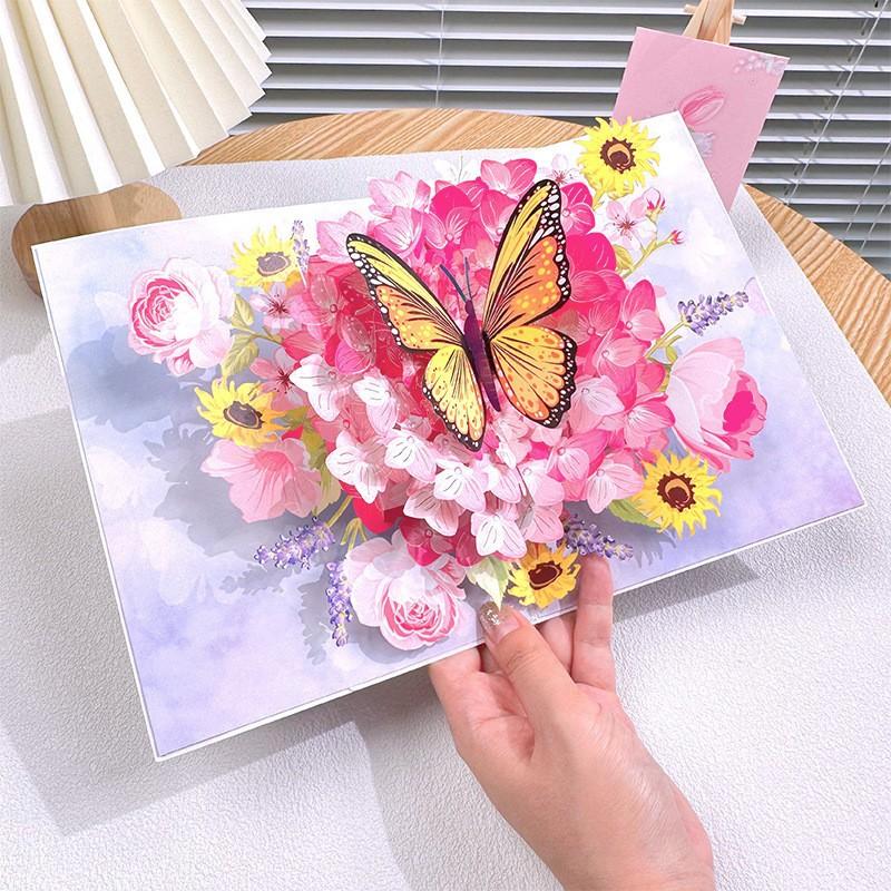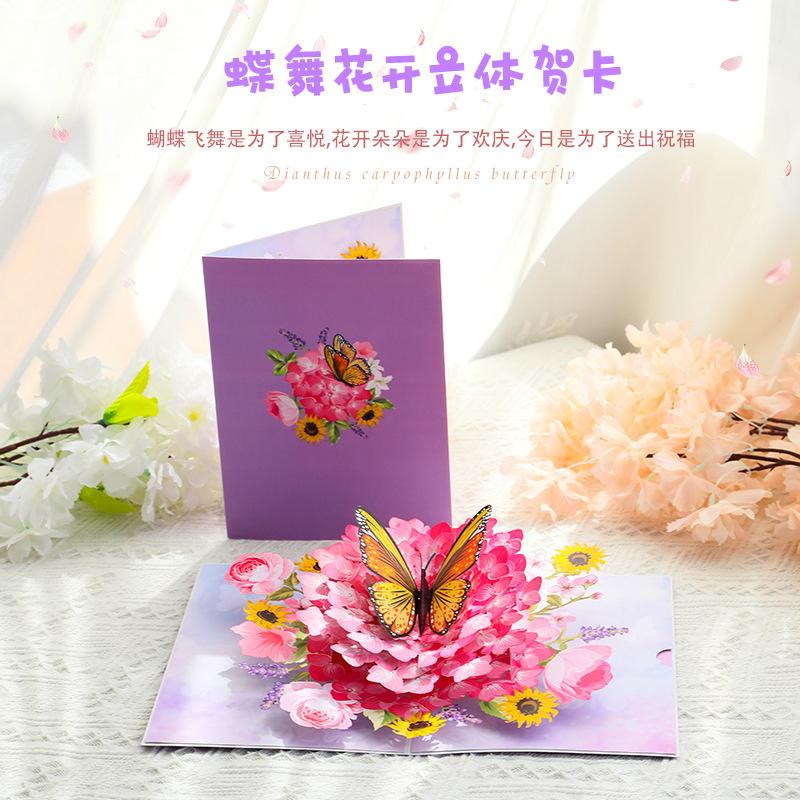 Tarjeta de felicitación de cumpleaños con diseño de mariposas, girasoles y viento, gran sentido 3D, nueva tarjeta tridimensional para el día de San Valentín, creativa, hecha a mano, bricolaje.