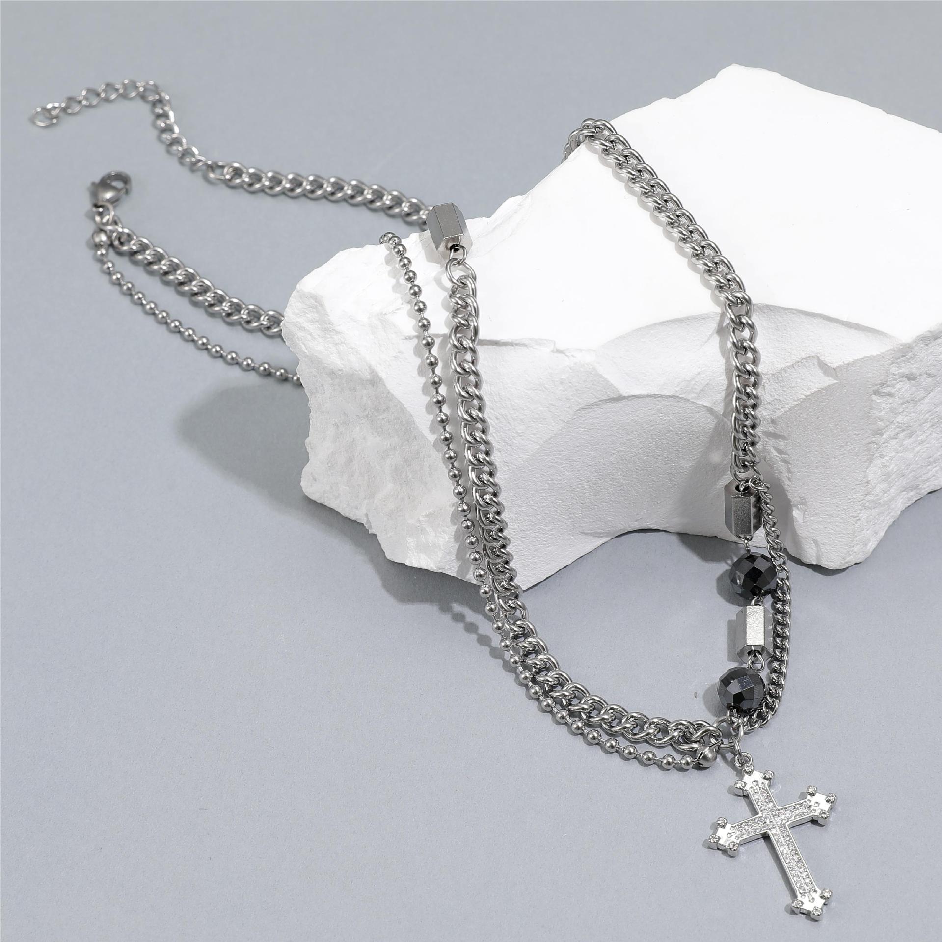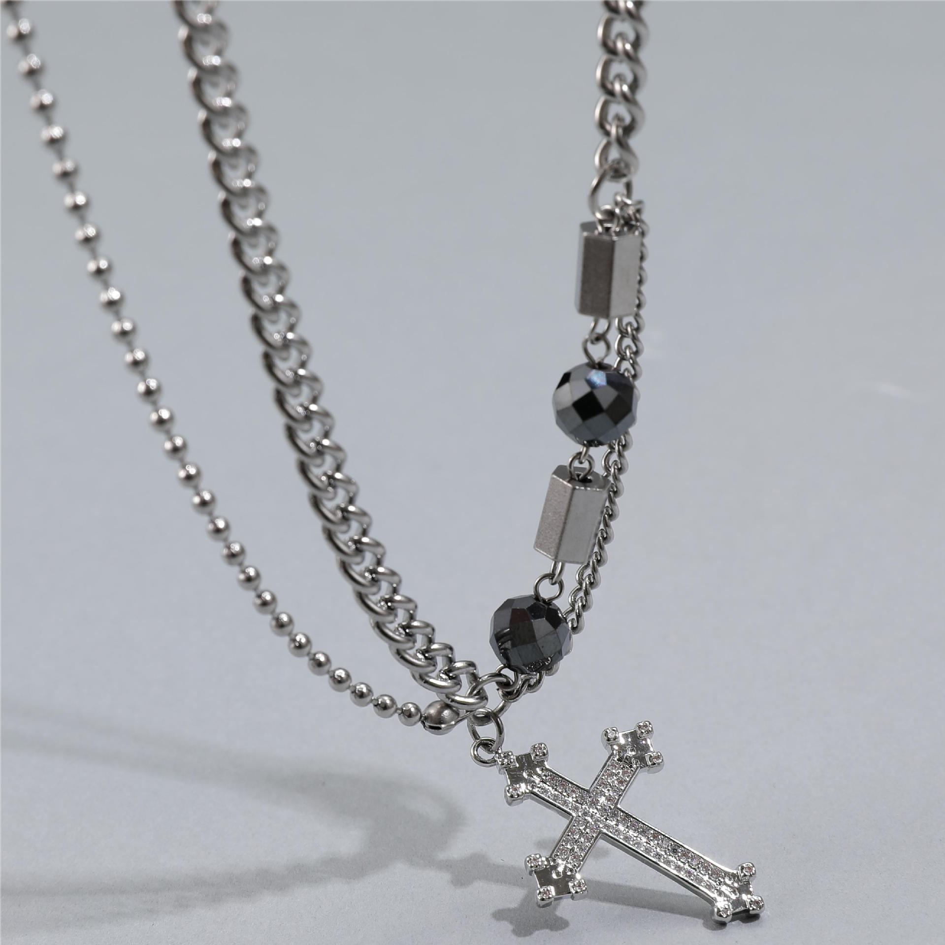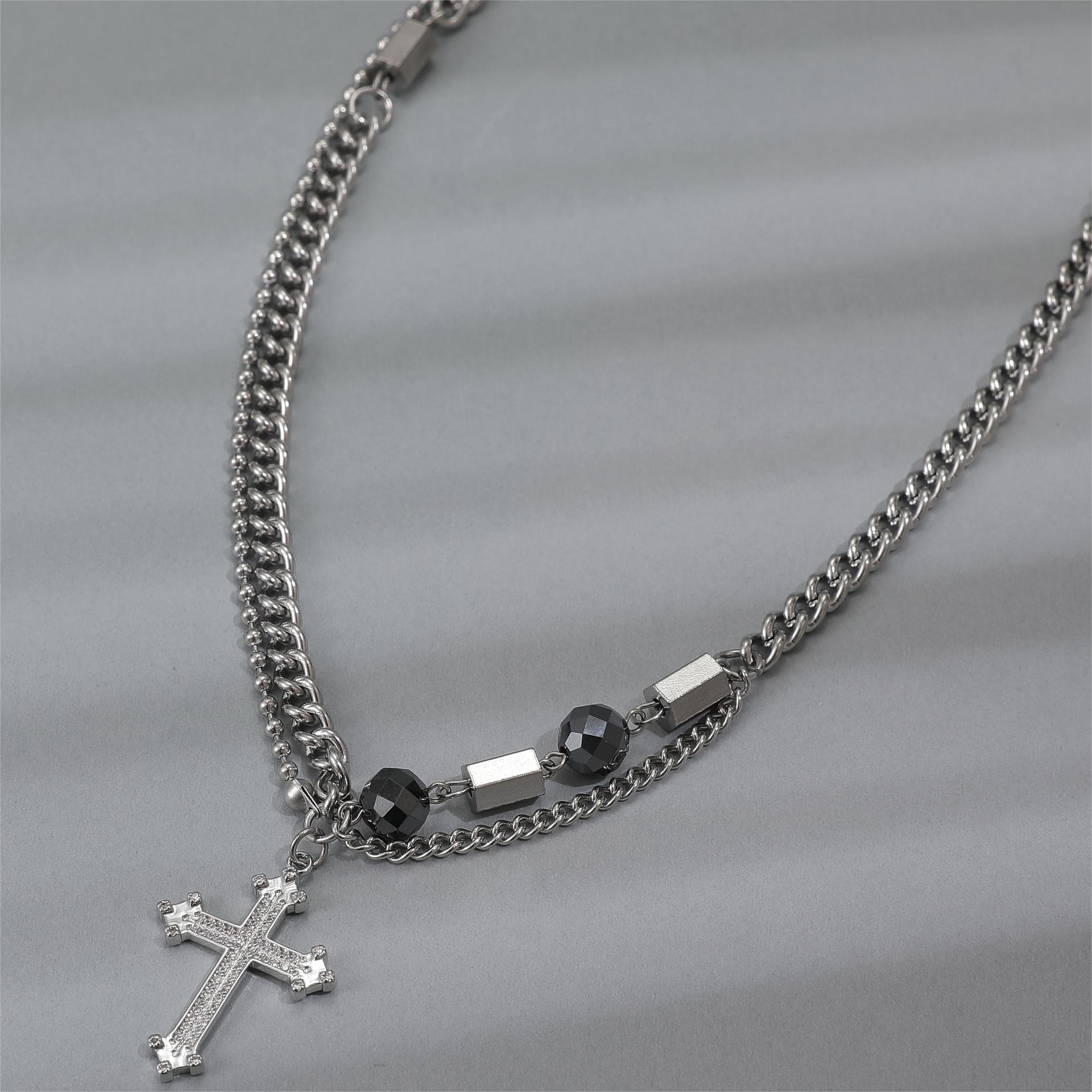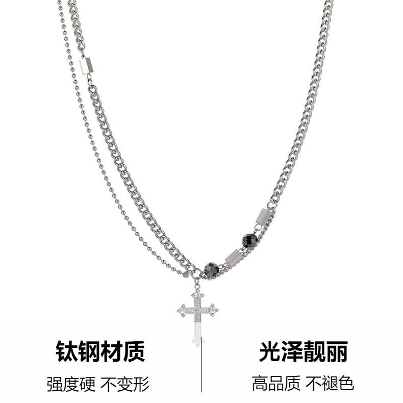 Collar de Acero de Titanio para Hombre, Moderno, Versátil, Diseño de Calle, Novedad, Cadena, Hip Hop, Puntada de Cruz, Doble Capa