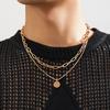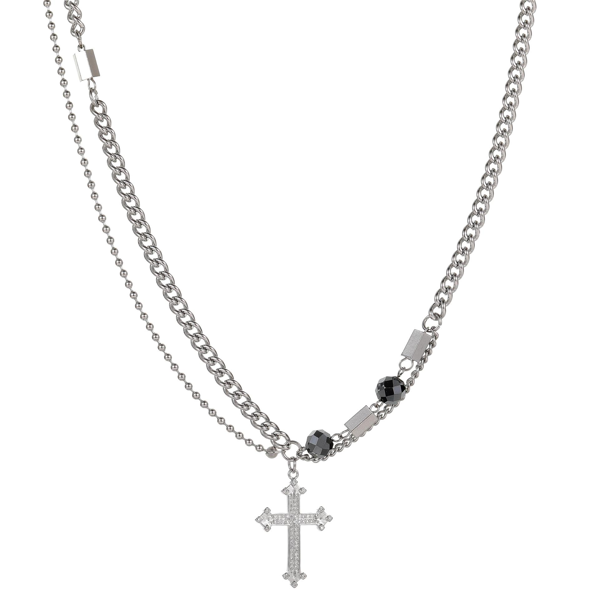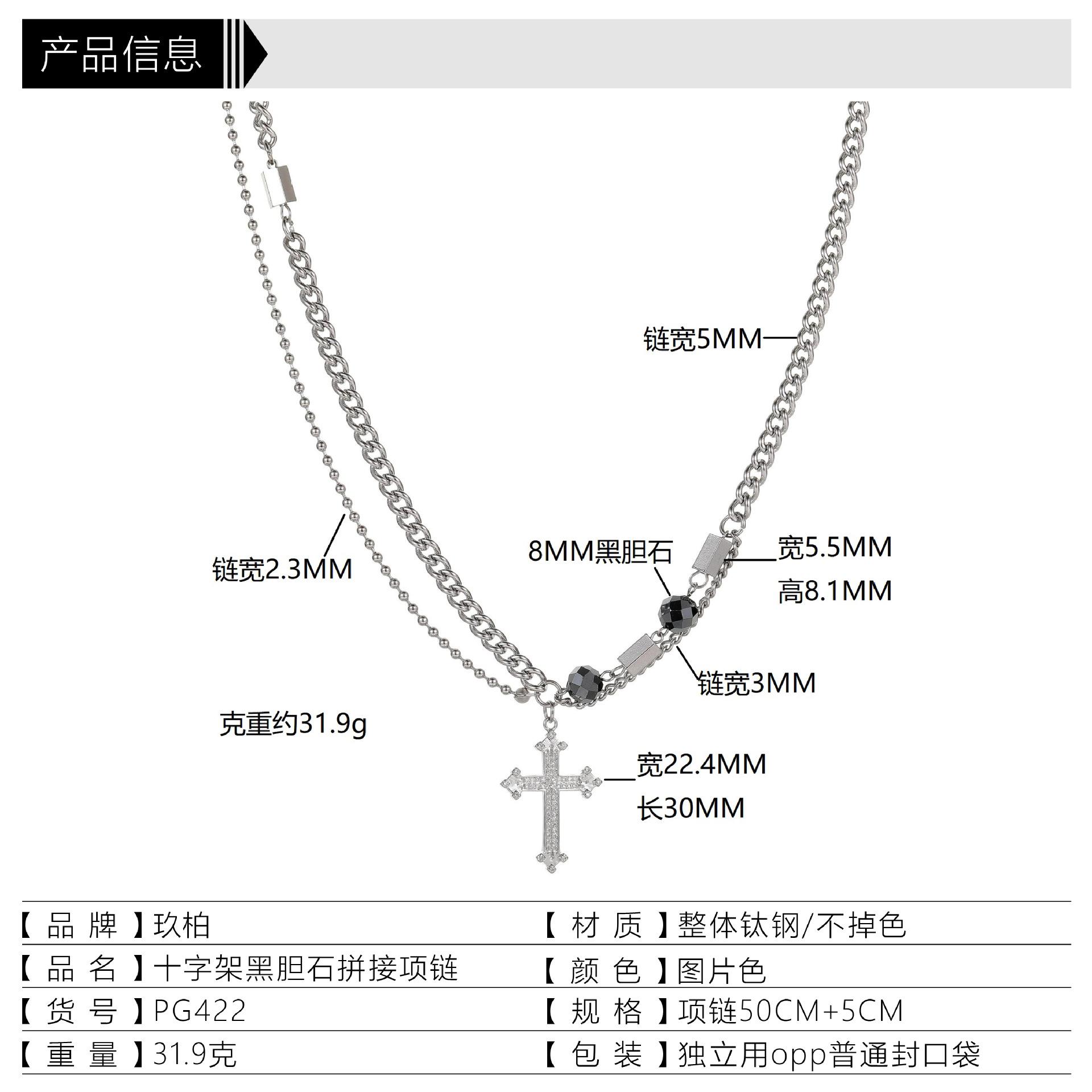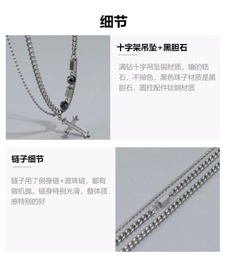 Collar de Acero de Titanio para Hombre, Moderno, Versátil, Diseño de Calle, Novedad, Cadena, Hip Hop, Puntada de Cruz, Doble Capa